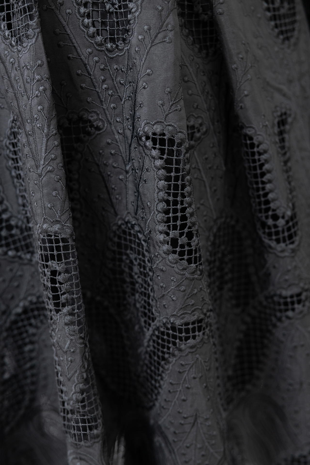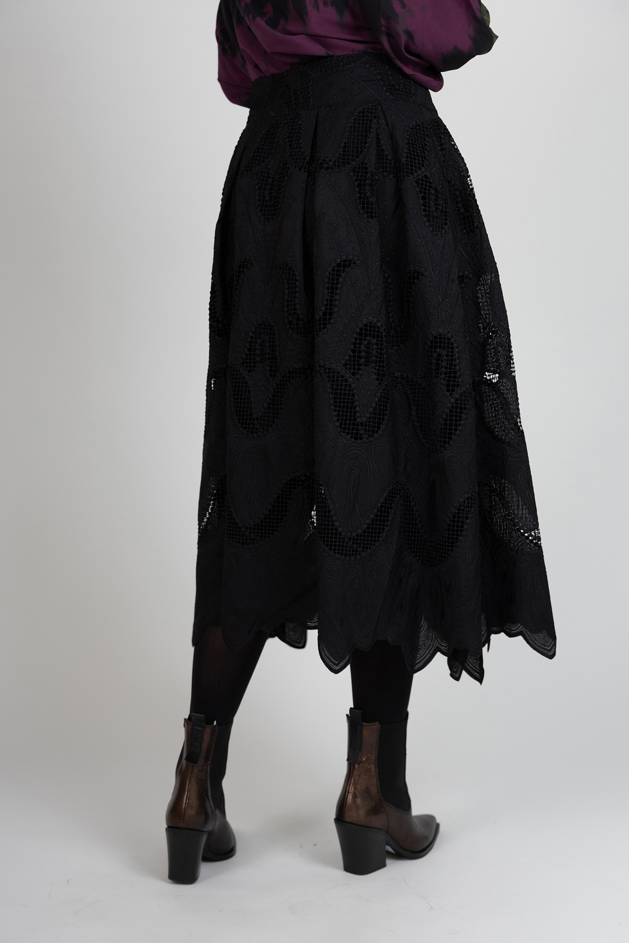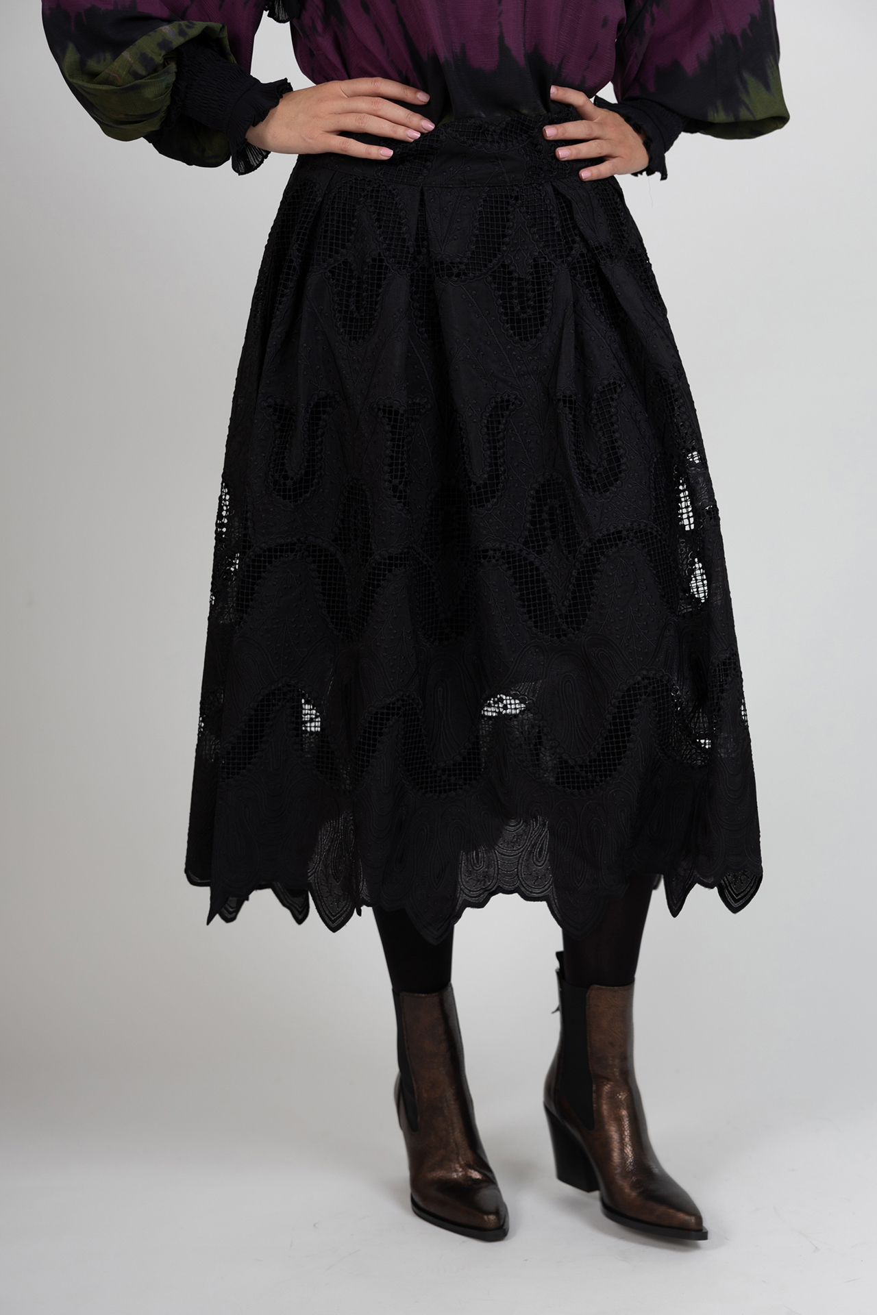 Lange A-lijn rok met een hoge taille en een opengewerkt dessin