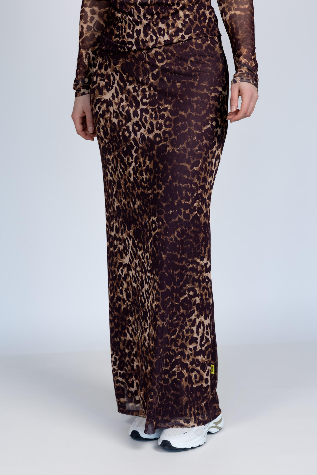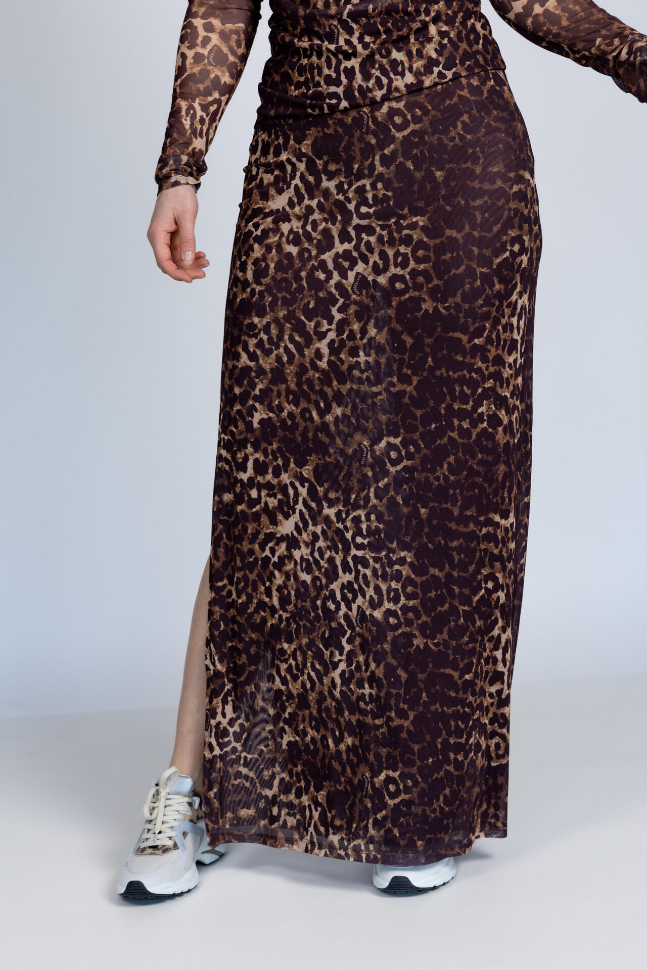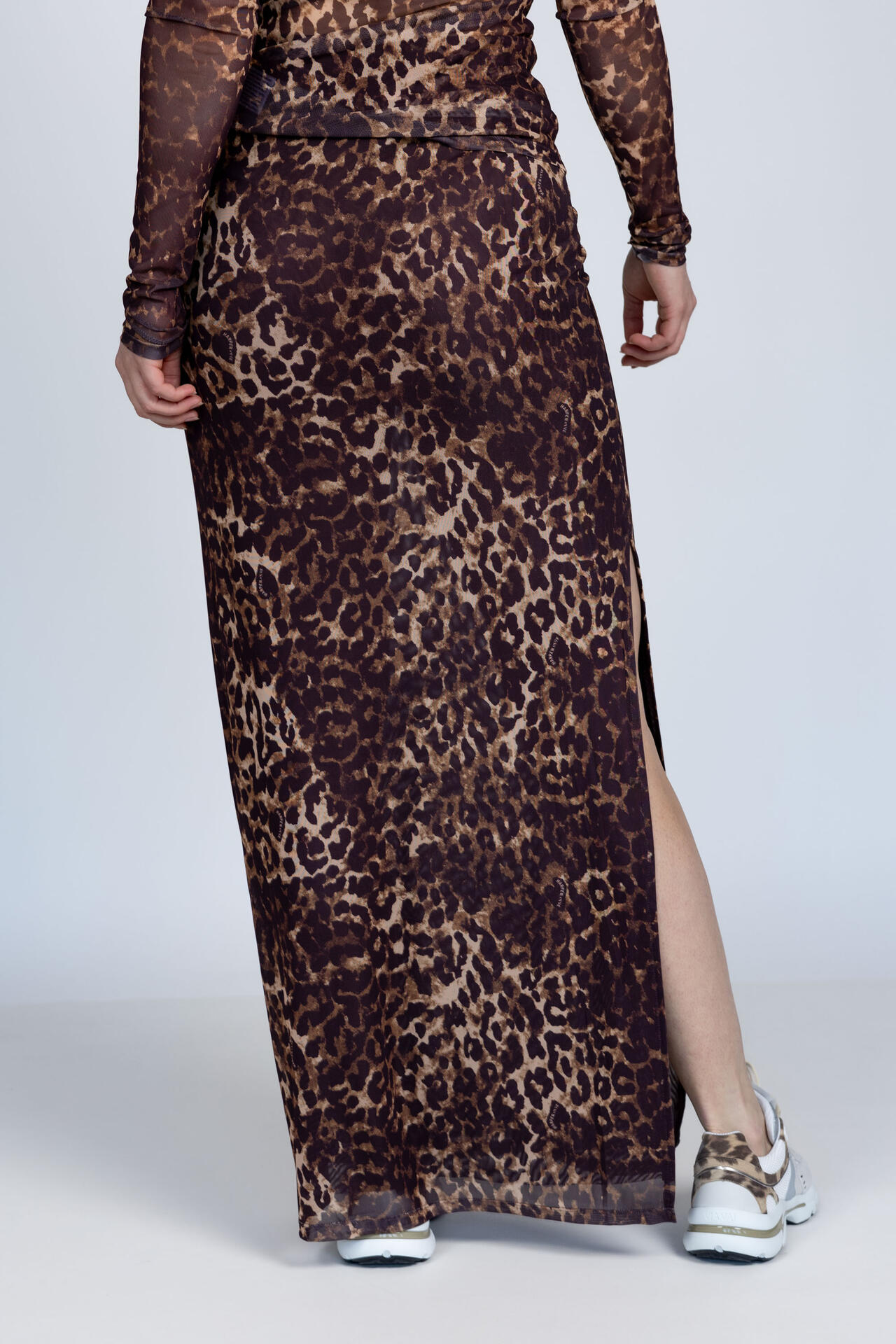 Lange rok met dierenprint, een hoge split en stretch in de stof waardoor hij mooi valt en lekker draagt