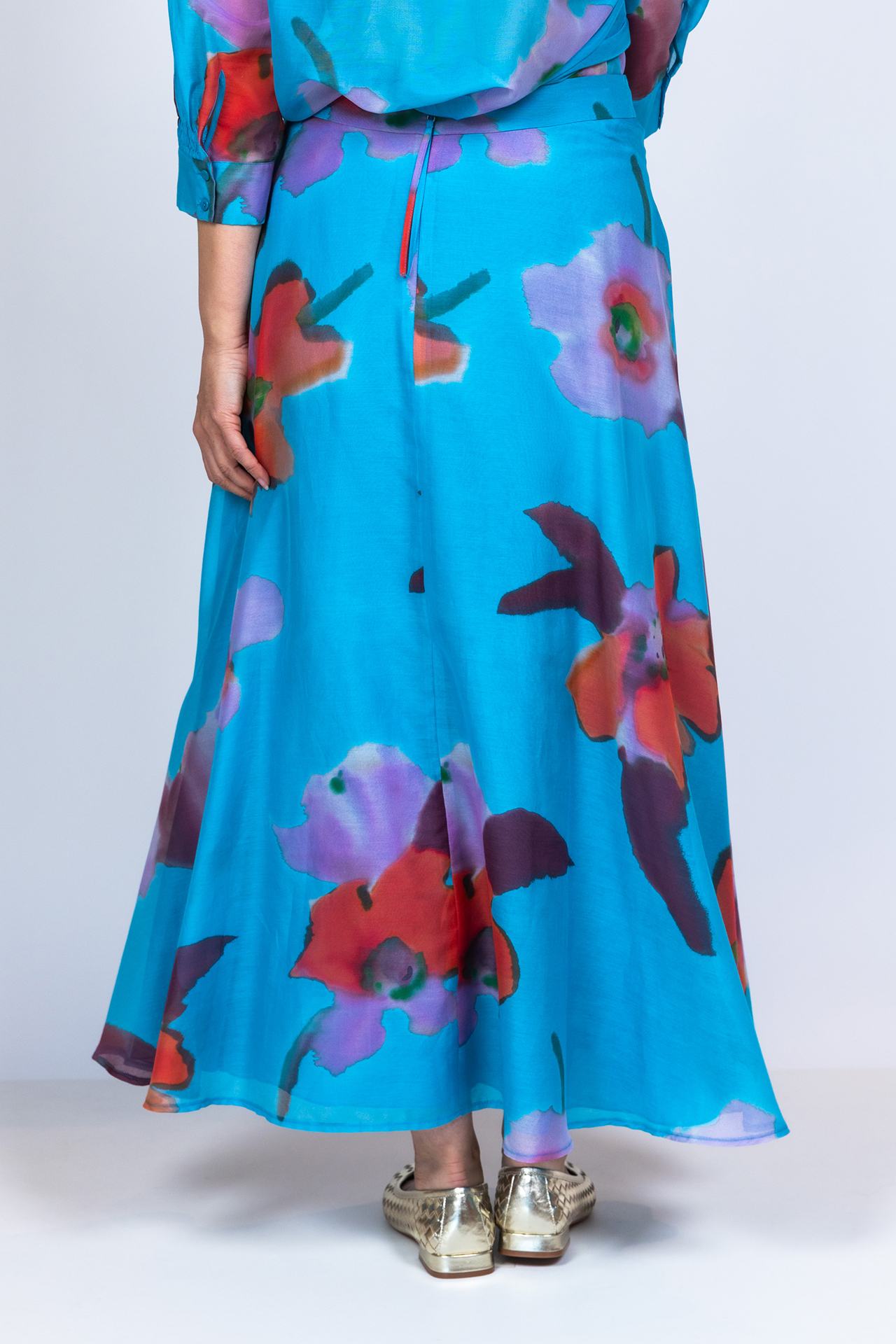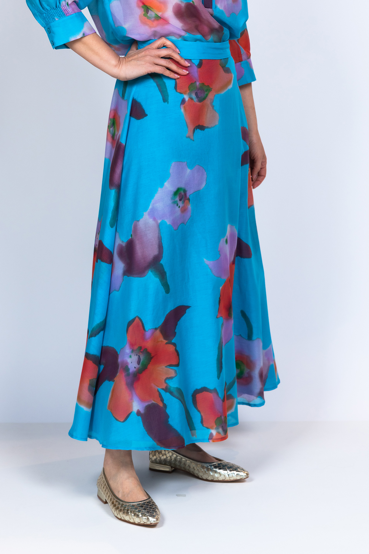 Luchtige A-lijn rok met een rits aan de achterkant en een vlekkerige bloemenprint