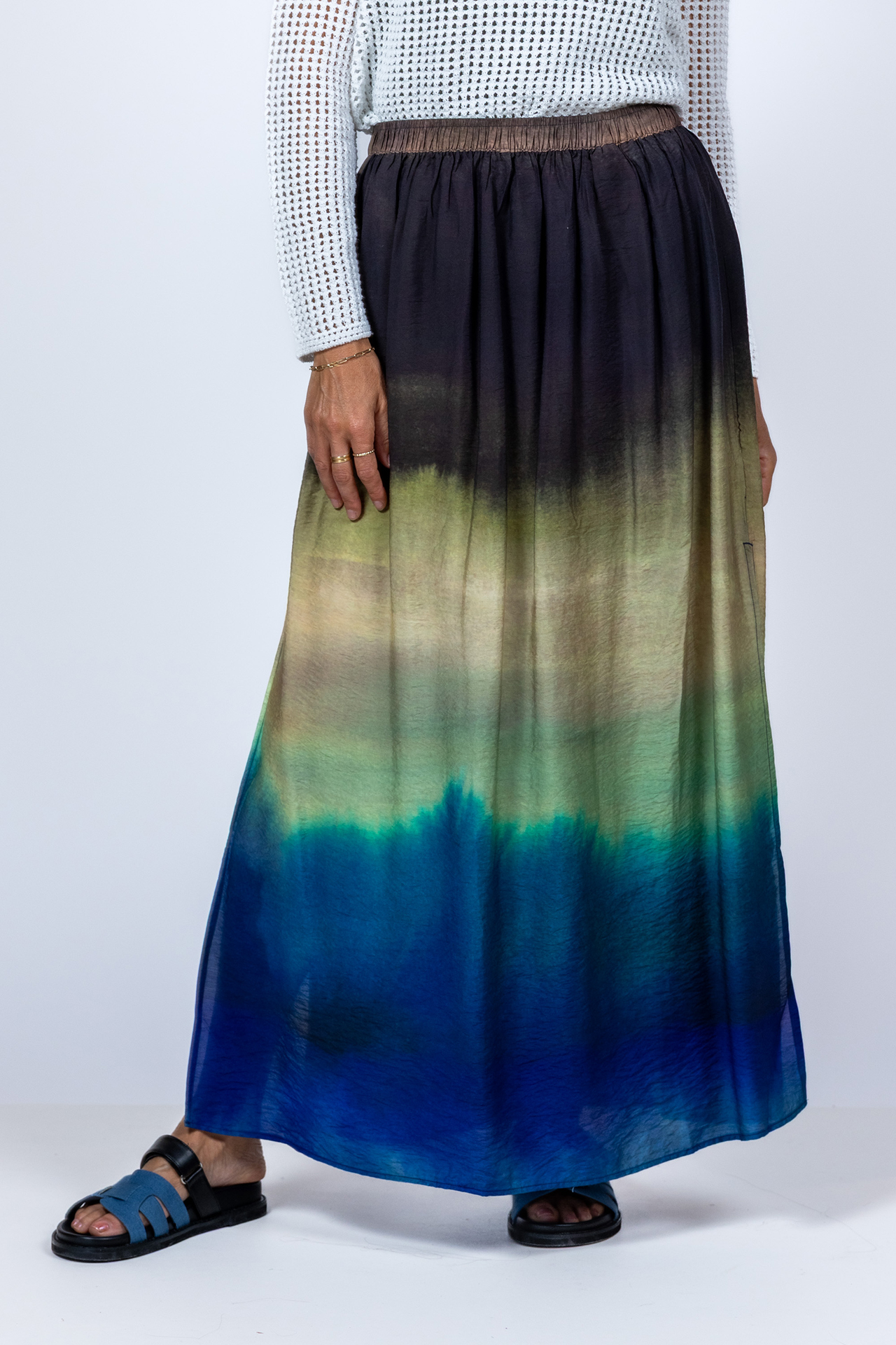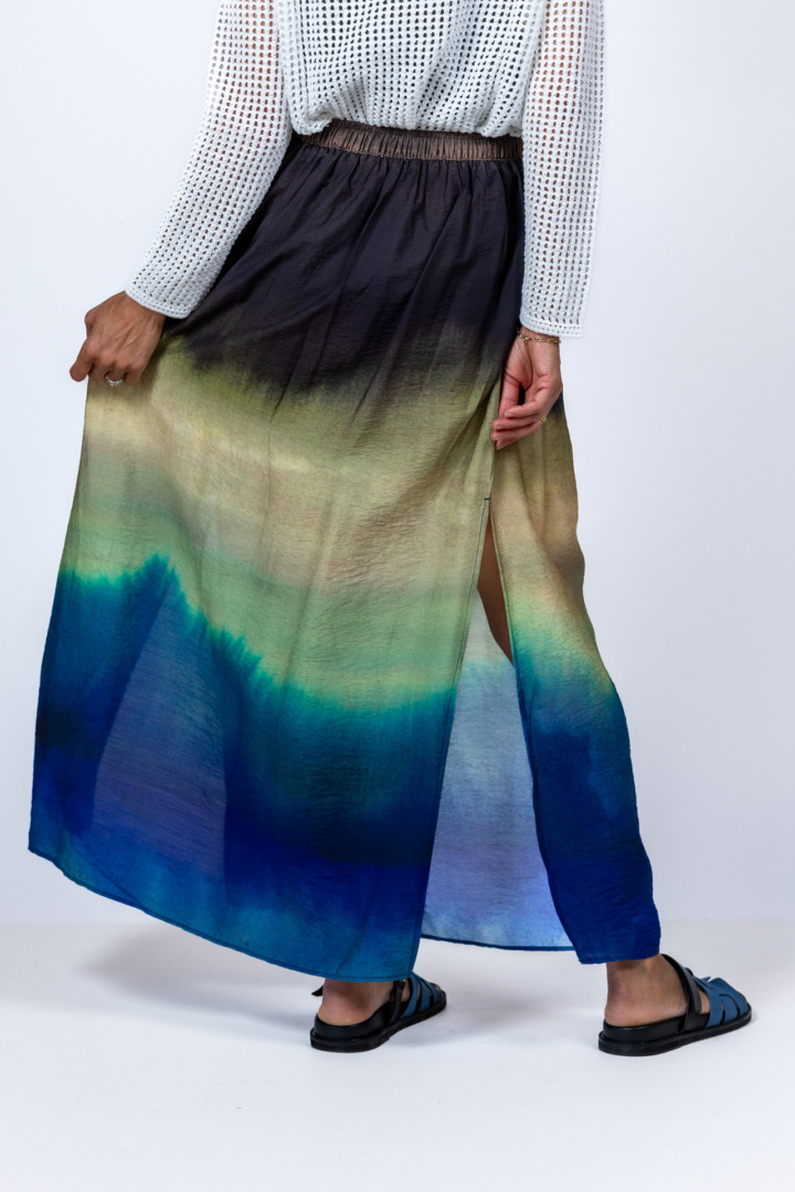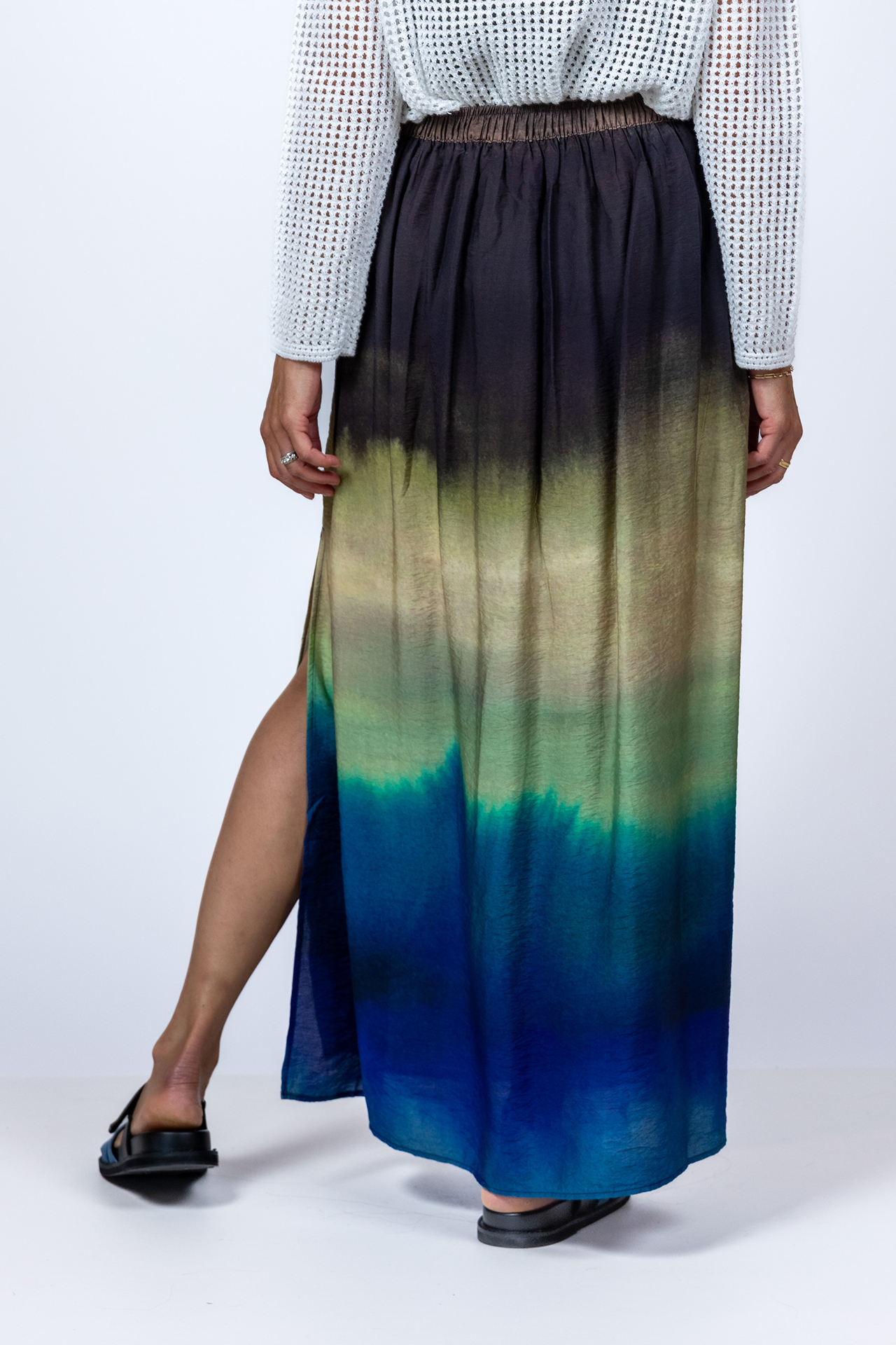 Elegante lange rok met ombre-effect, een elastische band in de taille en hoge splitten aan de zijkant