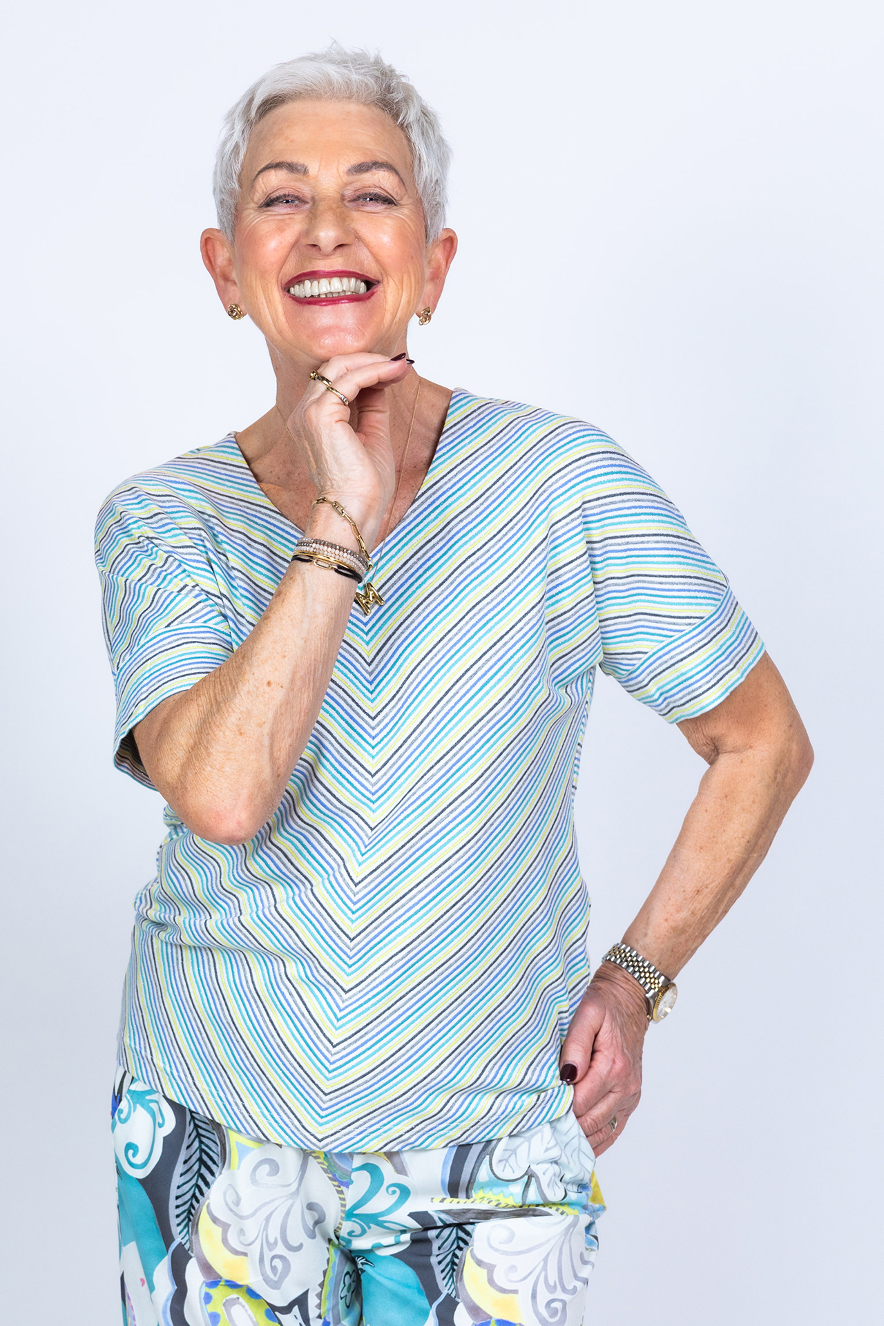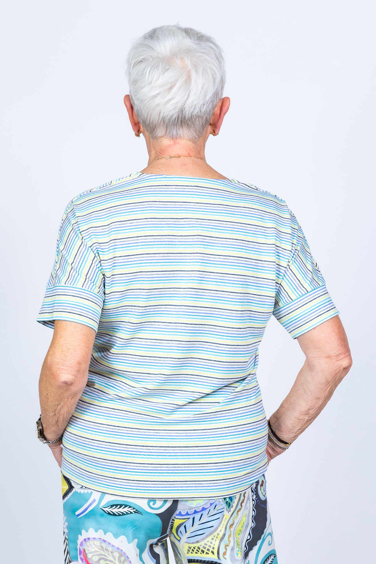 Glitter t-shirt met een V-hals, gekleurde streepjes en korte mouwen