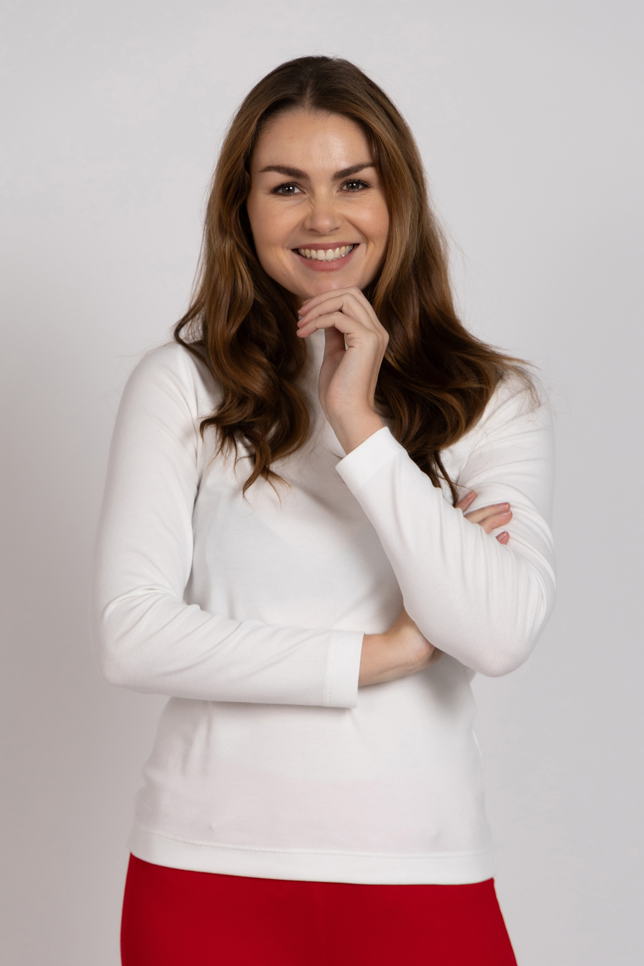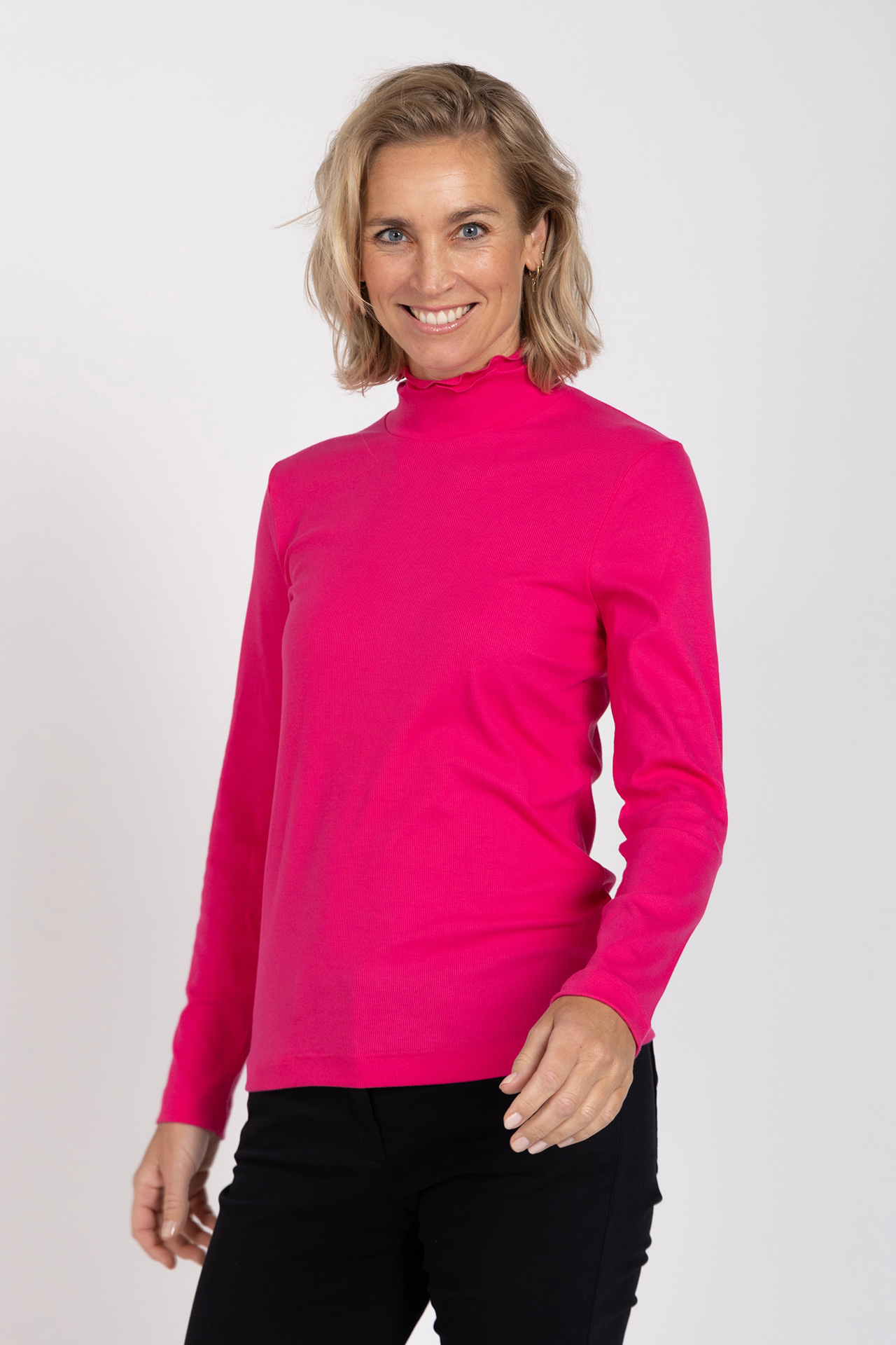 Col t-shirt met lange mouwen en een dubbele kraag met geschulpte randjes. Dit item is er in verschillende kleuren