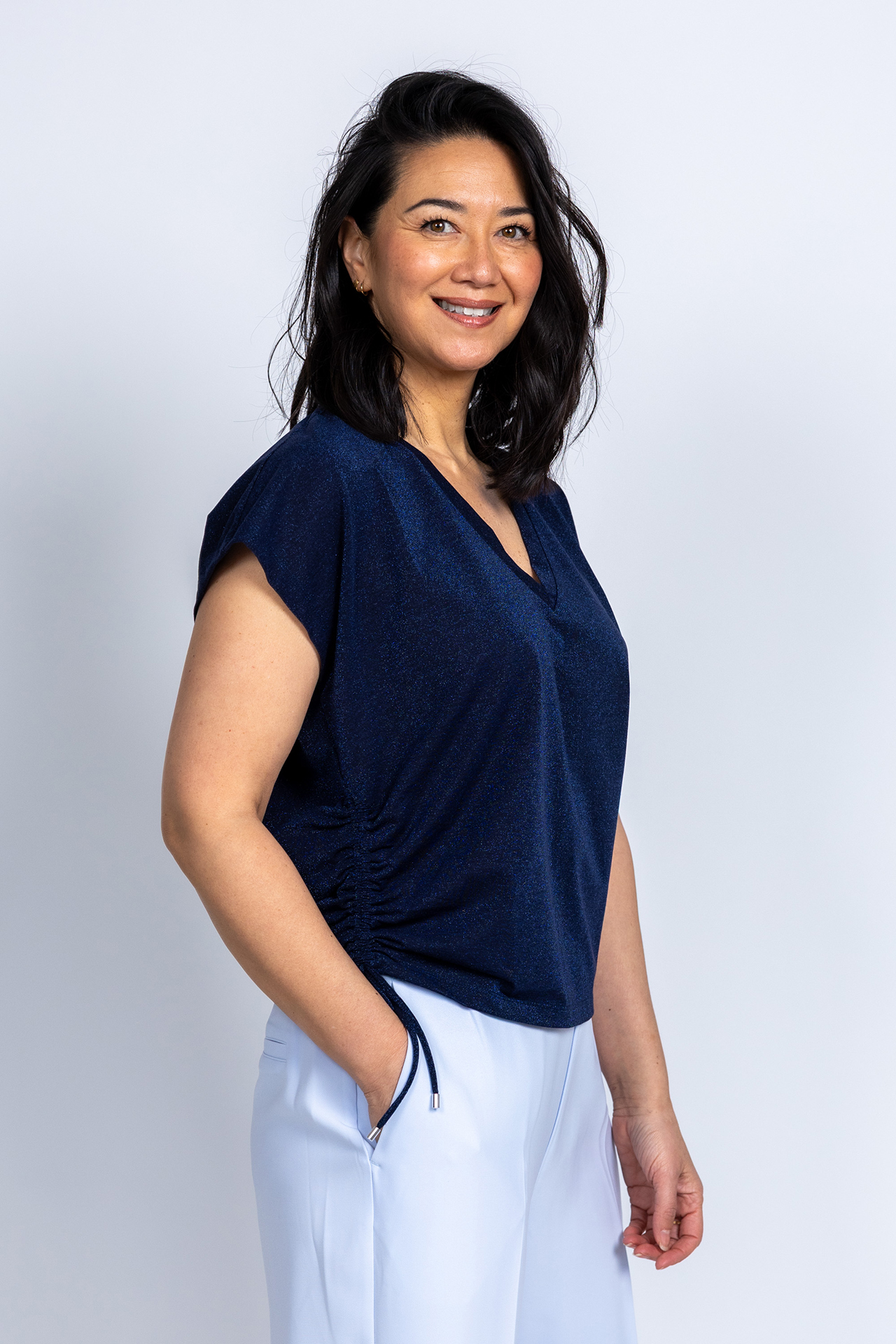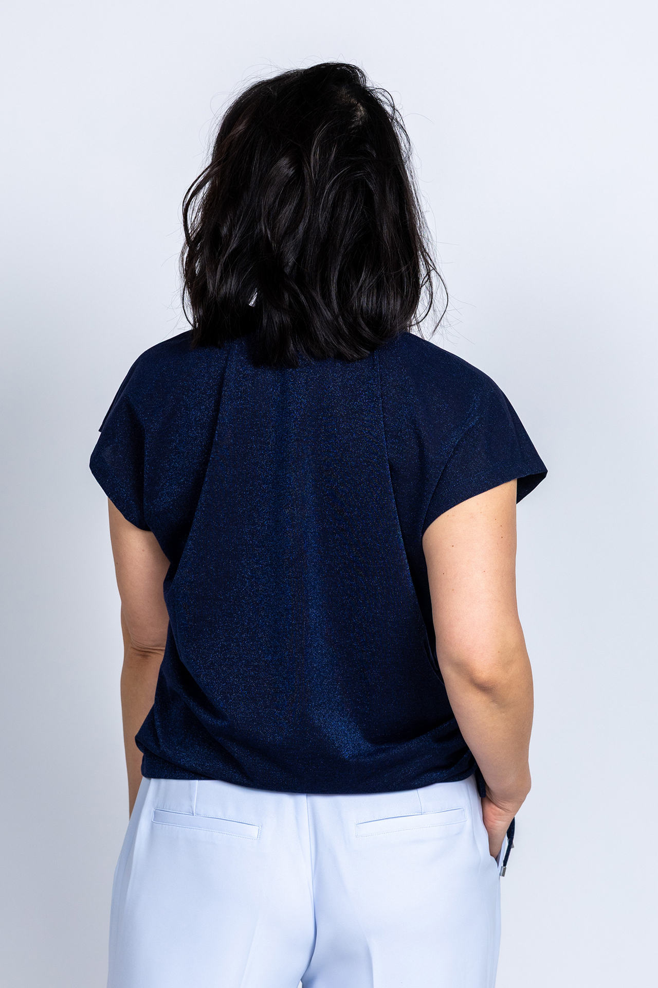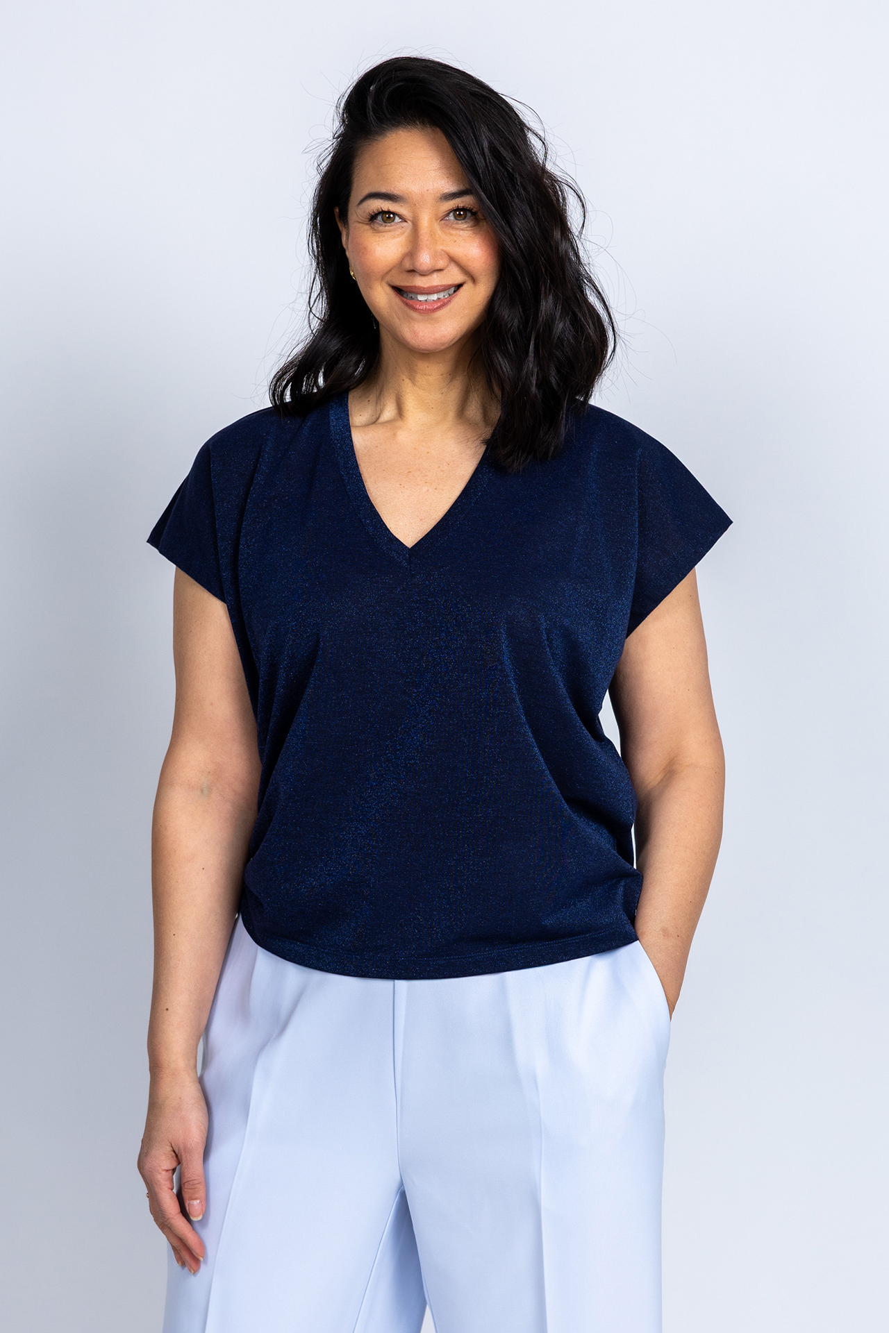 Glitter t-shirt met een V-hals en aangeknipte mouwen