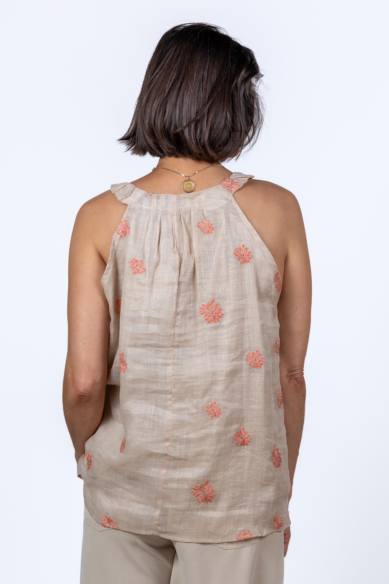 Mouwloze top met een ronde hals en all-over geborduurde bloemen