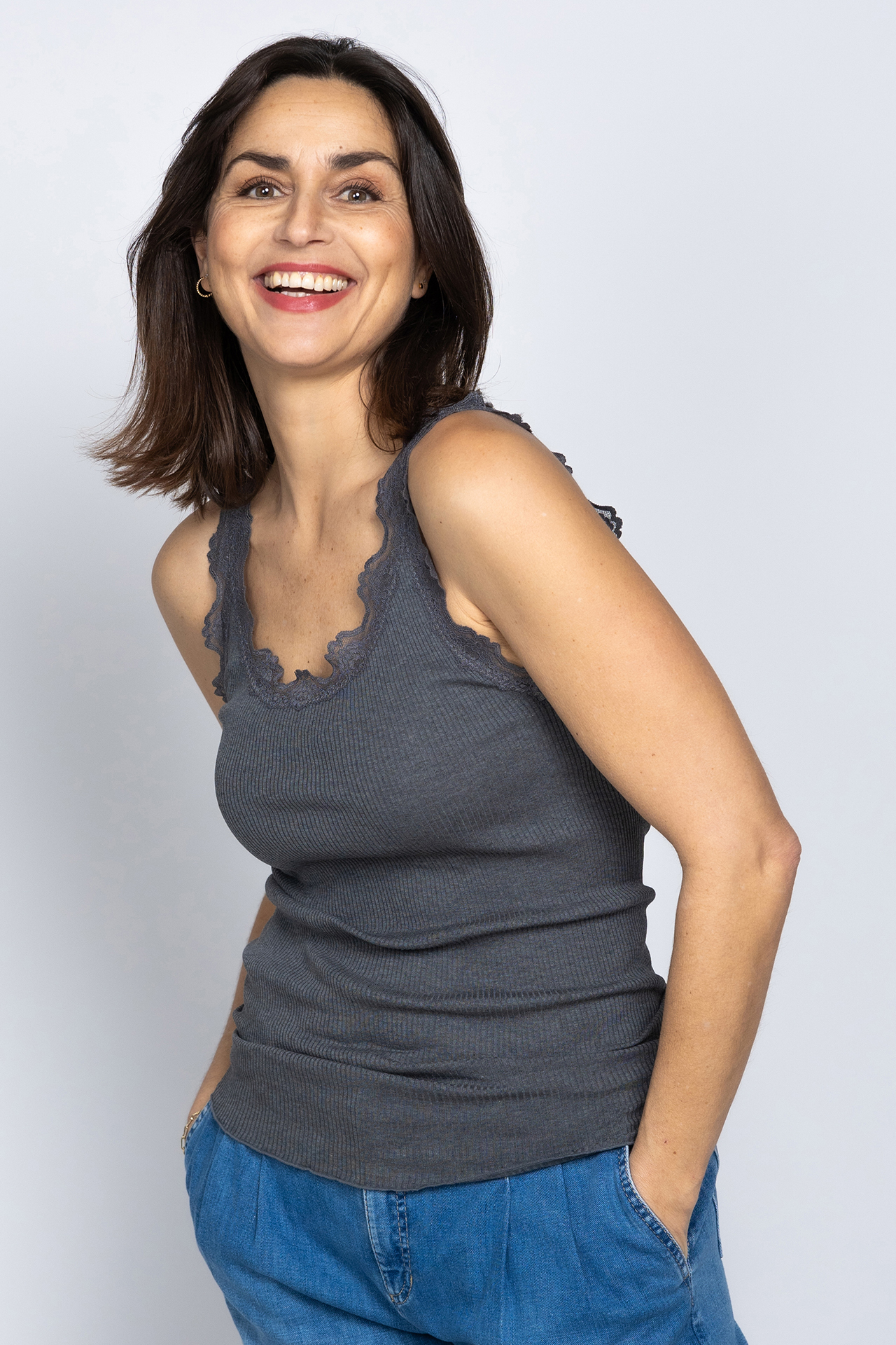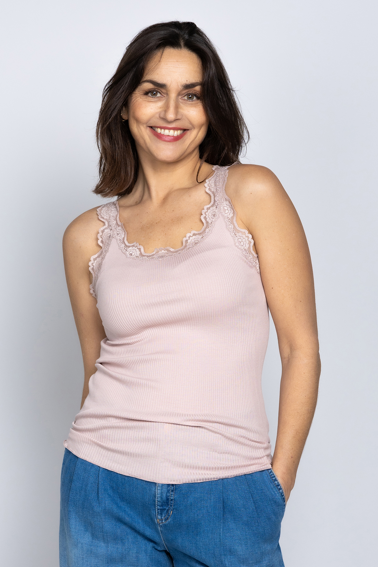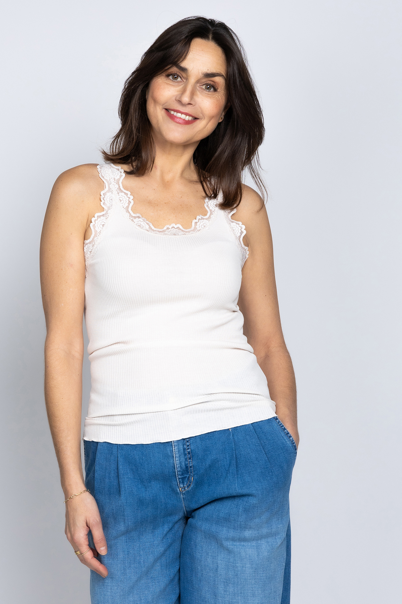 Zijde- en katoenmix rib top met kant en een subtiele glans in de stof