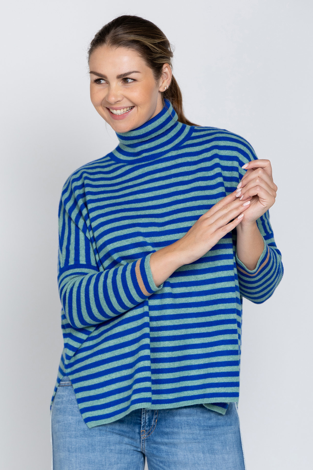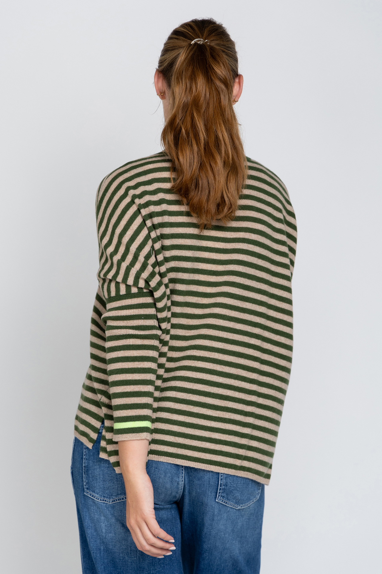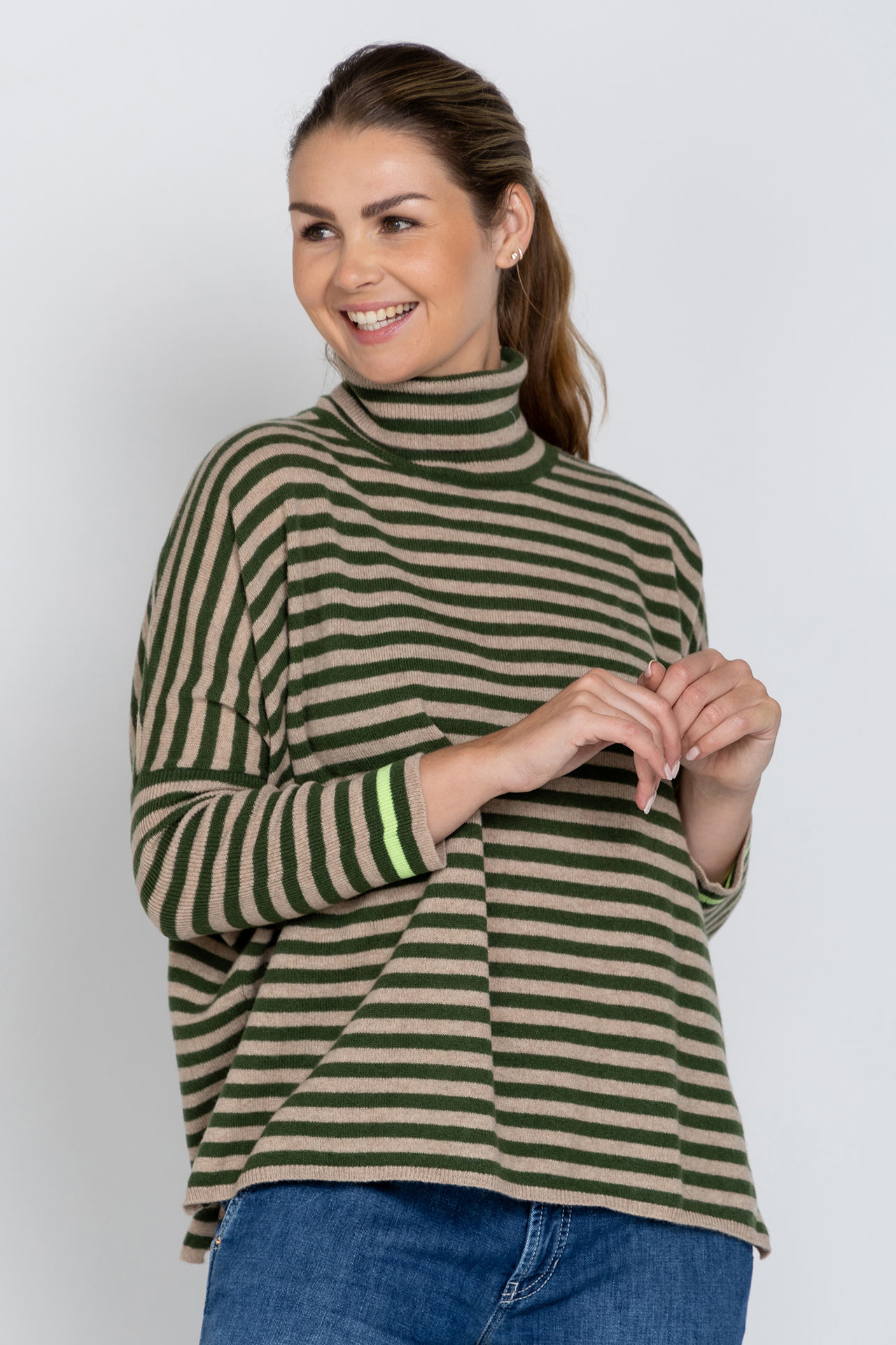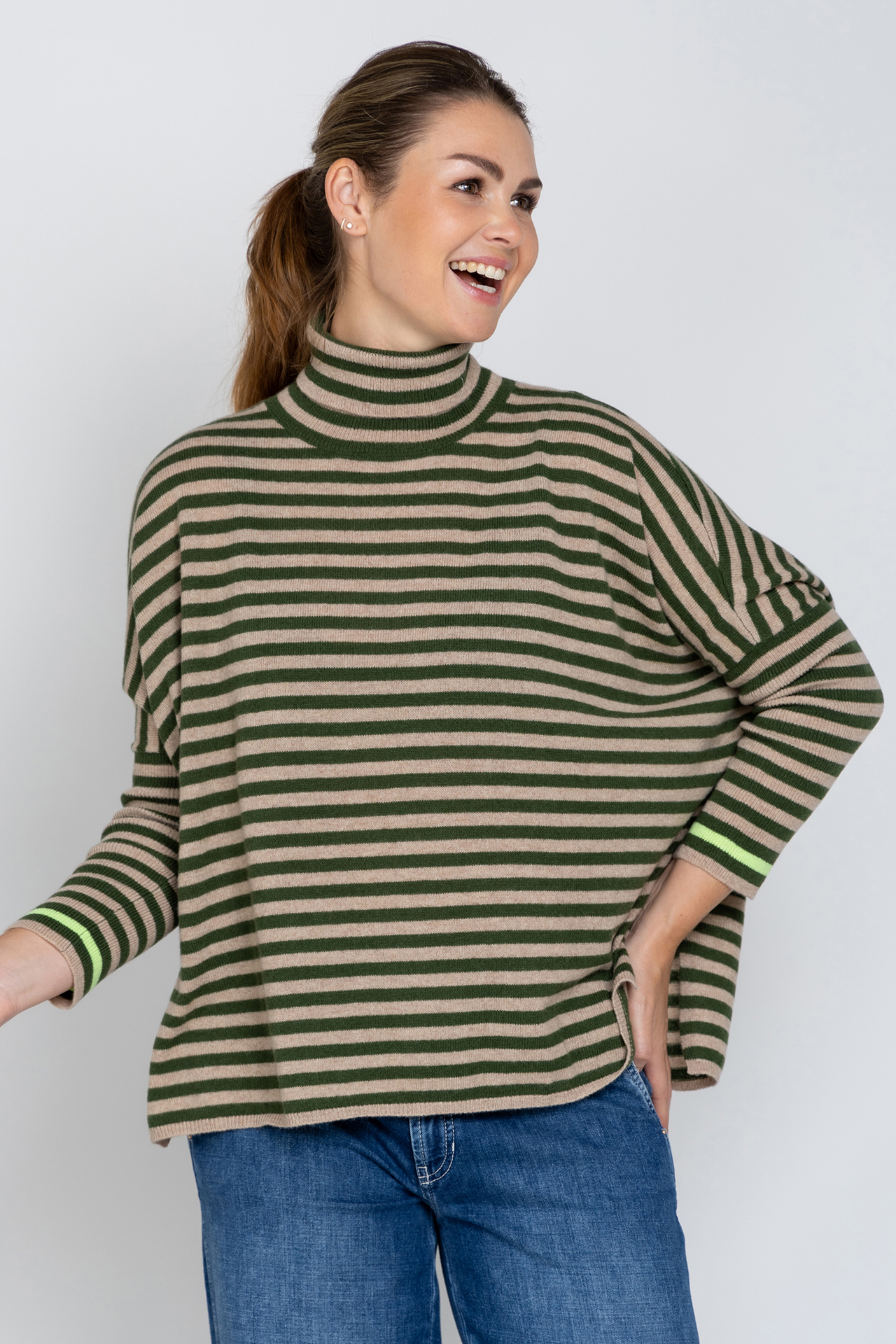 Loose fit cashmere coltrui met een streepdessin en lange mouwen