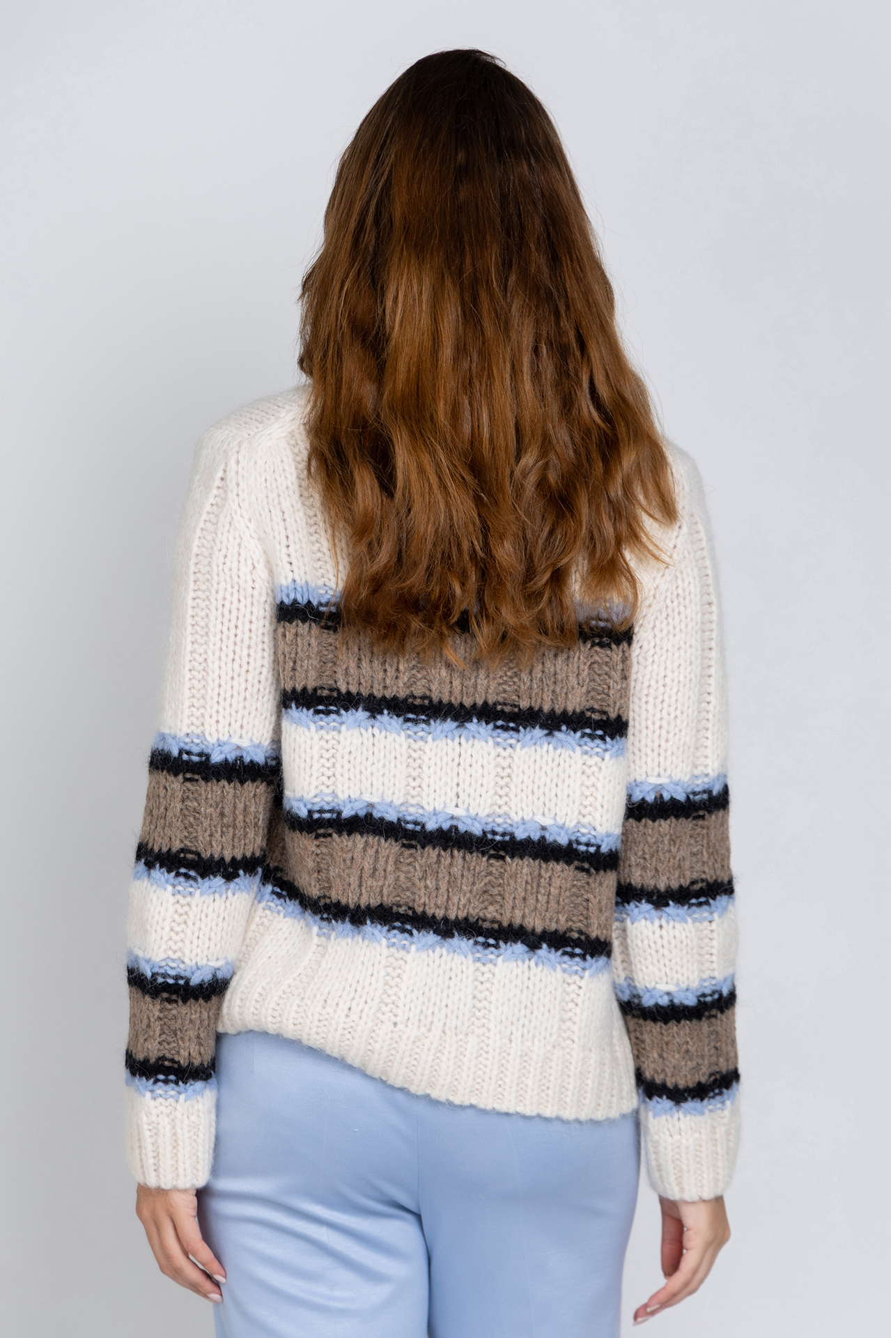 Gebreide coltrui met lange mouwen en horizontale gekleurde banen