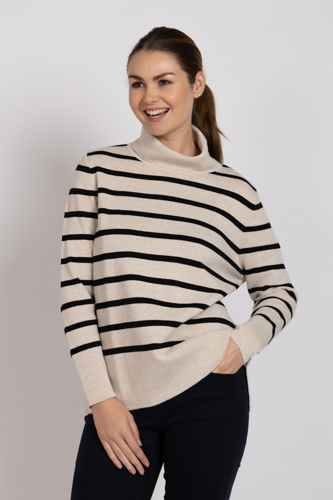 Gebreide coltrui met lange mouwen en strepen