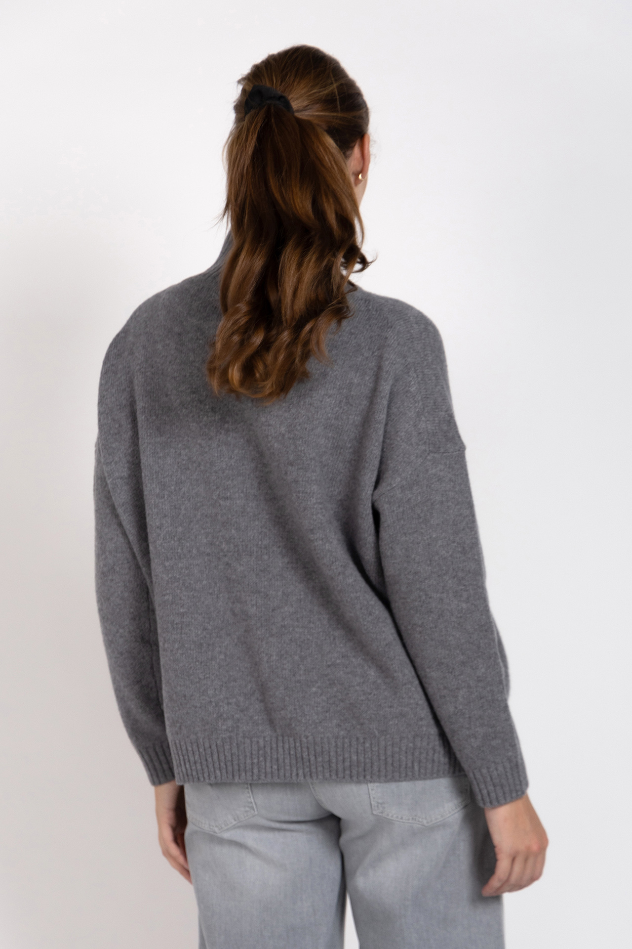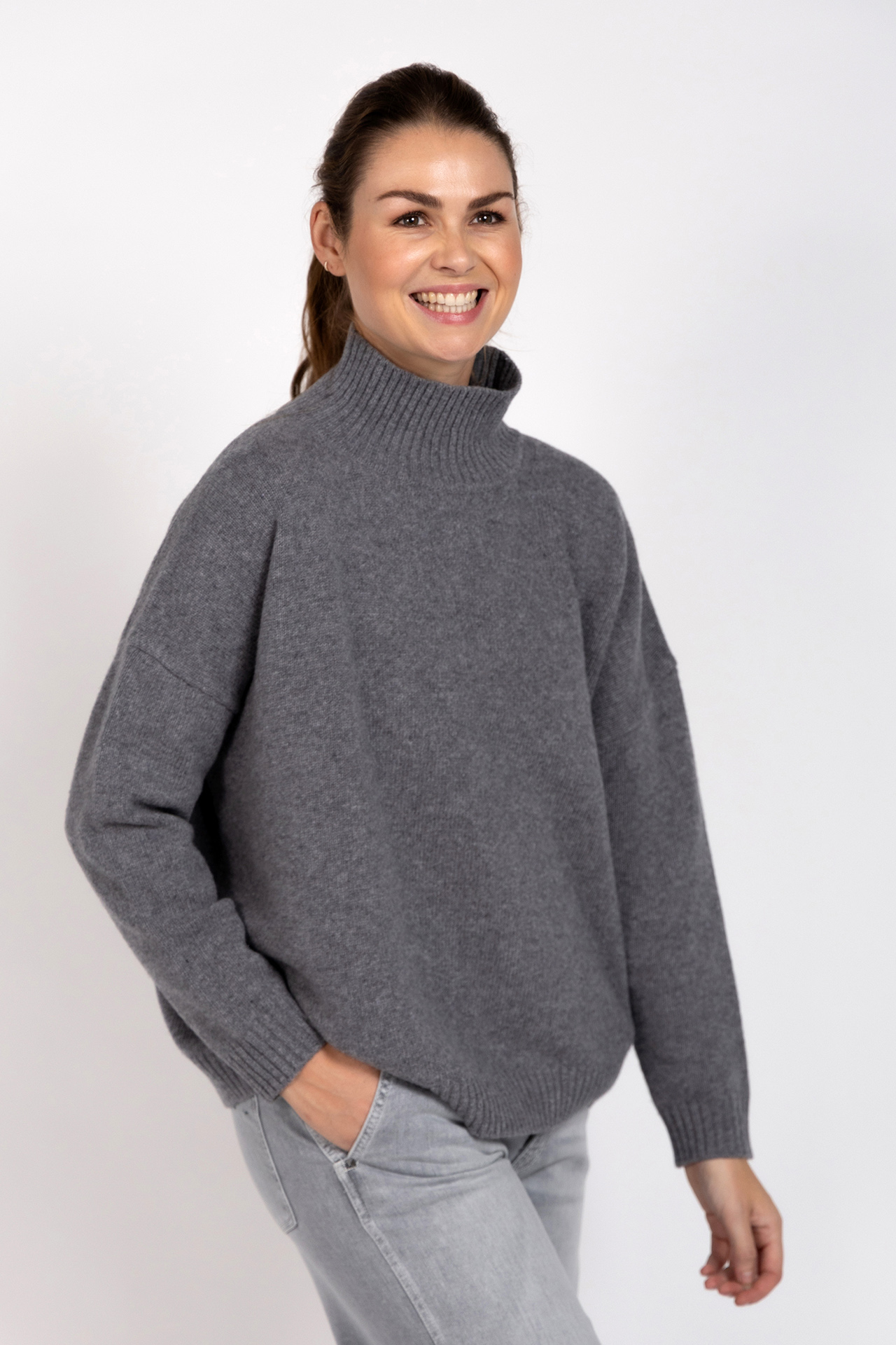Loose fit wollen coltrui met lange mouwen en geribde boorden