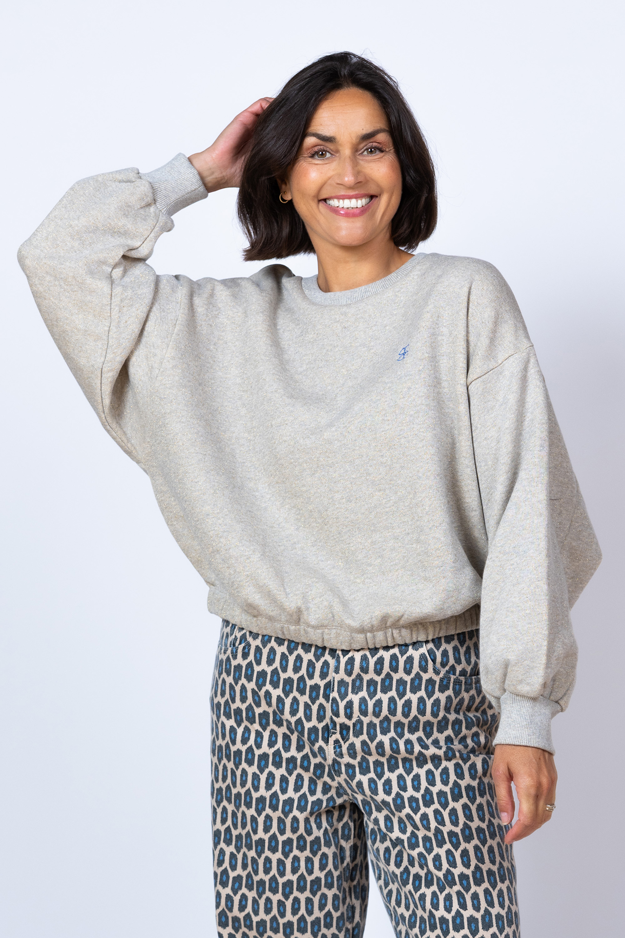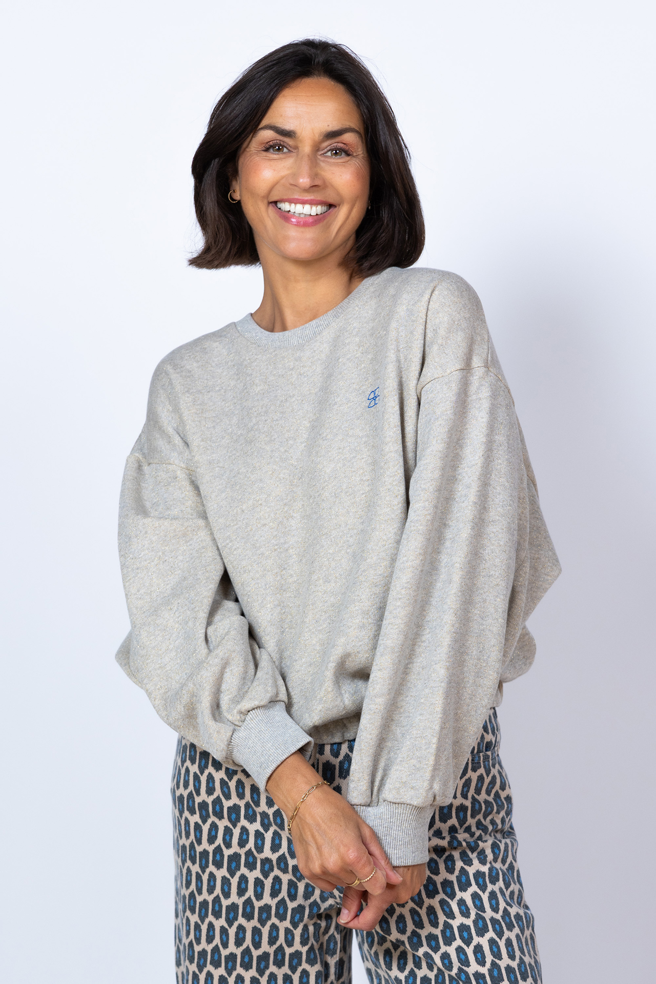 Loose fit sweater met een ronde hals en het logo op de borst. Hij heeft all-over glitters en is gemaakt van organisch katoen