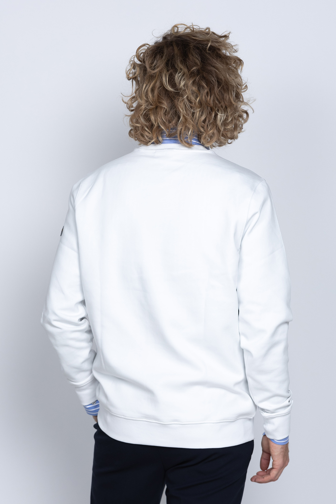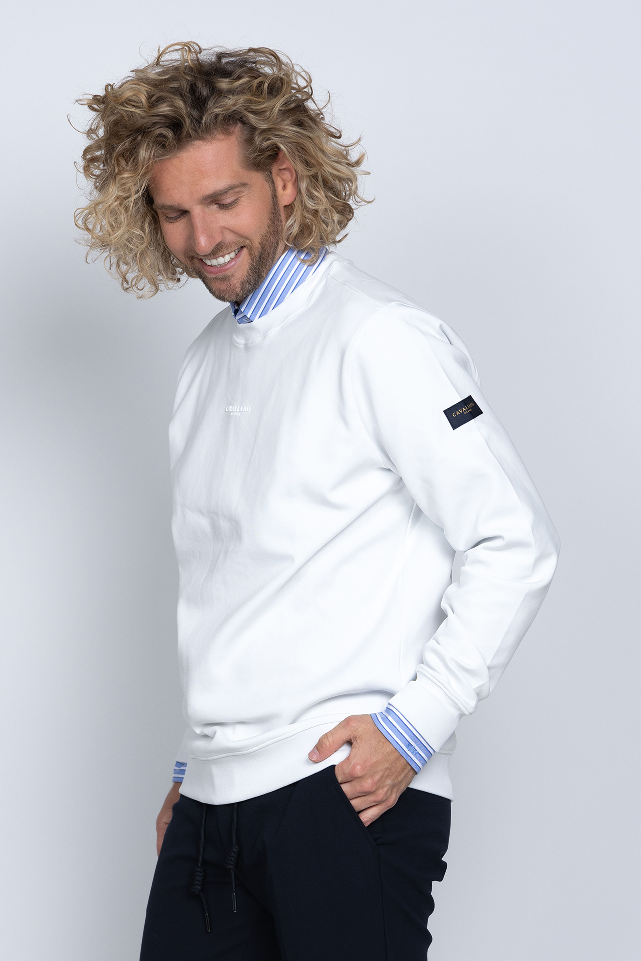 Katoenmix sweater met lange mouwen, een ronde hals, de merknaam op de borst en het logo op de linkermouw