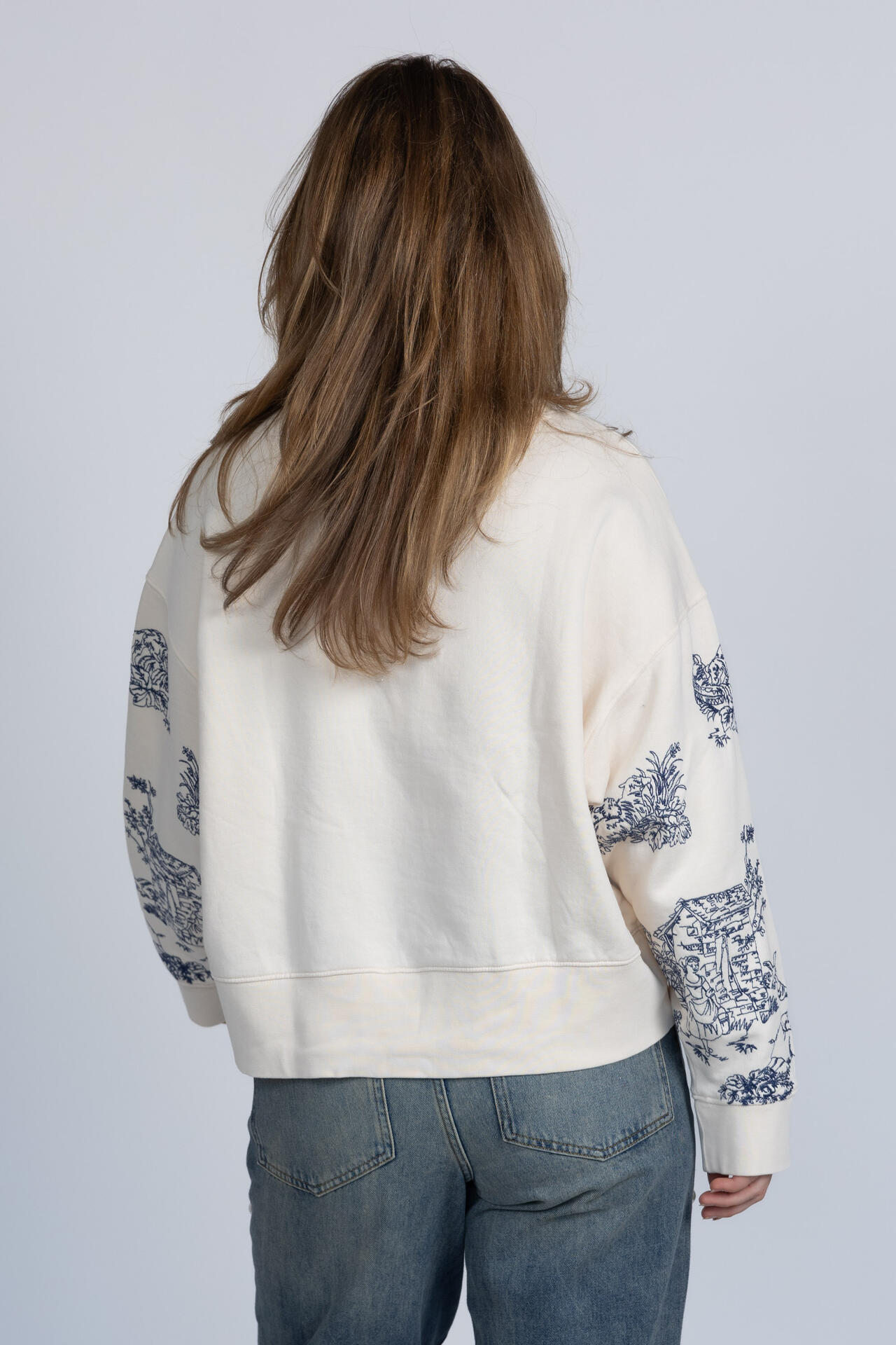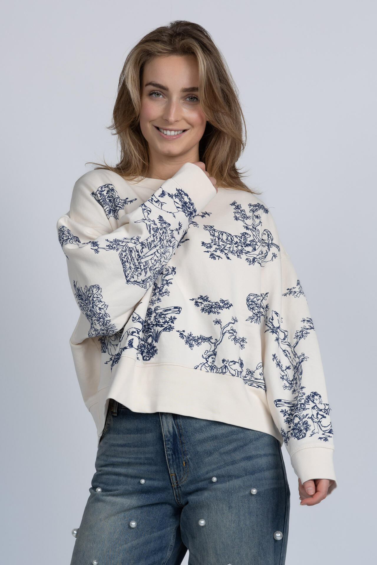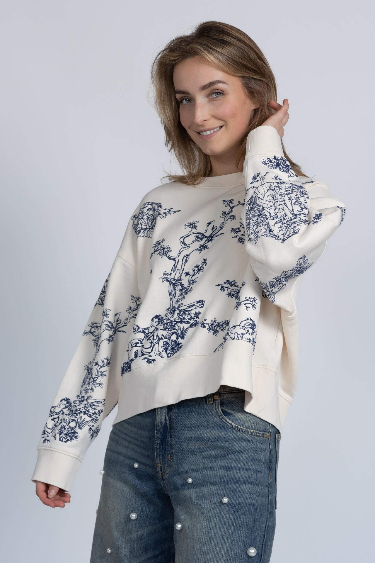Oversized sweater met een ronde hals en borduursels aan de voorkant en op de mouwen