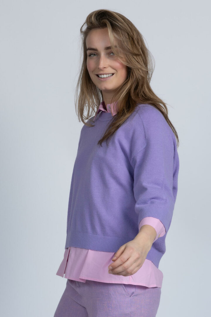 Loose fit truitje met korte mouwen, een ronde hals en geribde boorden