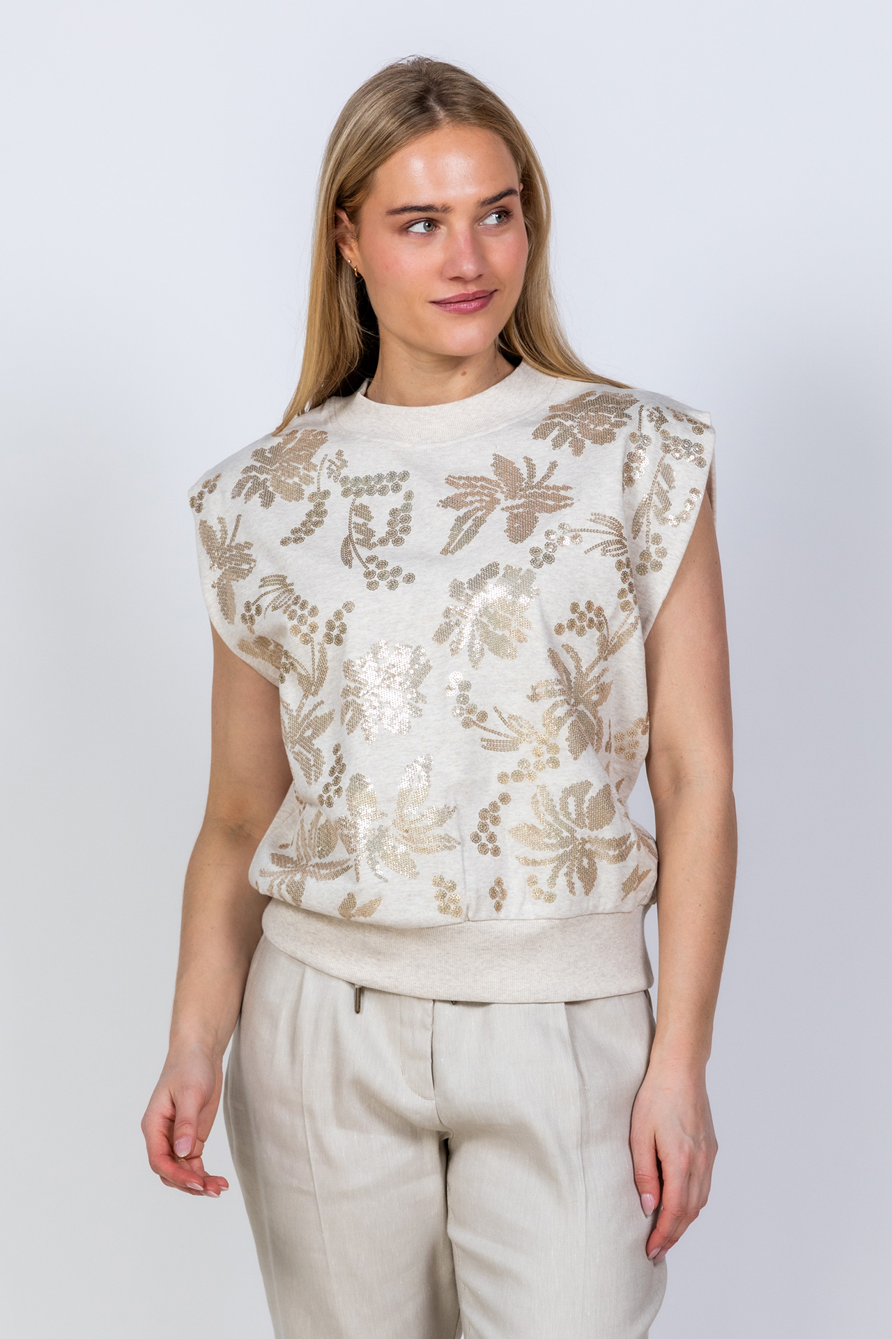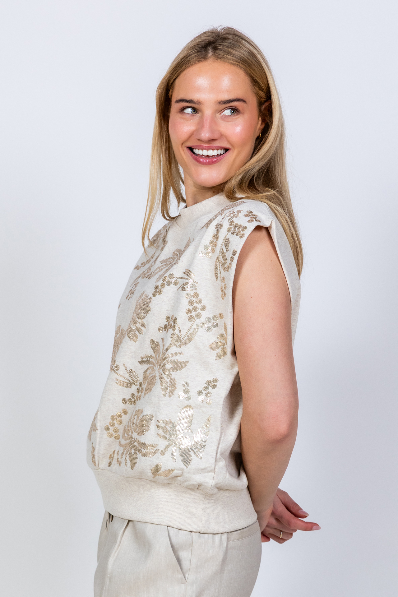 Mouwloze trui met een ronde hals, boord aan de onderkant en pailletten aan de voorkant