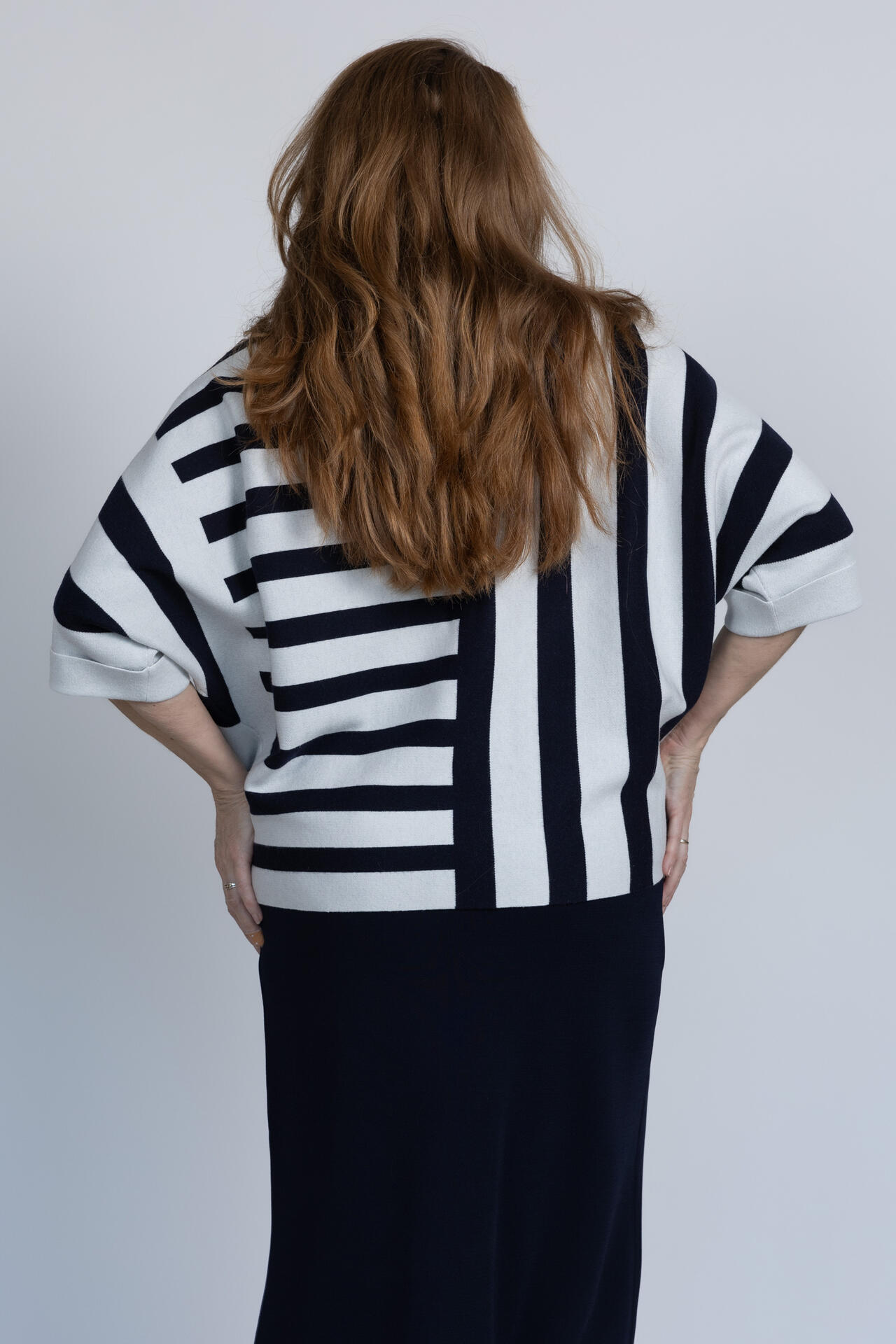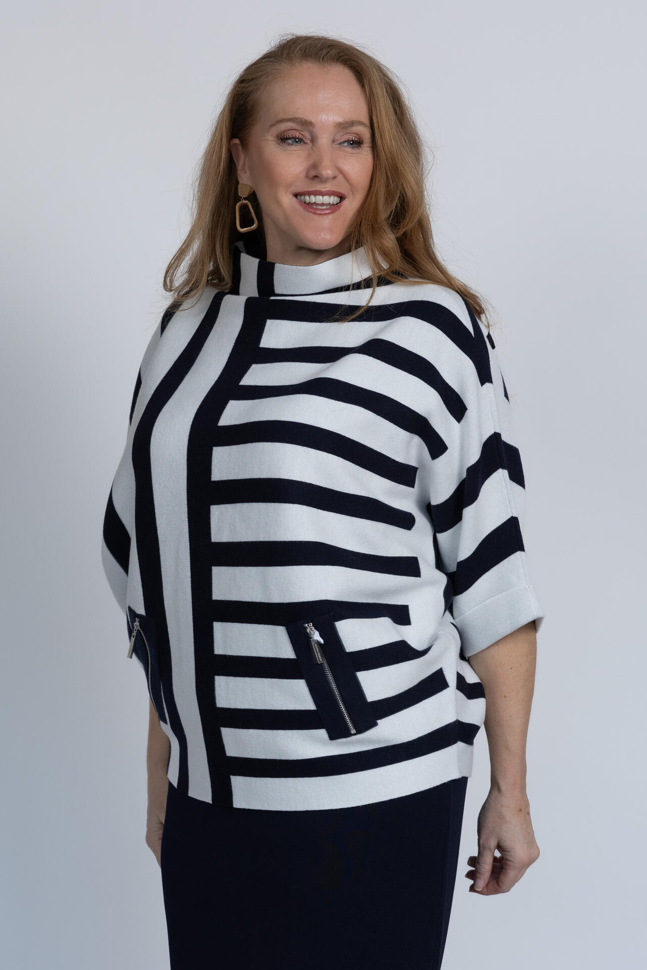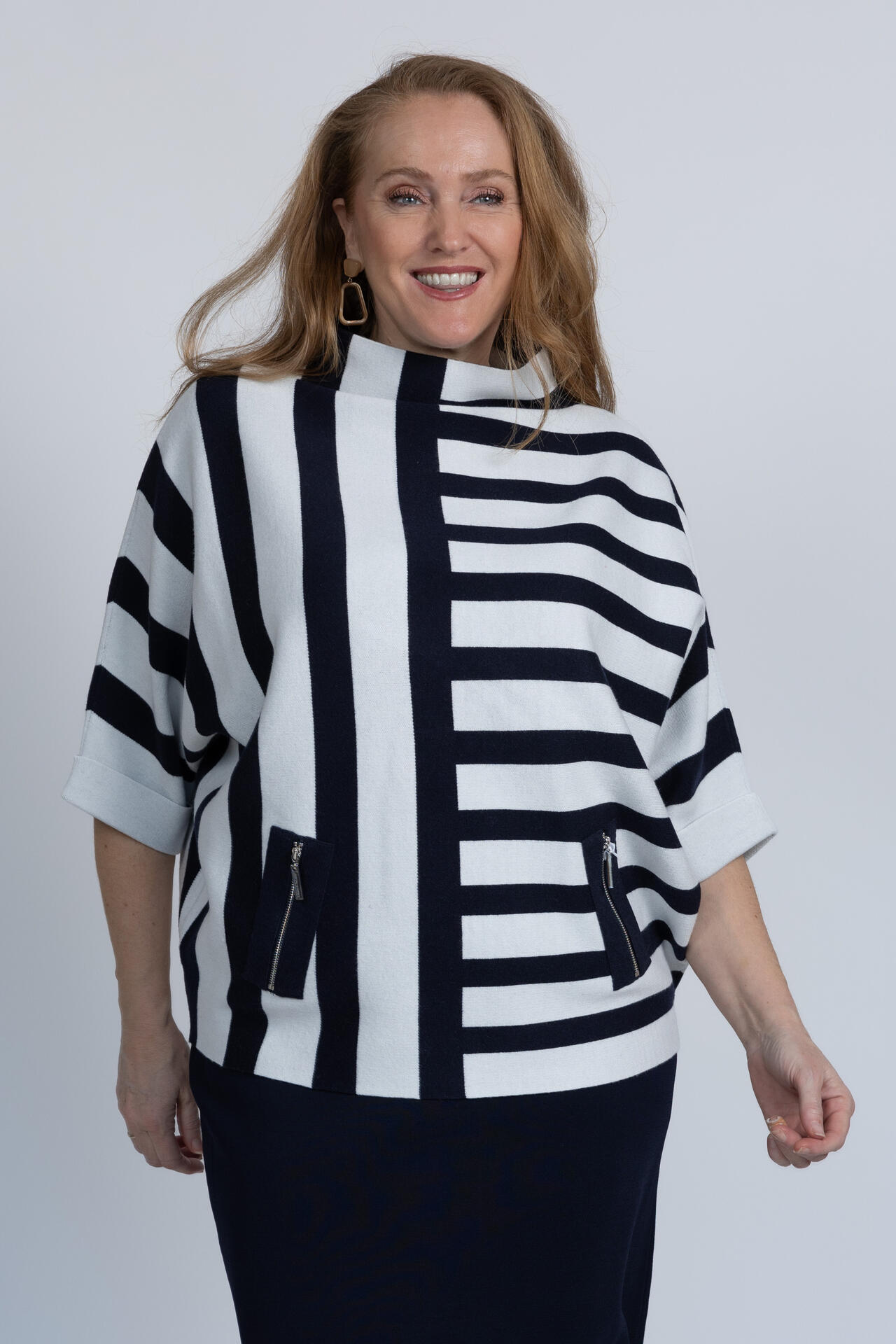 Oversized trui met een opstaande kraag, korte mouwen, ritsjes aan de voorkant en verschillende streepdessins