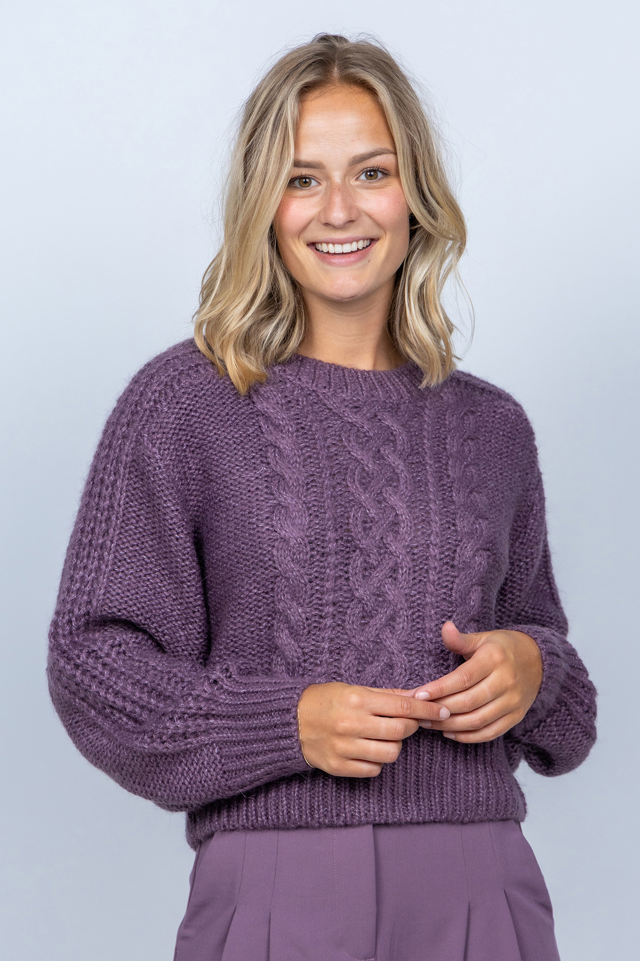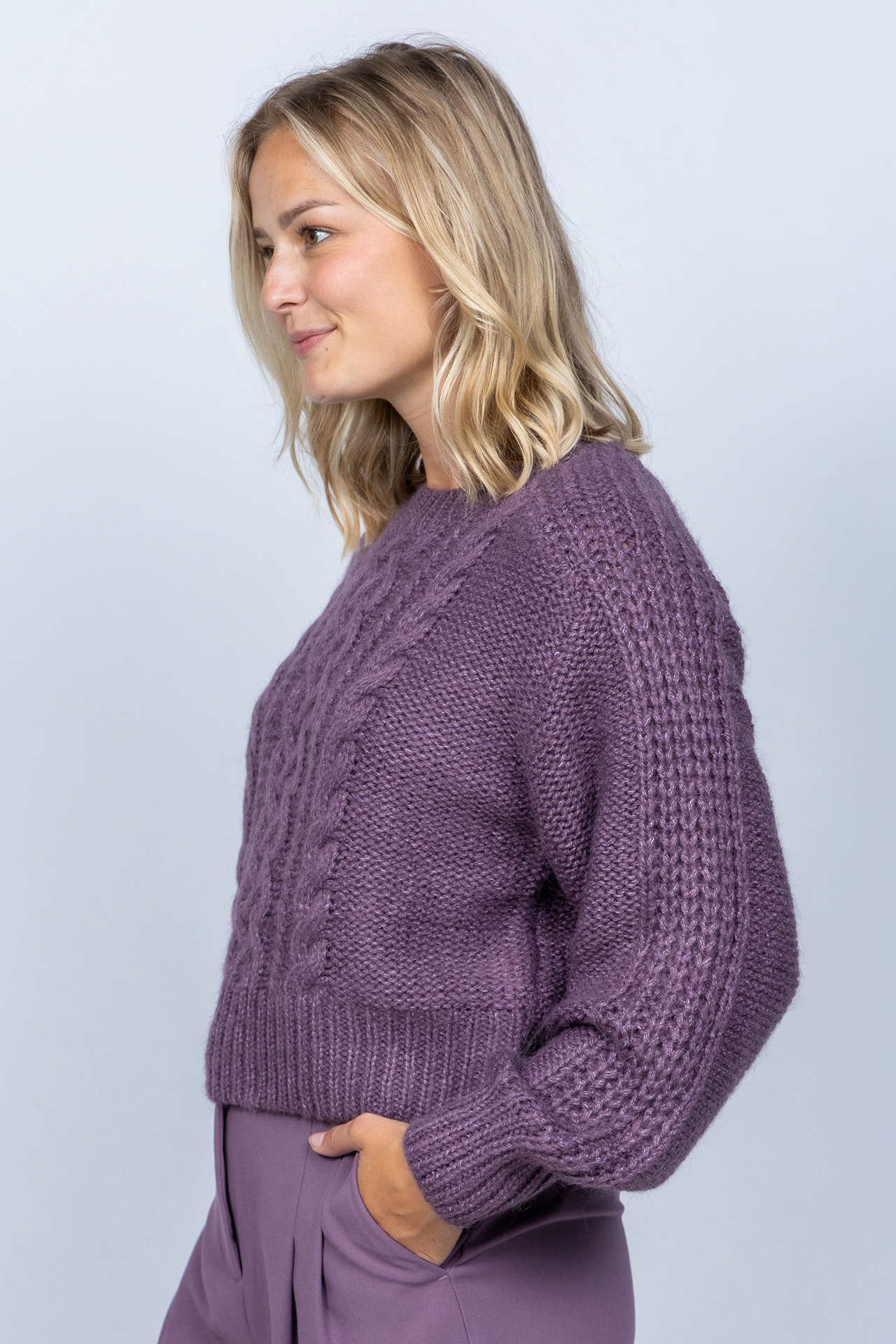 Gebreide kabeltrui met een loose fit, ronde hals en geribde boorden