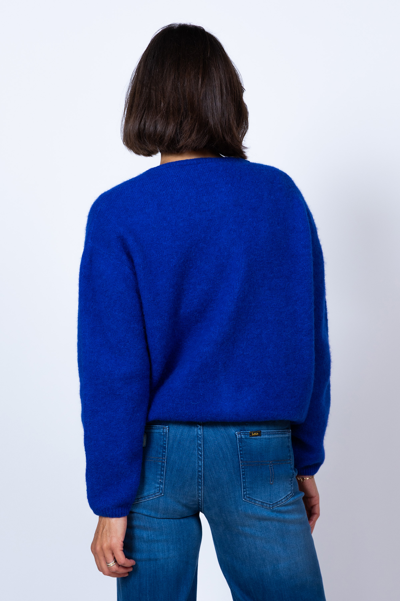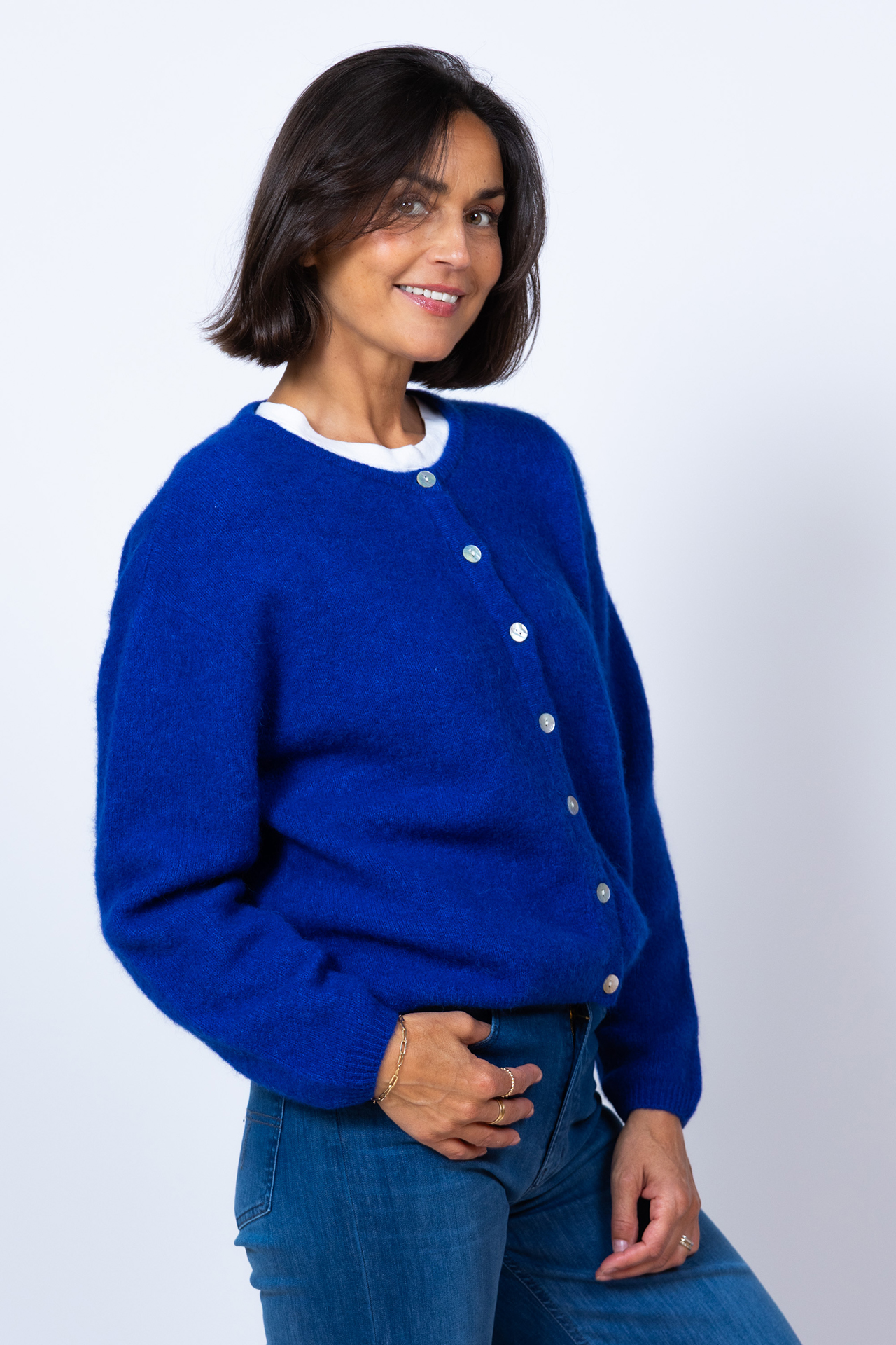 Loose fit wolmix vest met een ronde hals, lange mouwen en parelmoer knoopjes