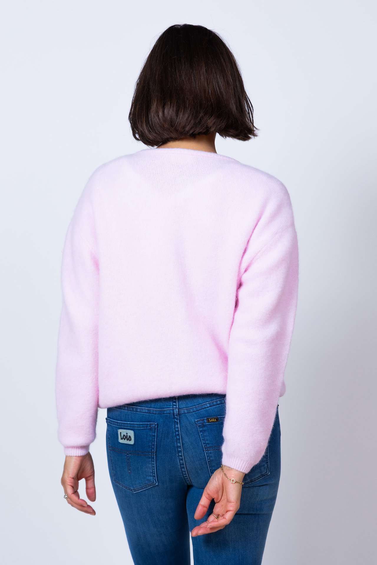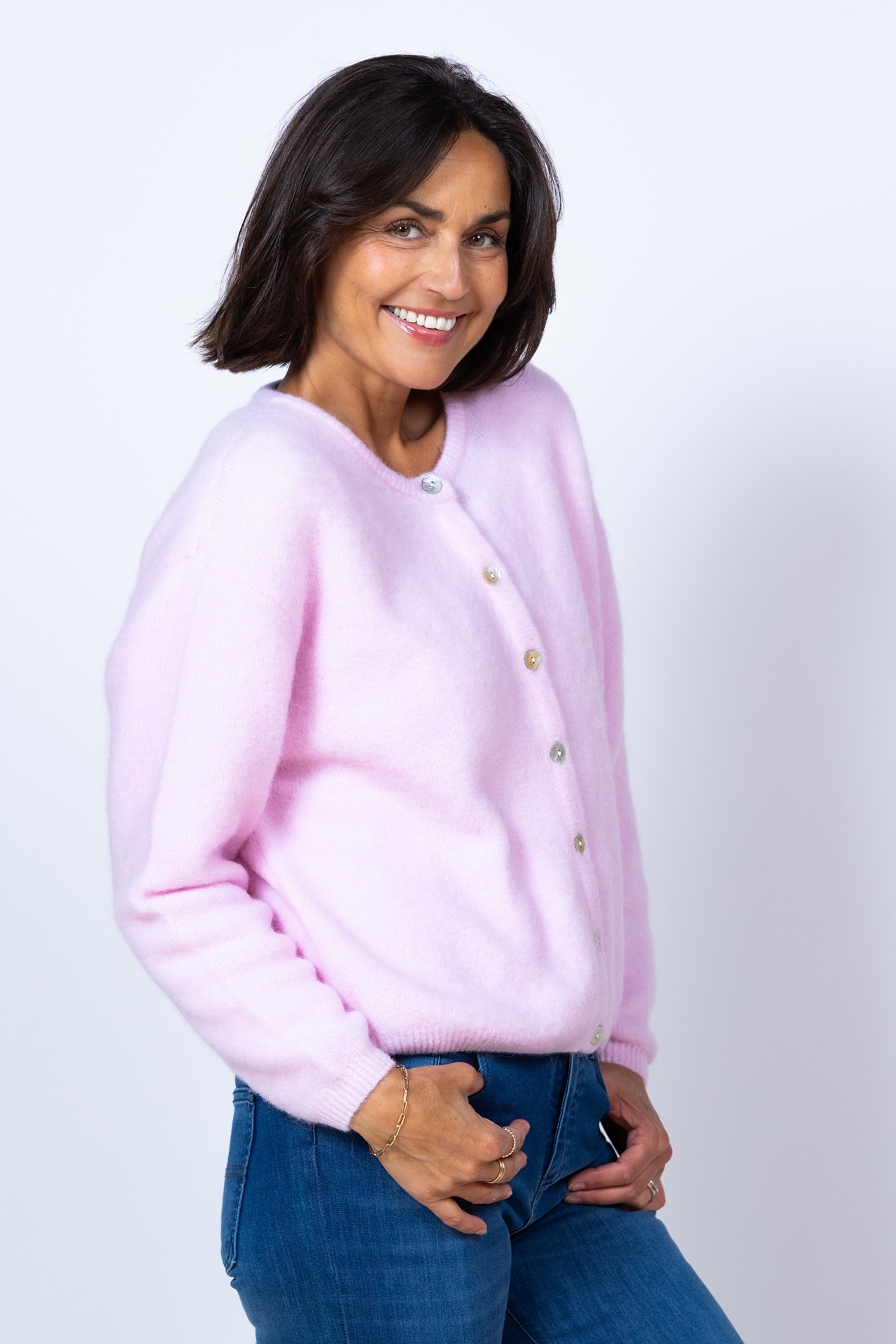 Loose fit wolmix vest met een ronde hals, lange mouwen en parelmoer knoopjes