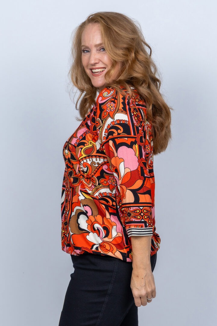 Katoen losvallend vest met lange mouwen en splitjes aan de zijkant