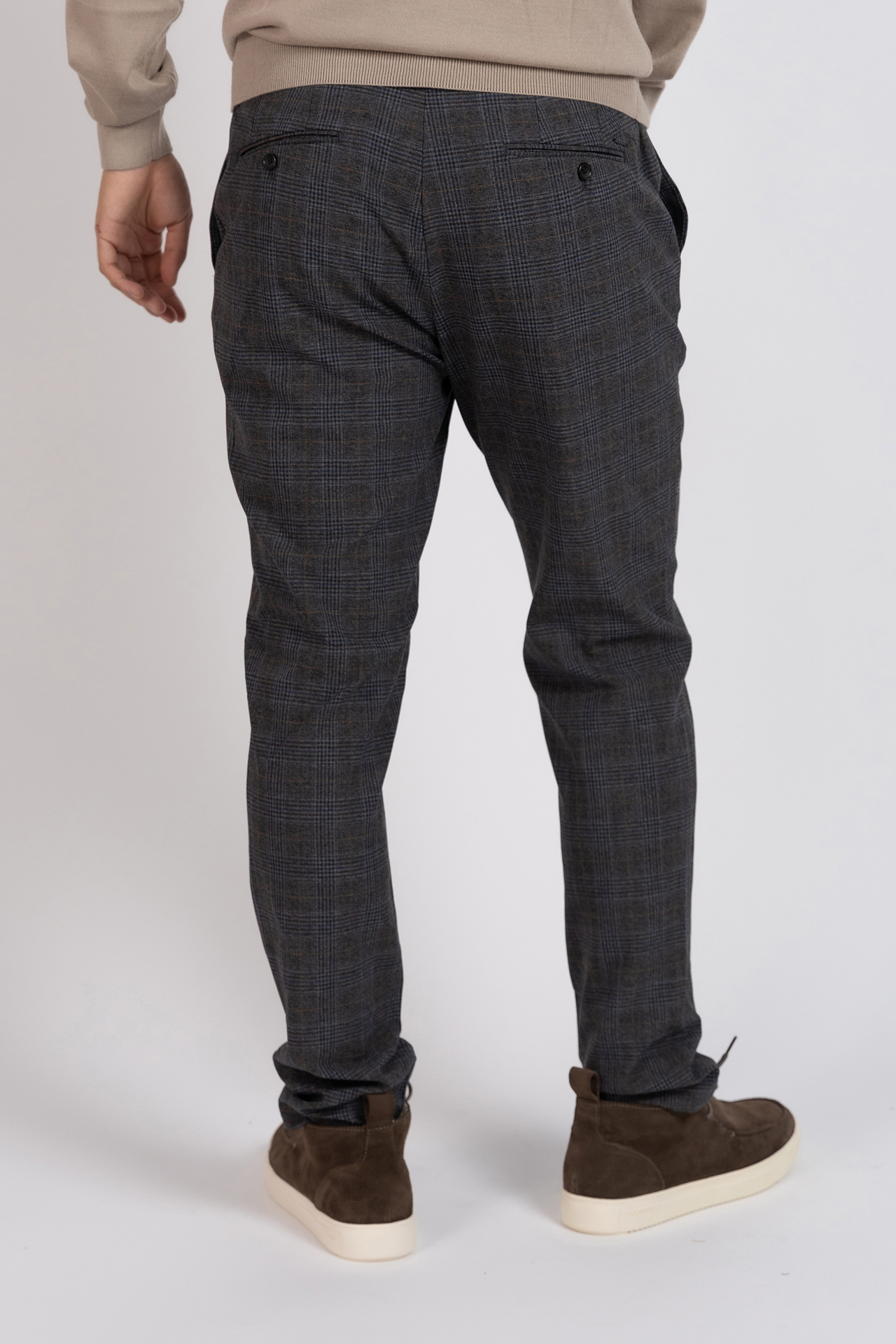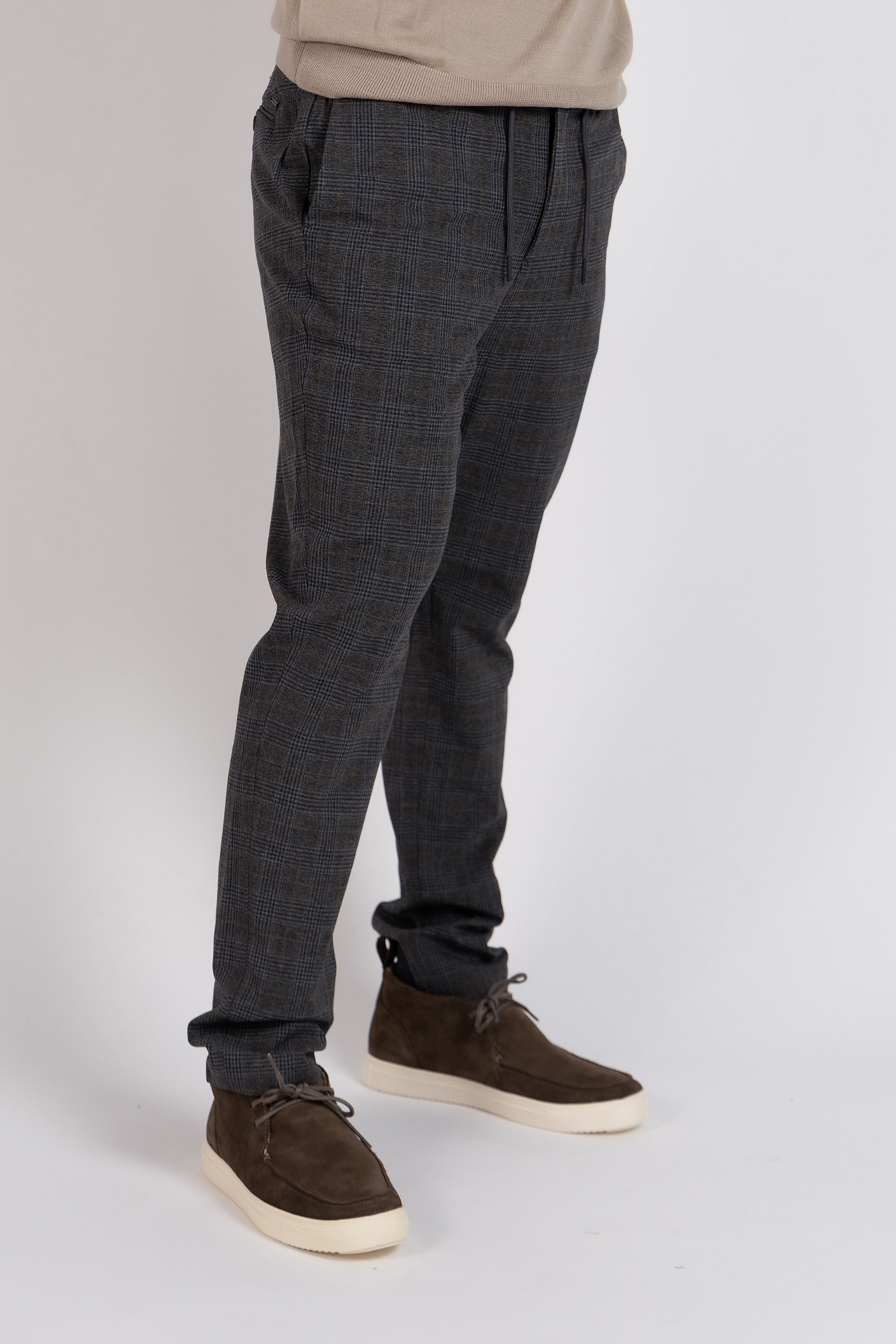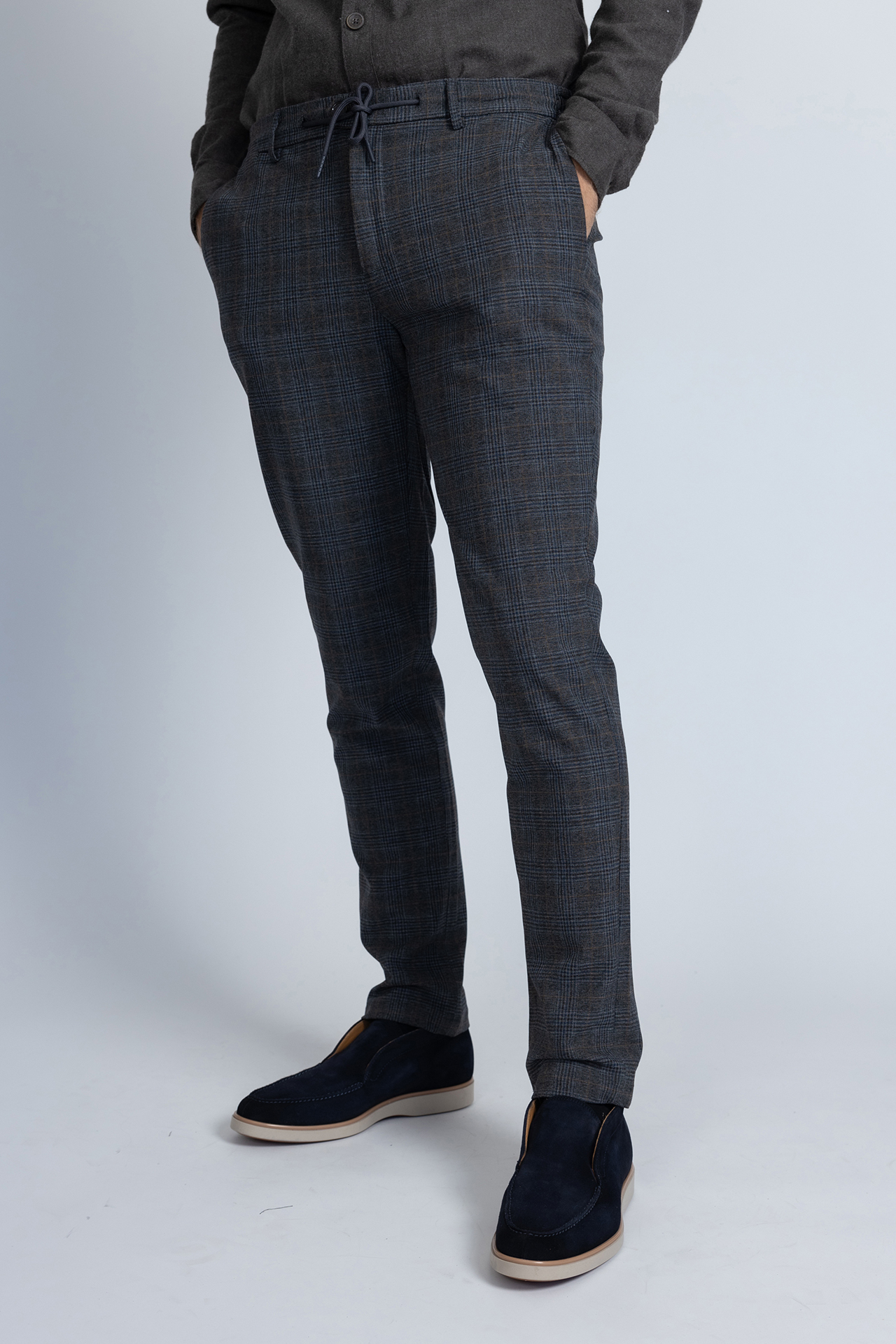 Geruite broek met een knoop- en ritssluiting, lusjes en een koordje in de band, steekzakken aan de voorkant, paspelzakken aan de achterkant en er zit stretch in de stof waardoor hij heerlijk zit