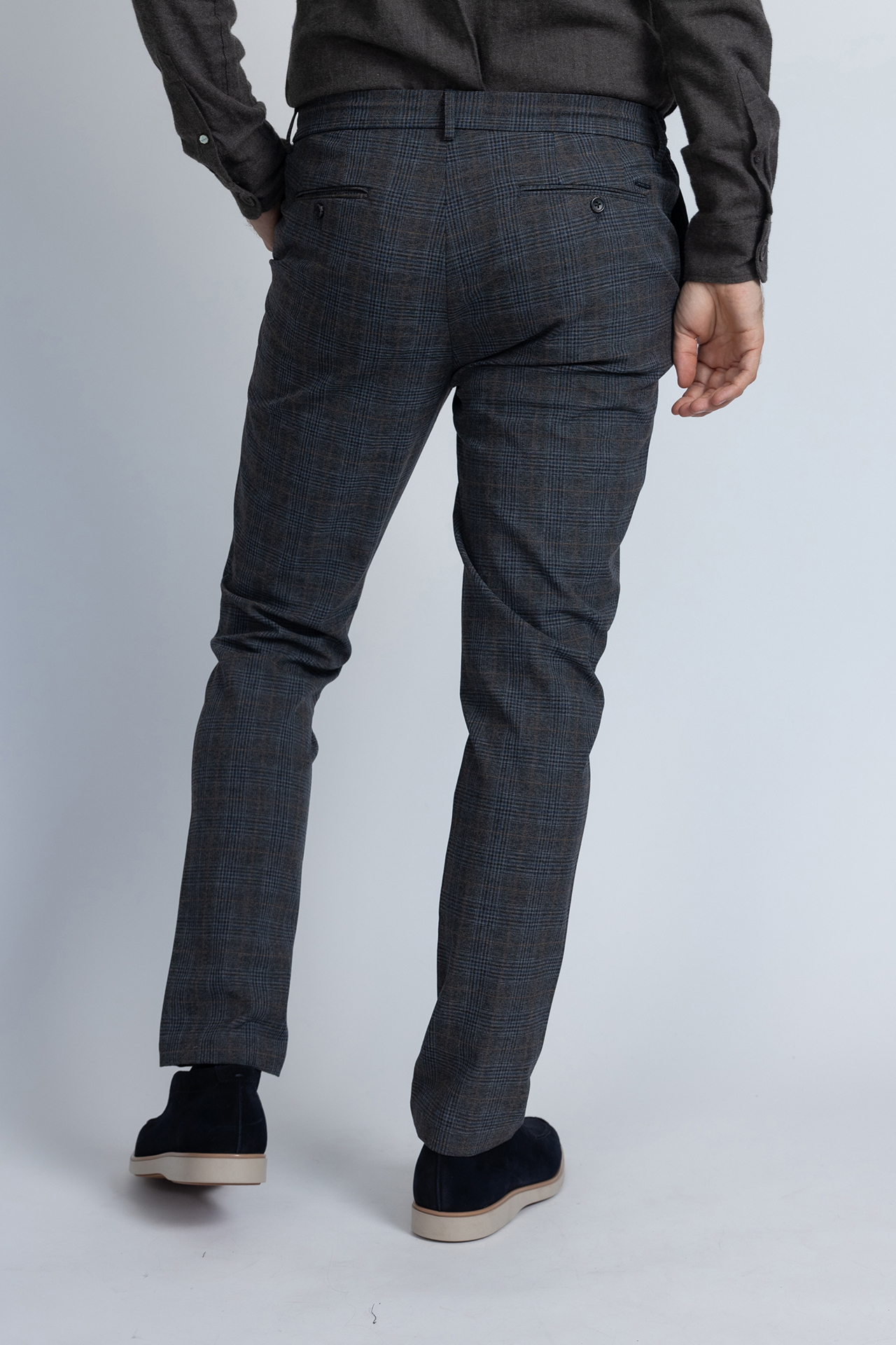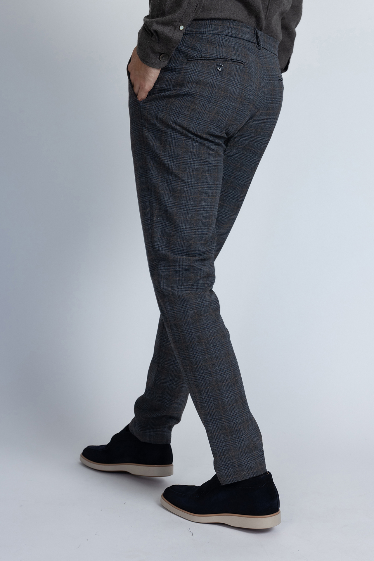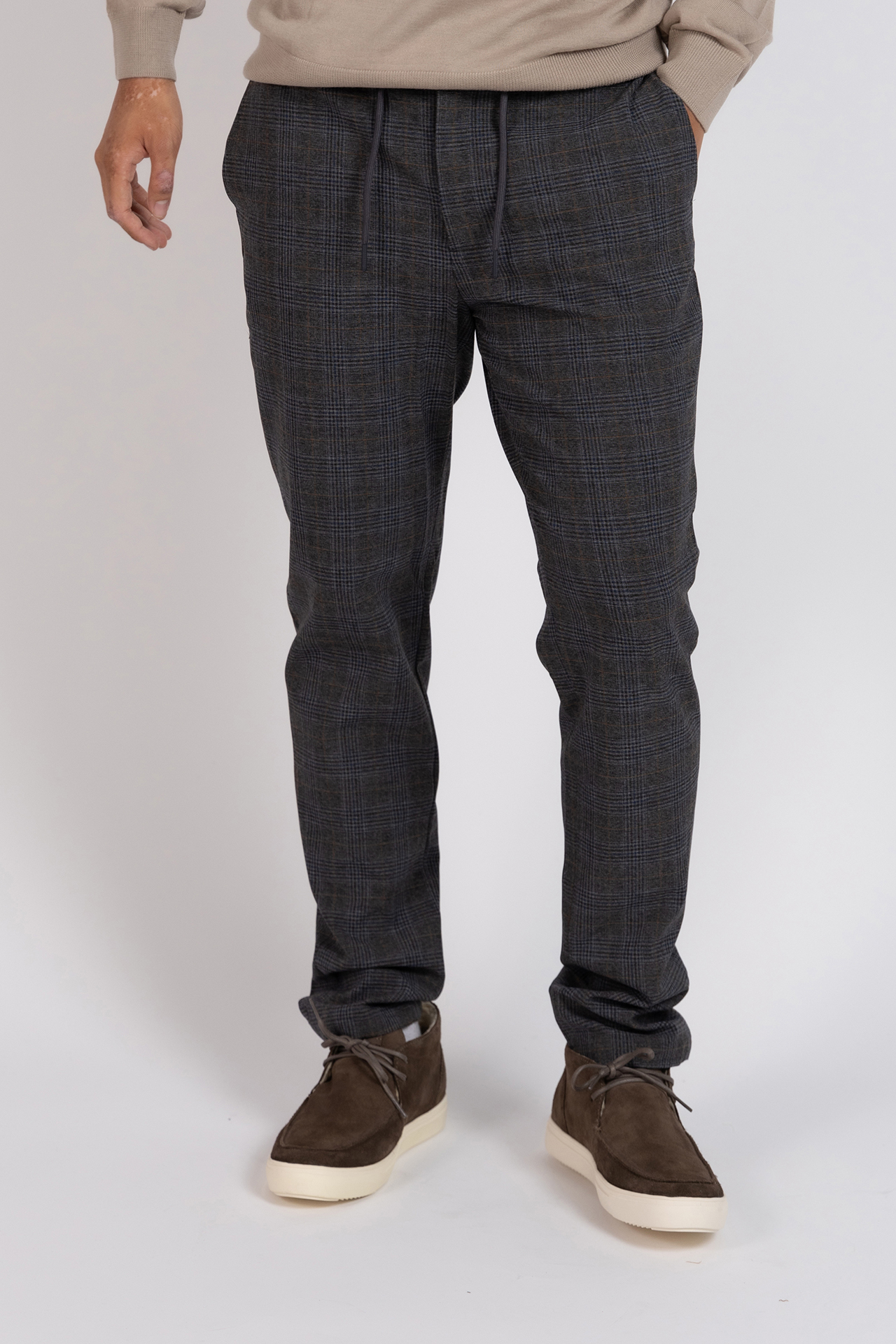Geruite broek met een knoop- en ritssluiting, lusjes en een koordje in de band, steekzakken aan de voorkant, paspelzakken aan de achterkant en er zit stretch in de stof waardoor hij heerlijk zit