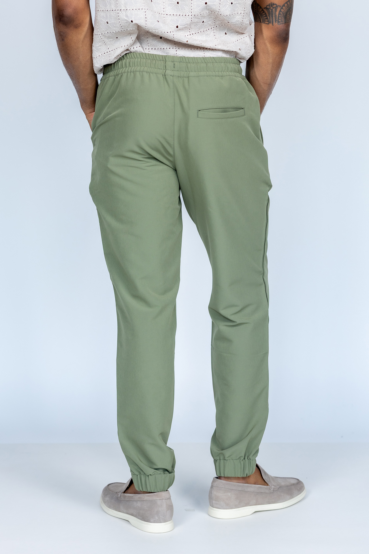 Broek met een elastische band met koordje in de taille. Hij heeft steekzakken aan de voorkant, een fake zak aan de achterkant en stretch in de stof waardoor hij comfortabel draagt