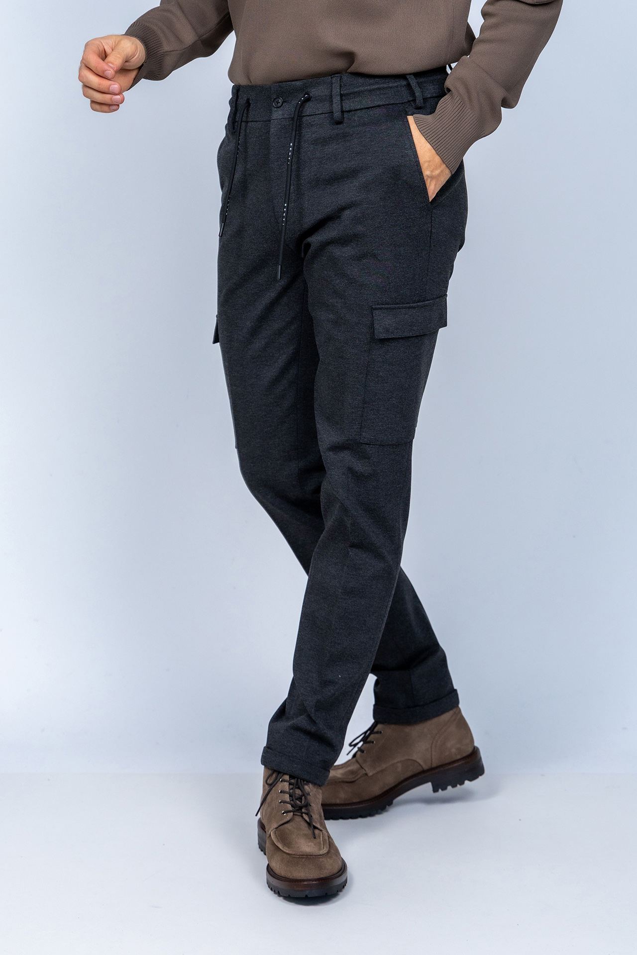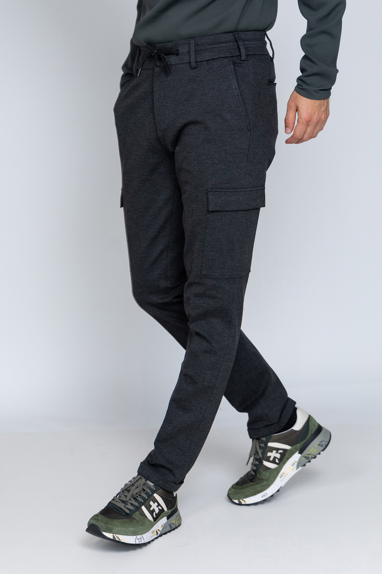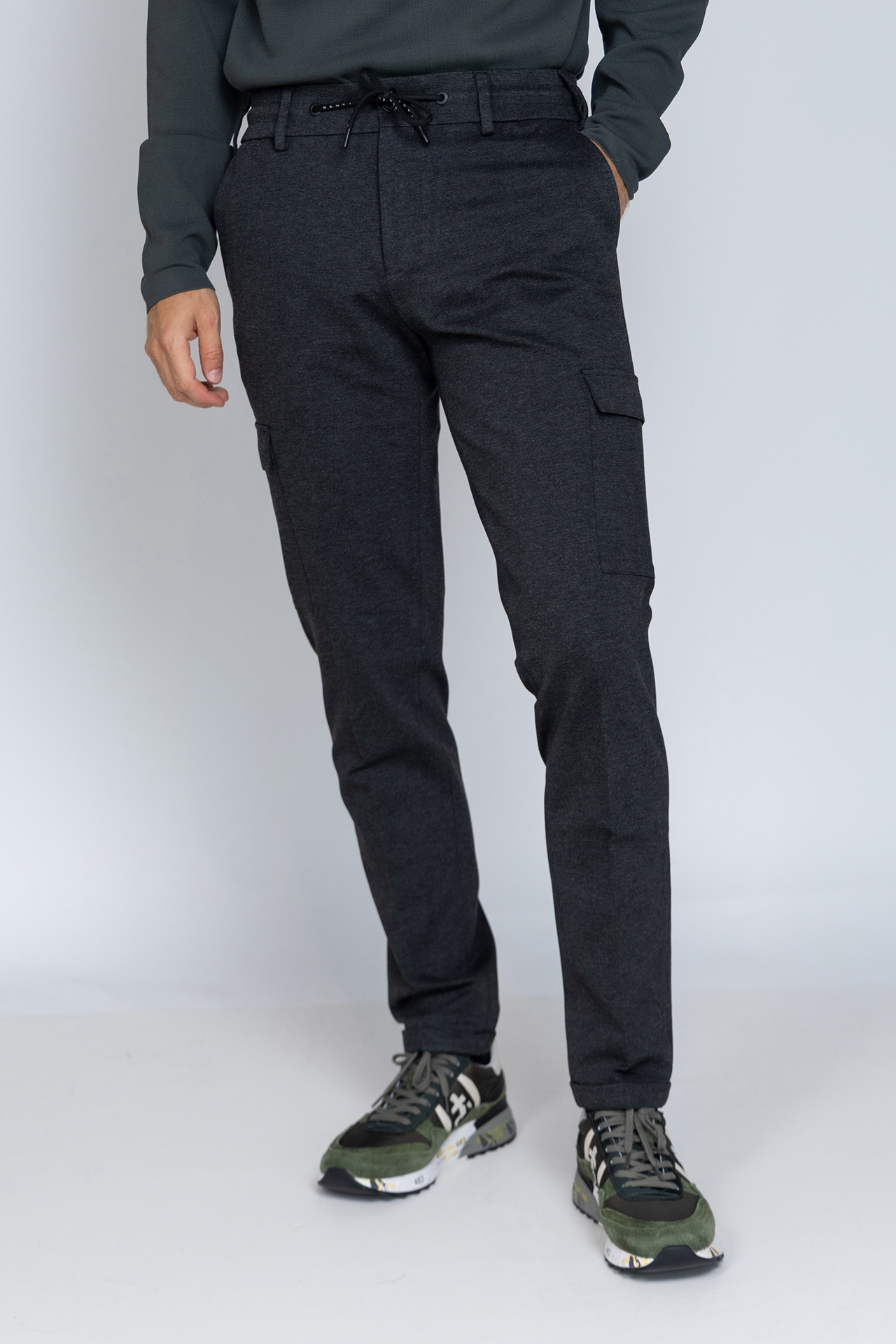 Pantalon met een knoop- en ritssluiting en lusjes in de band voor een ceintuur. Hij heeft steekzakken aan de voorkant, fake zakken aan de achterkant en klepzakken aan de zijkant. Ook zit er stretch in de stof waardoor hij heerlijk draagt