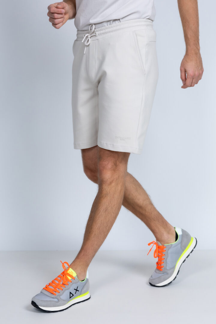 Short met een elastische band en koordje in de taille, steekzakken aan de voorkant, fake zakken aan de achterkant en stretch in de stof waardoor hij heerlijk zit