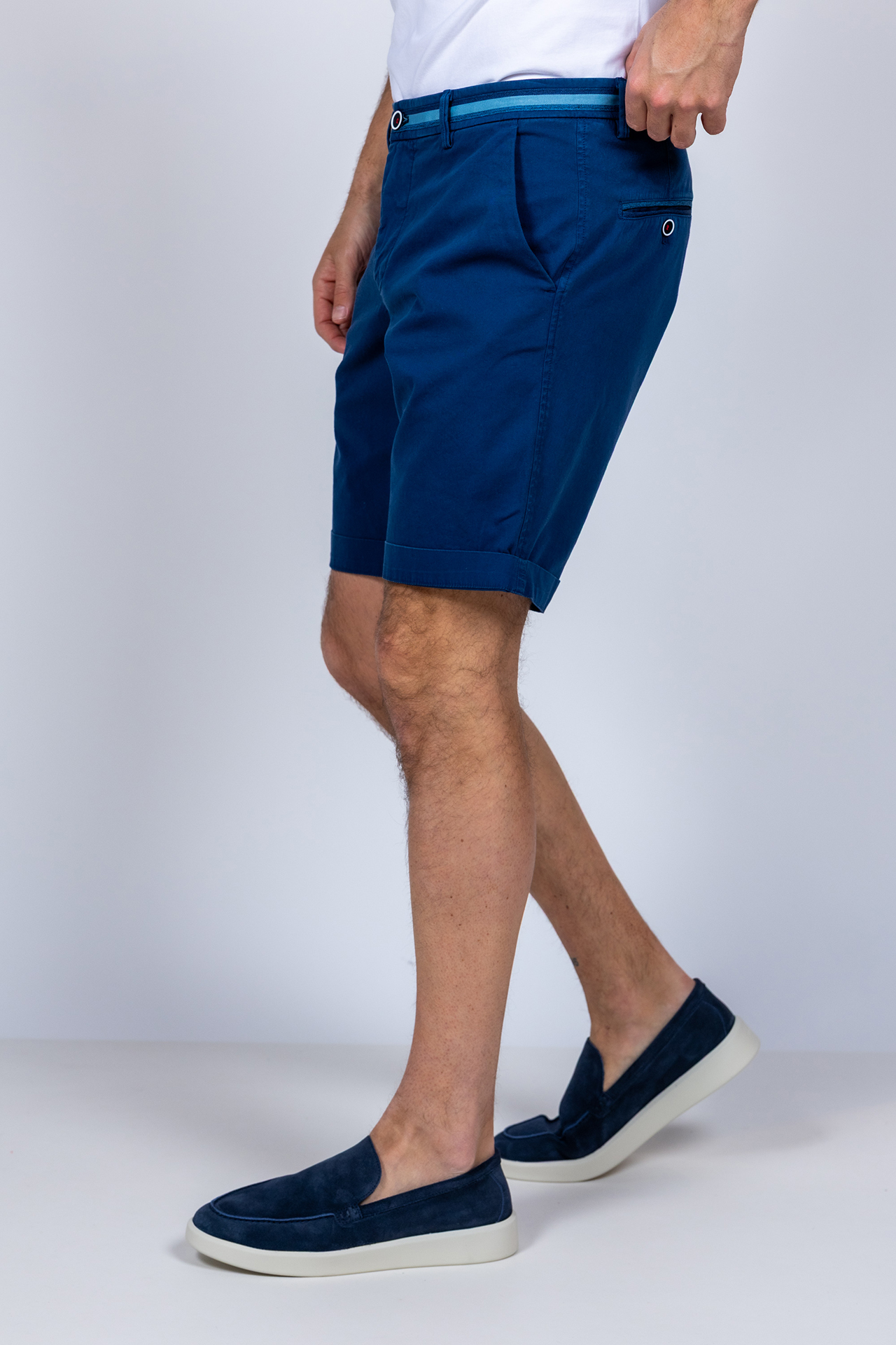 Short met een knoop- en ritssluiting en lusjes in de band. Hij heeft steekzakken aan de voorkant, paspelzakken aan de achterkant en stretch in de stof waardoor hij comfortabel draagt