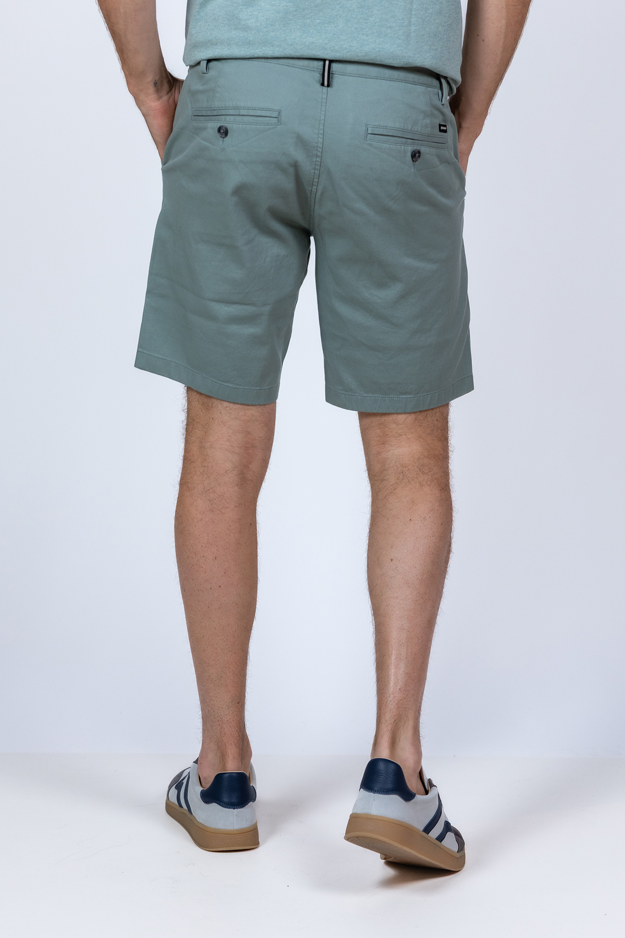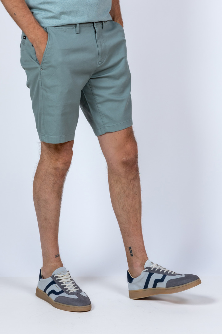Short met een knoop- en ritssluiting en lusjes in de band voor een ceintuur. Hij heeft steekzakken aan de voorkant, paspelzakken aan de achterkant en strech in de stof waardoor hij comfortabel draagt