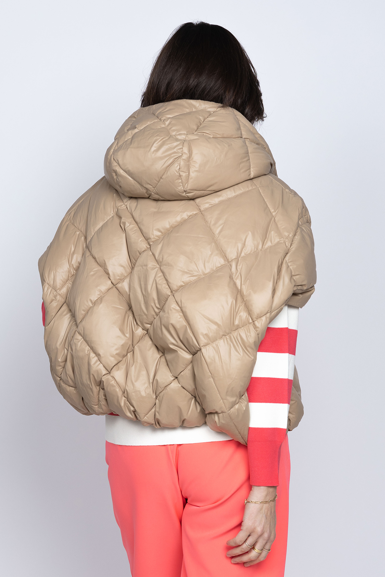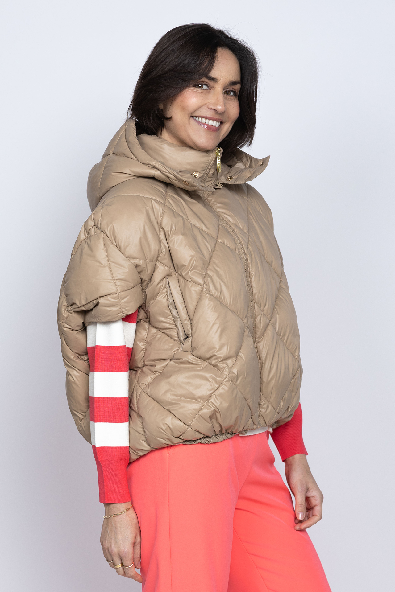 Doorgestikte loose fit bodywarmer met korte mouwen, een ritssluiting, afneembare capuchon en steekzakken aan de voorkant