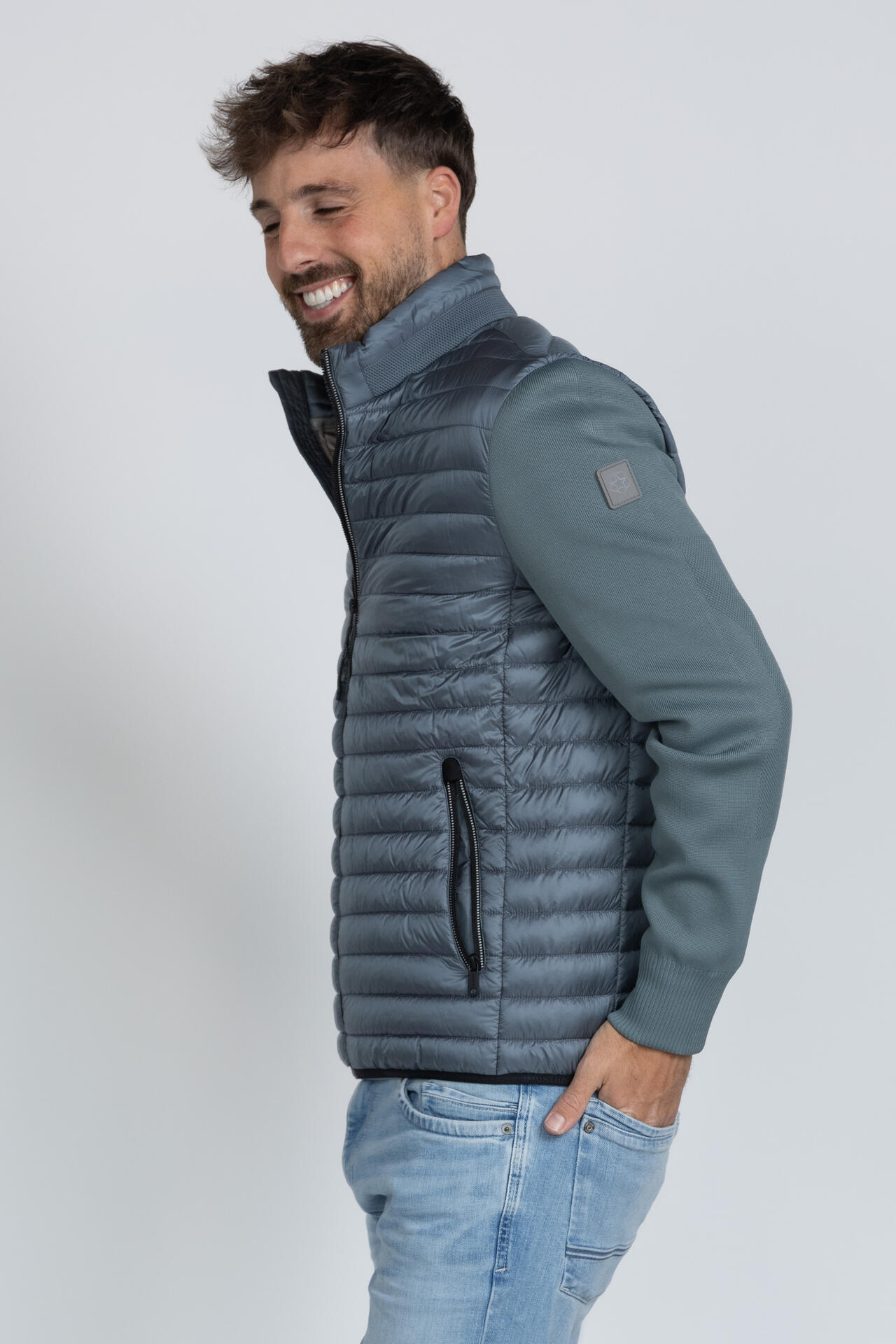 Kort jack met een opstaande kraag, gewatteerde body, ritssluiting en steekzakken met rits aan de voorkant