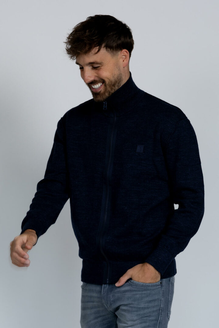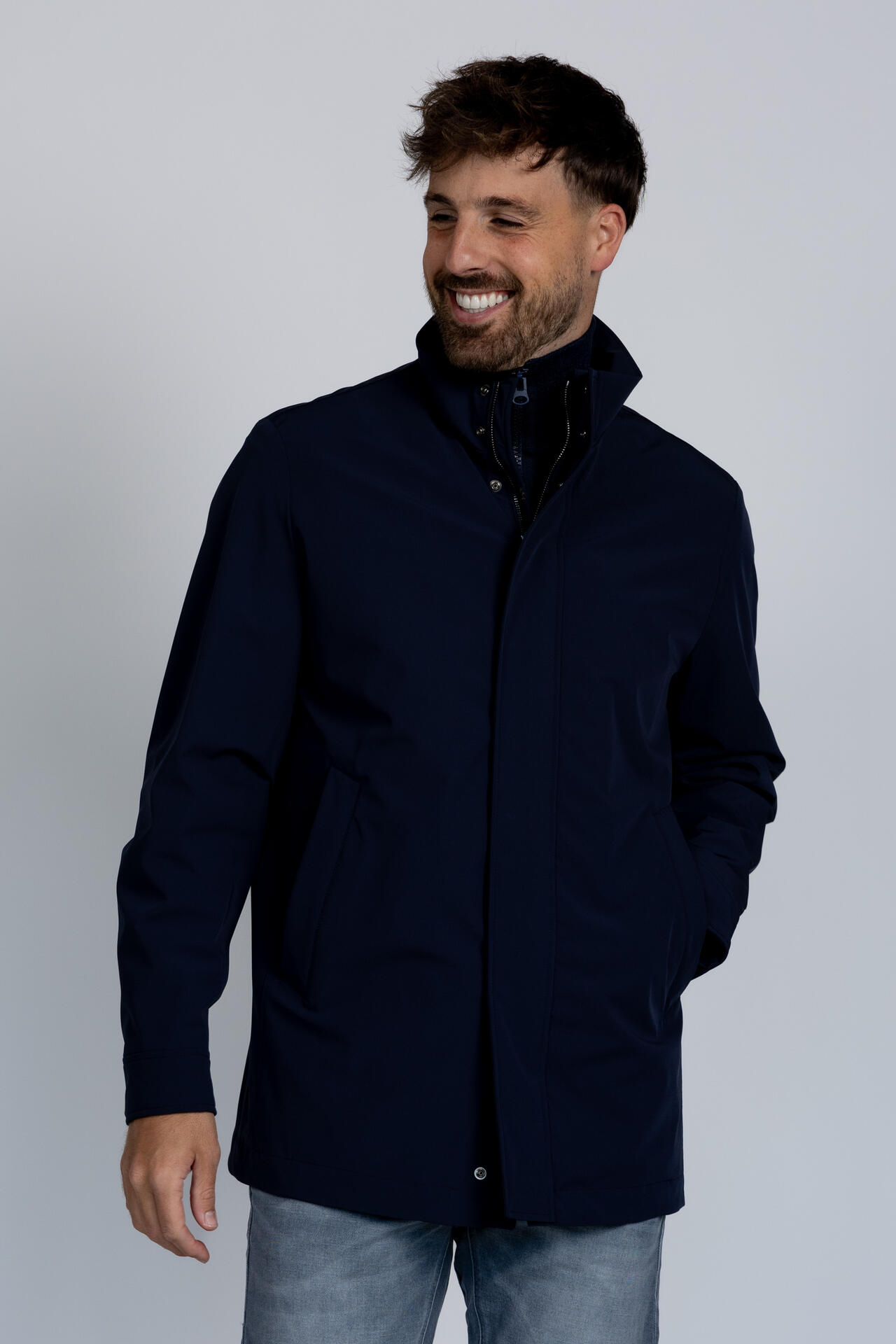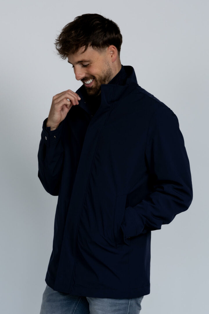 Halflang jack met een blinde ritssluiting, opstaande kraag en steekzakken aan de voorkant