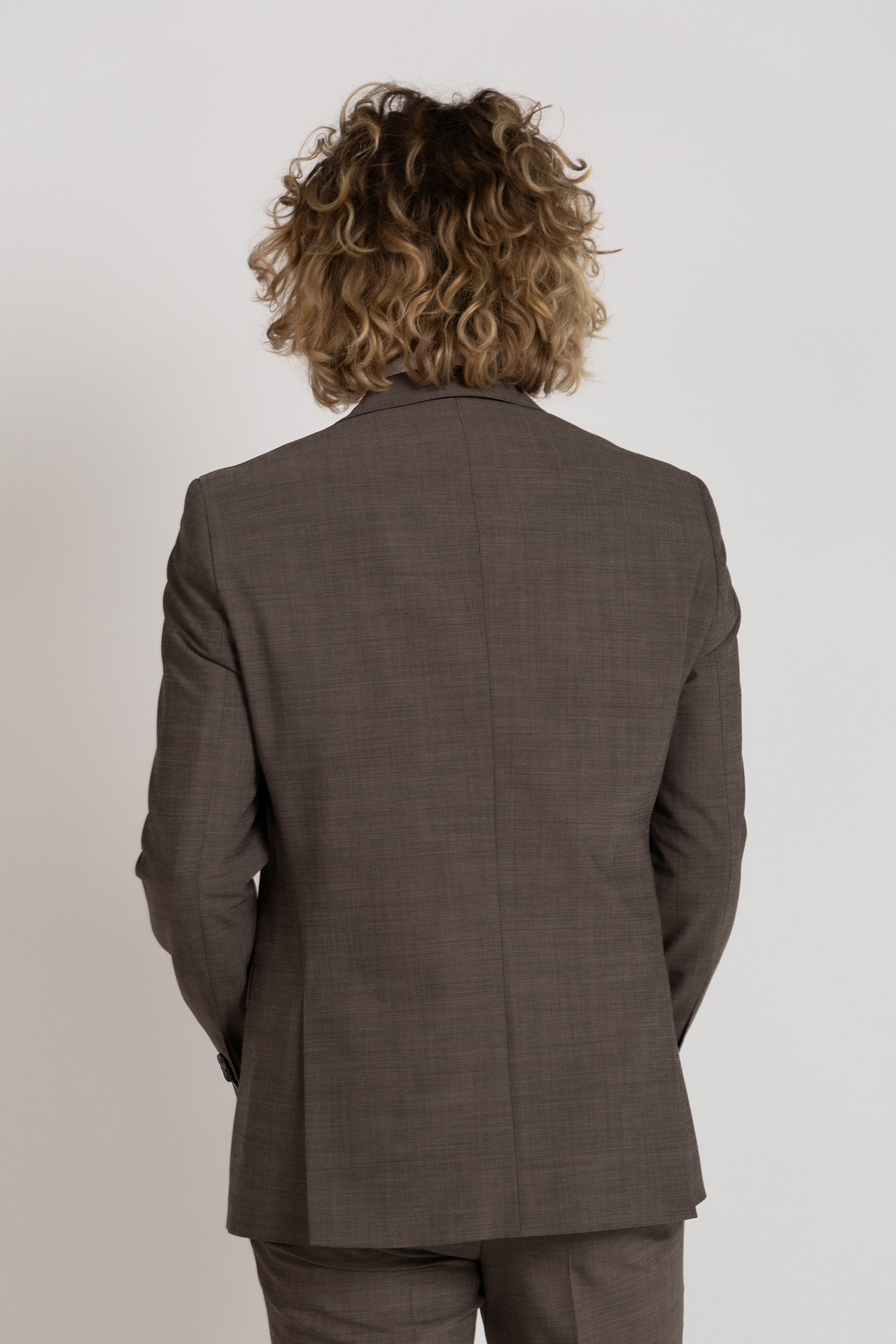 Getailleerd colbert met knopen, klepzakken en een borstzak aan de voorkant. Hij heeft splitten aan de achterkant en er zit stretch in waardoor hij comfortabel draagt