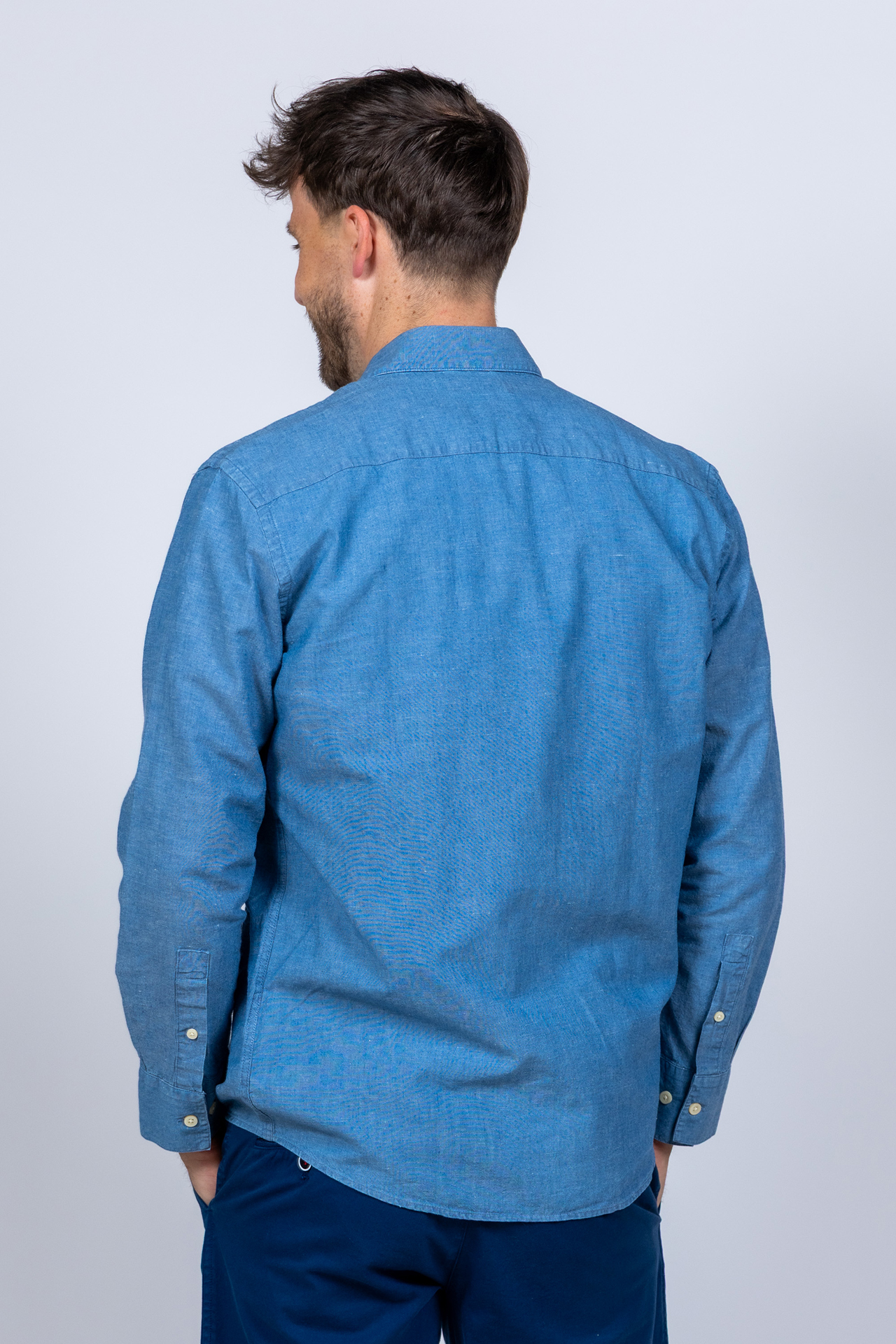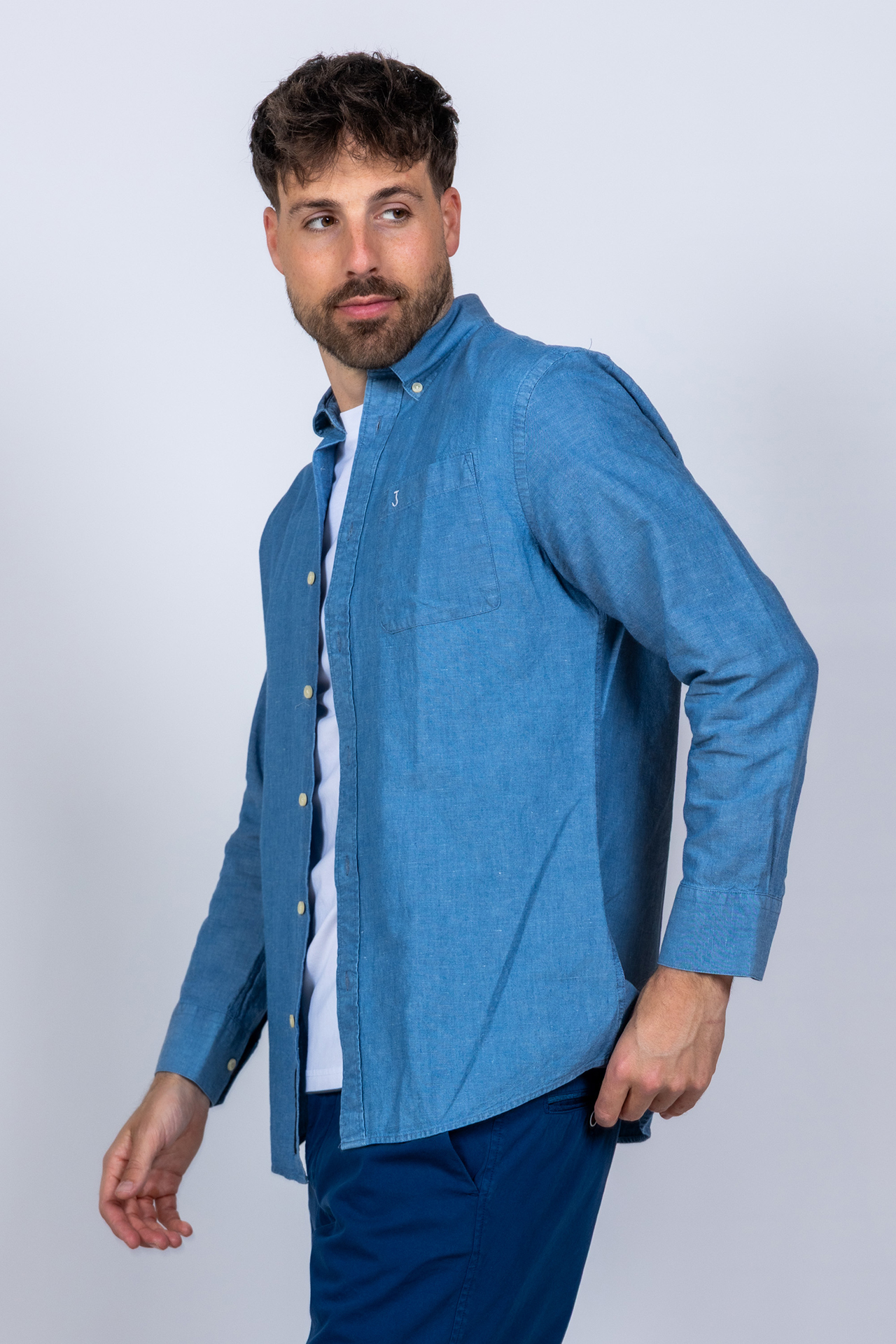 Katoen- en linnenmix button-down shirt met een opgestikte borstzak met het logo en hij heeft lichte knoopjes
