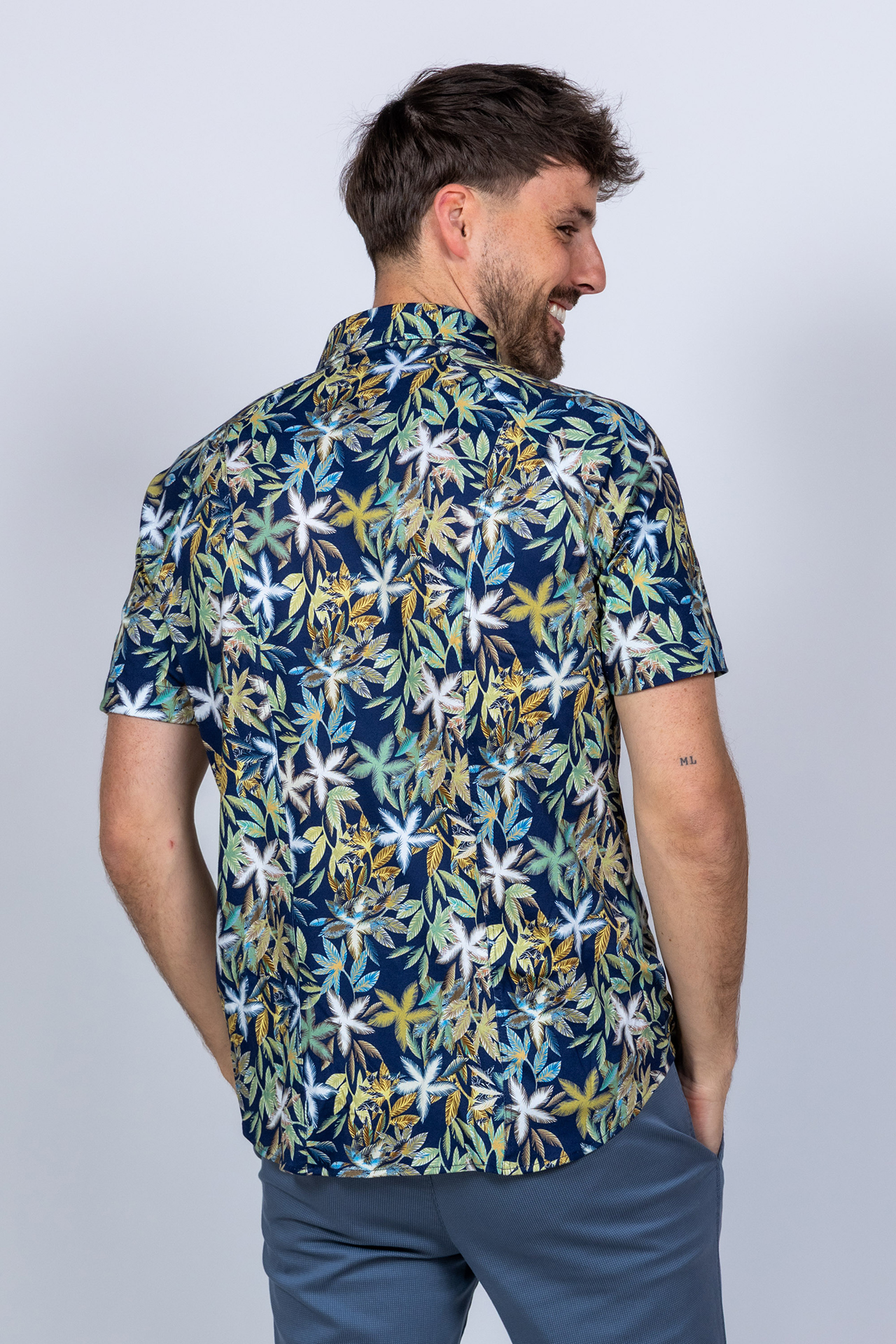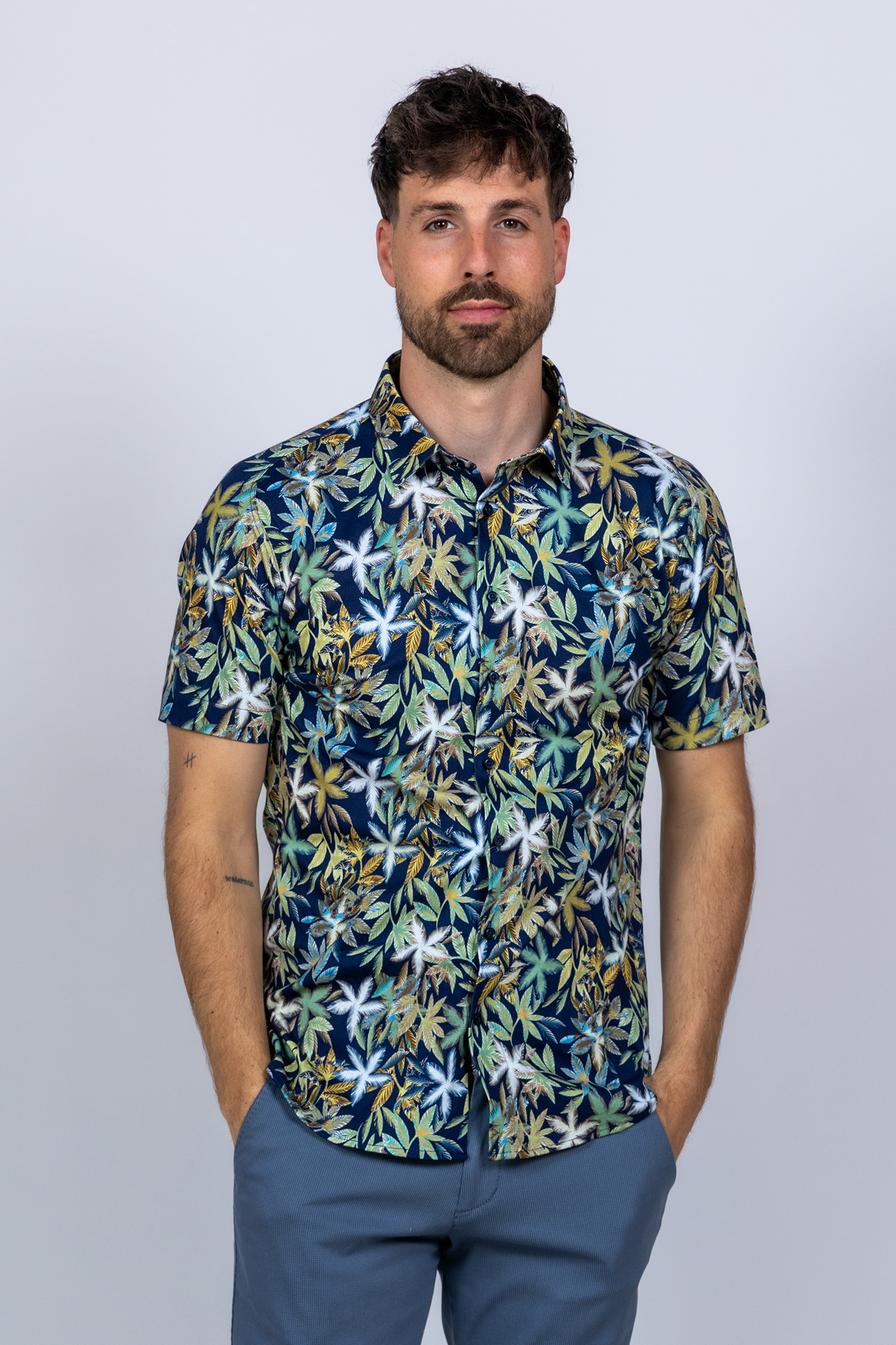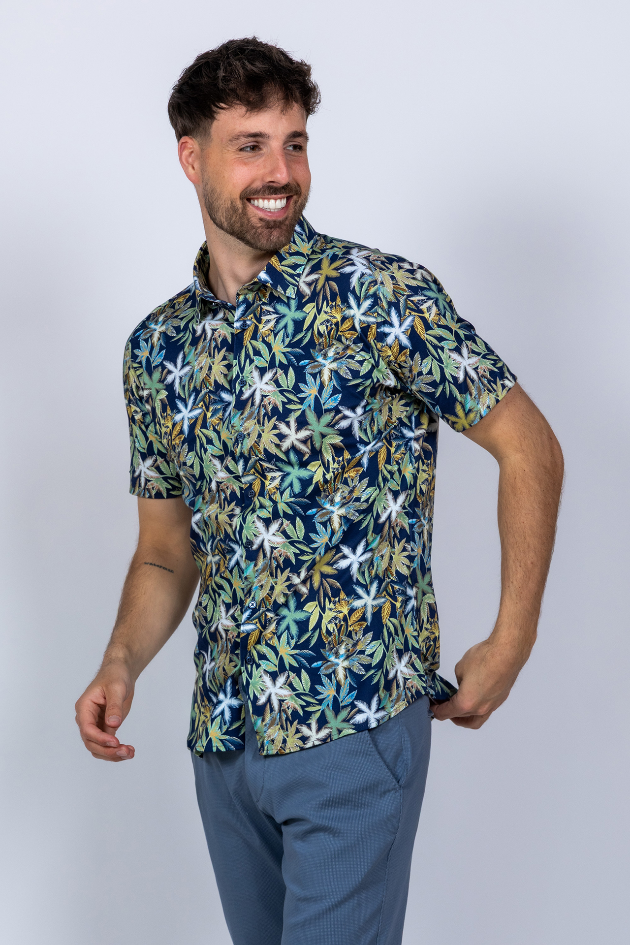 Katoenen overhemd met korte mouwen en een all-over bloemdessin in frisse kleuren