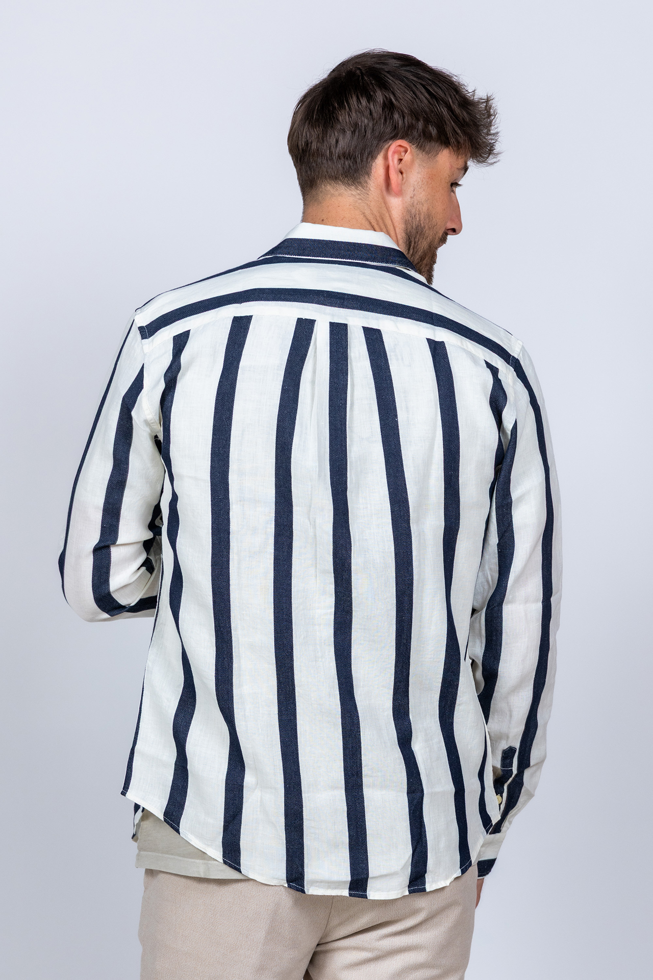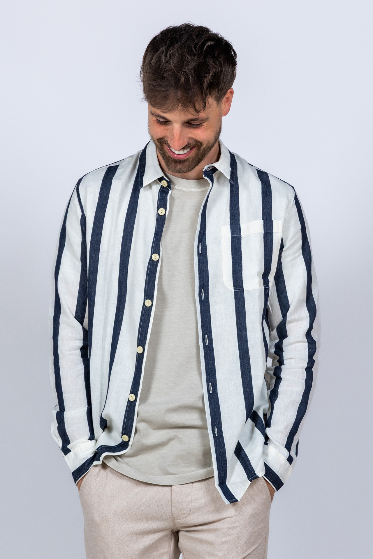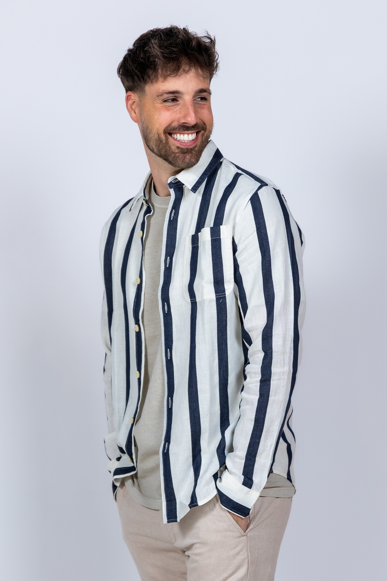Katoen- en linnenmix overhemd met lange mouwen, een verticaal streepdessin en een opgestikte borstzak