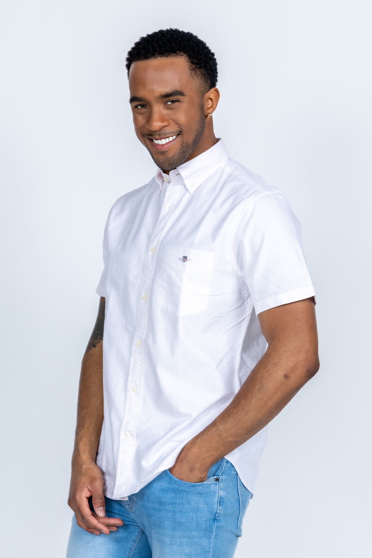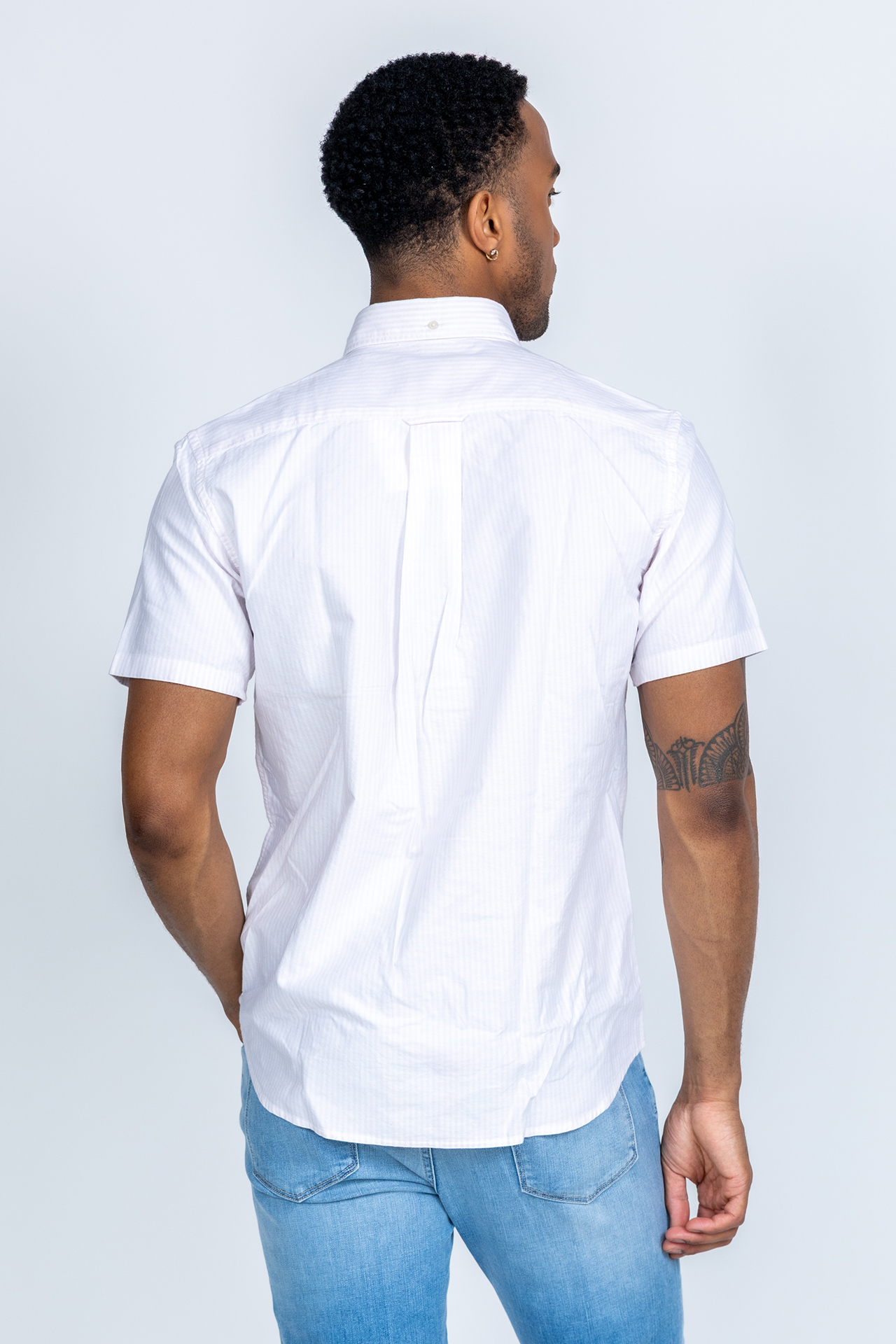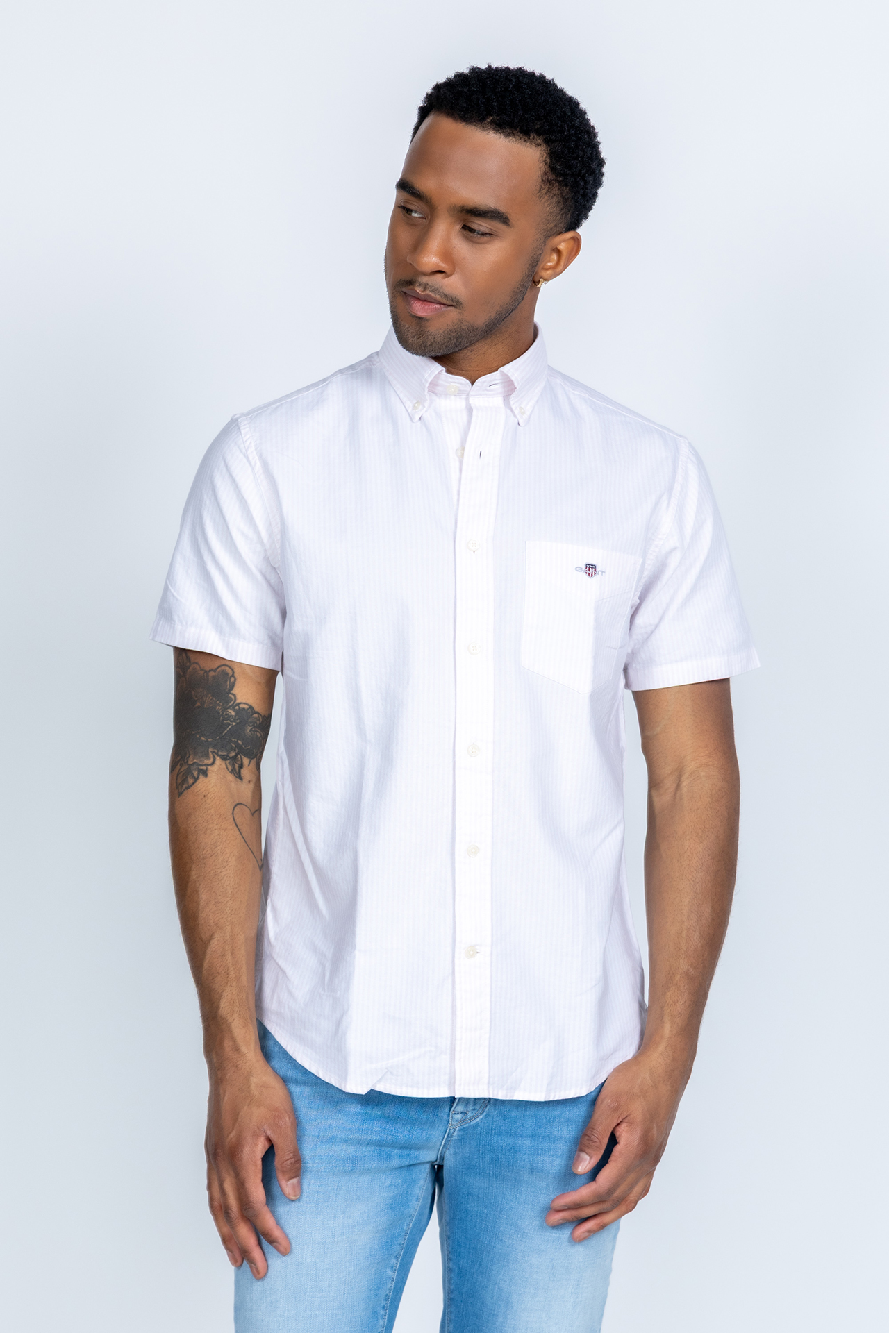 Gestreept katoenen button-down overhemd met korte mouwen en een borstzak met het logo erop