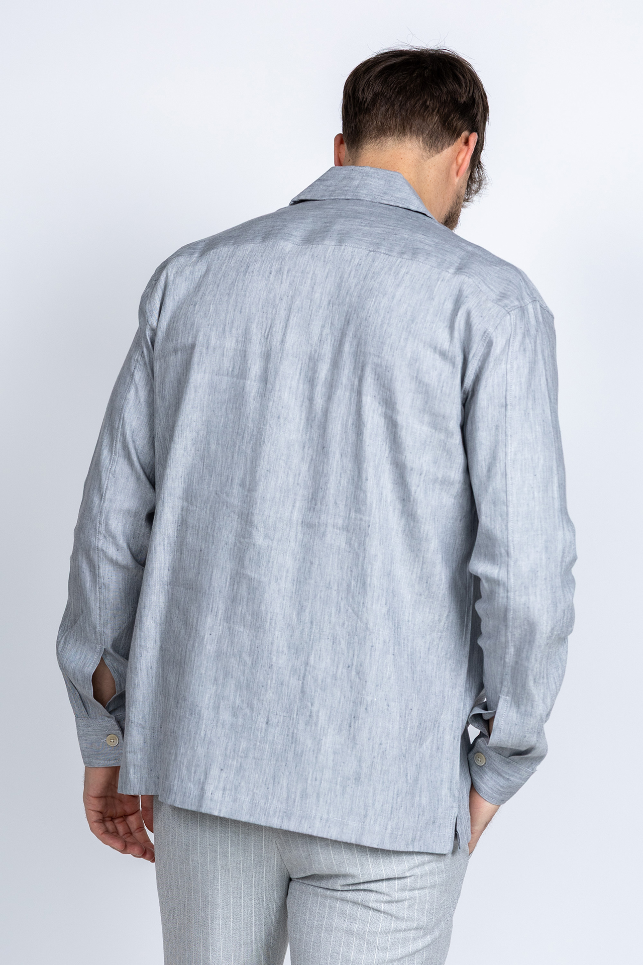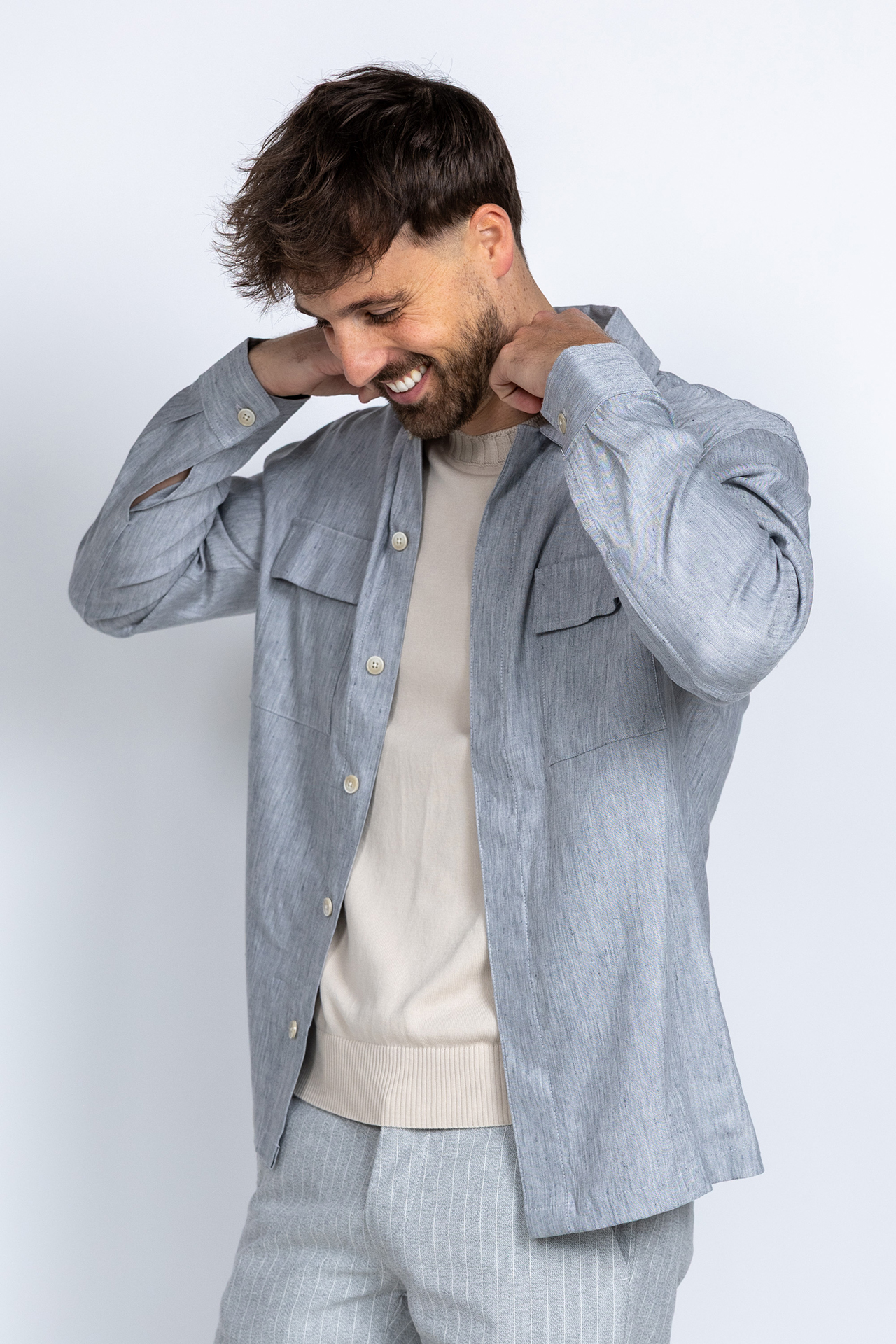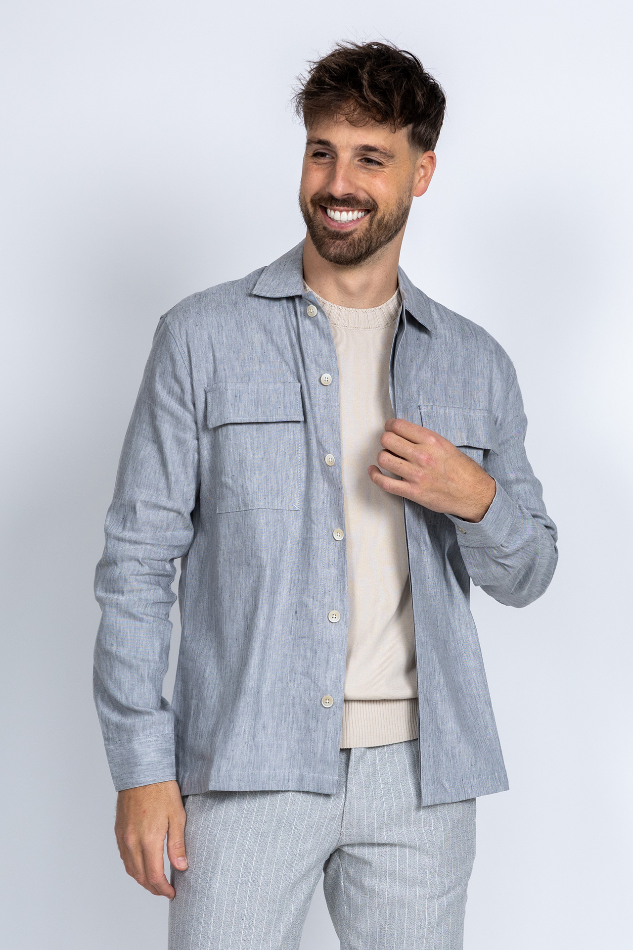 Linnen- en viscosemix shirt met klepzakken op de borst en stretch in de stof waardoor hij heerlijk draagt