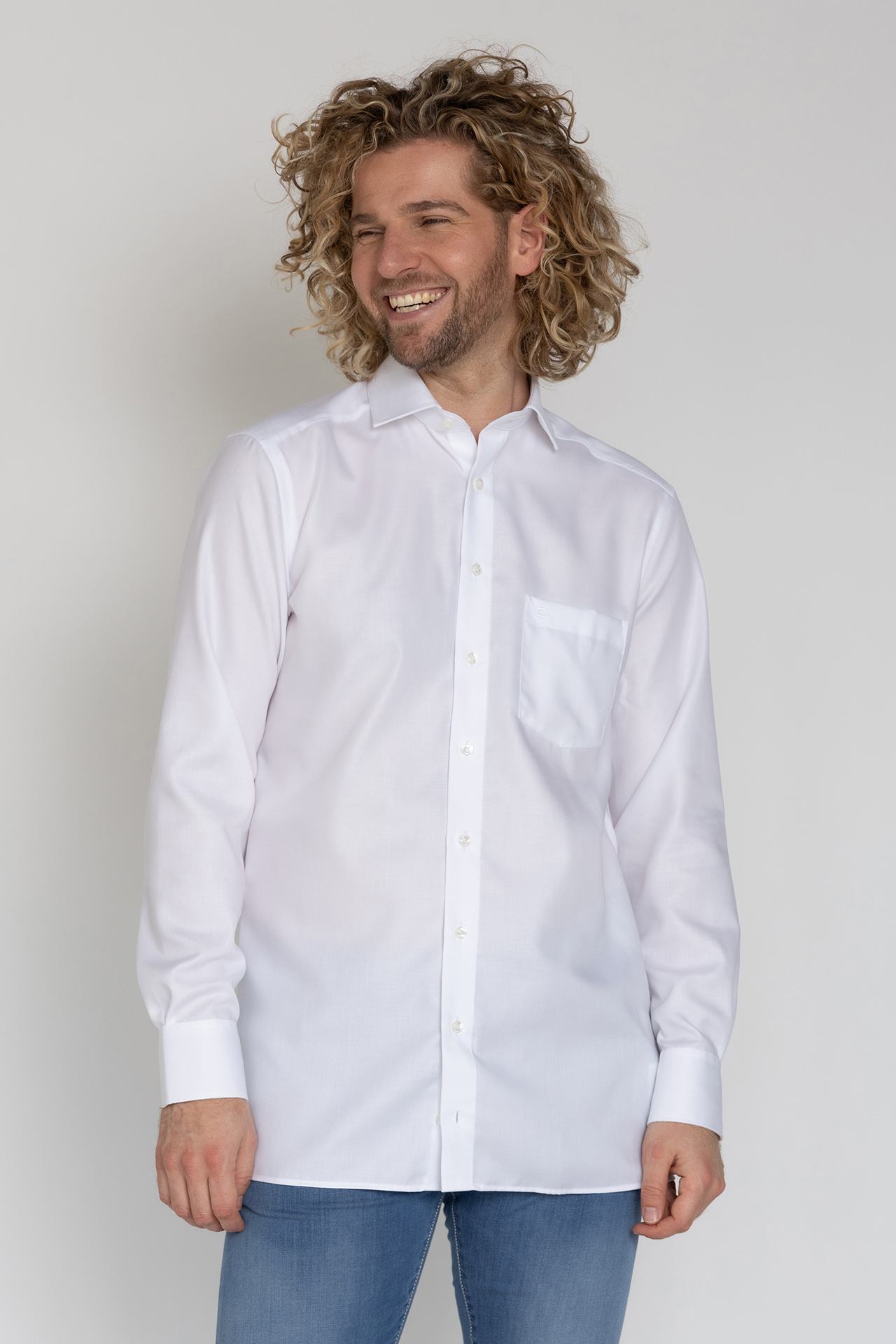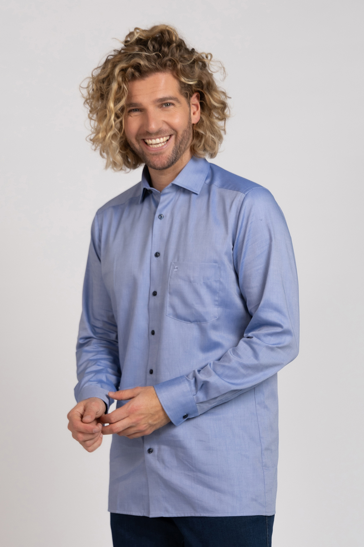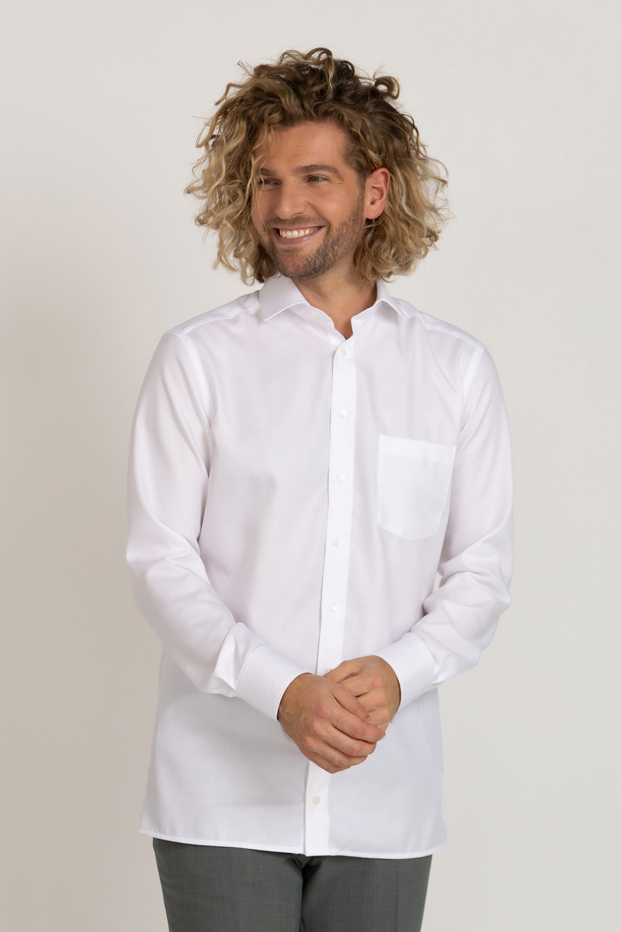 Modern fit katoenen overhemd met lange mouwen en een borstzak