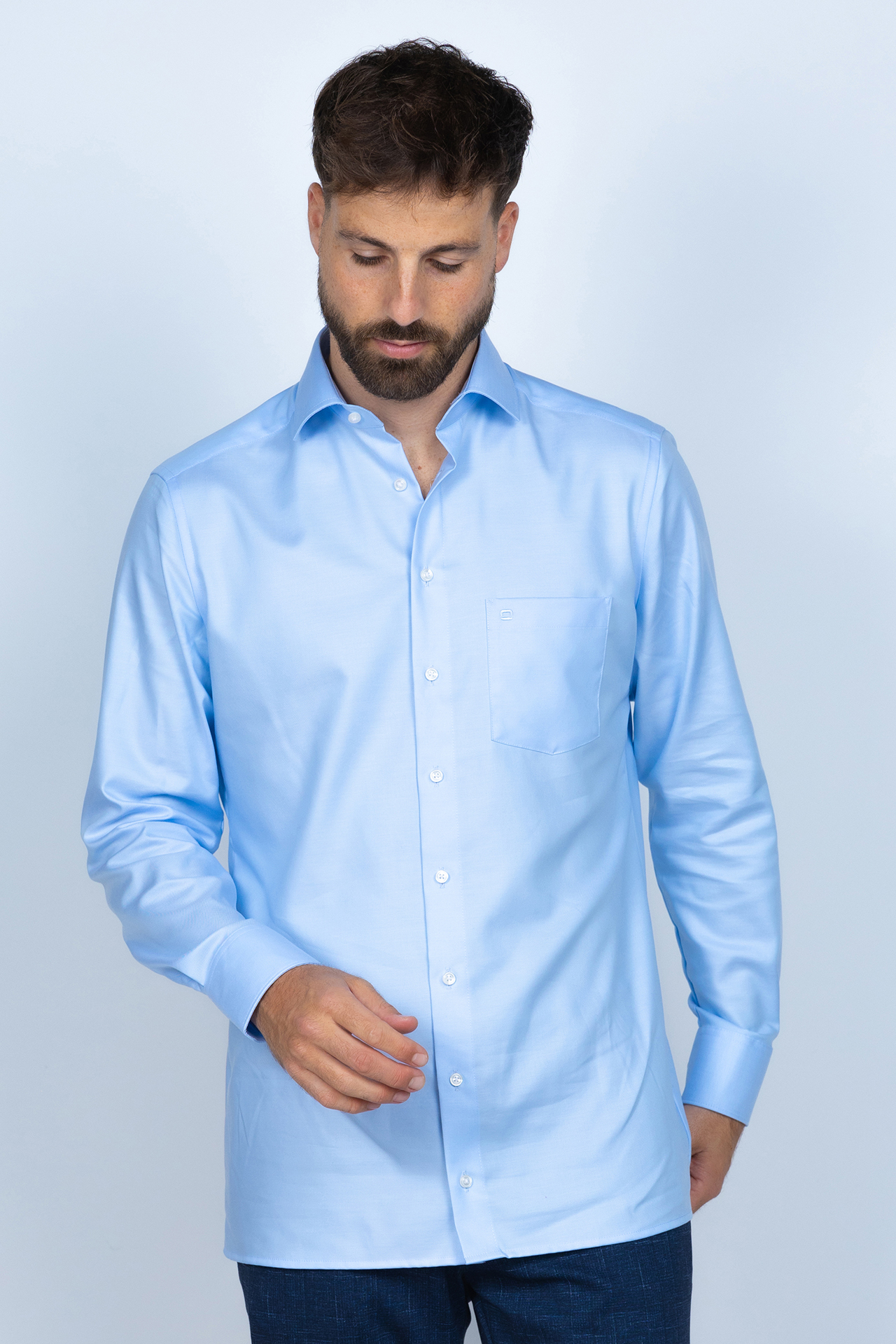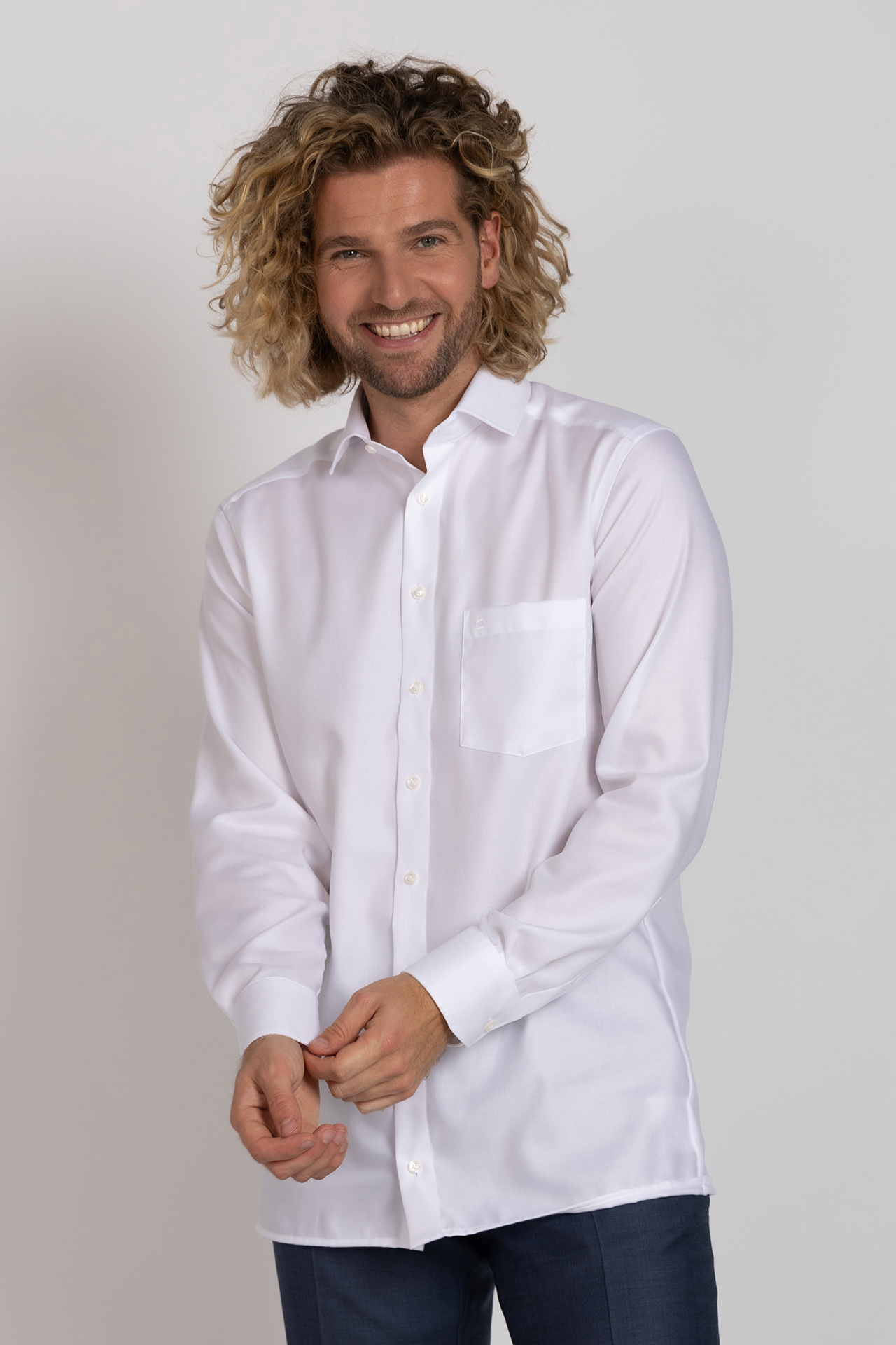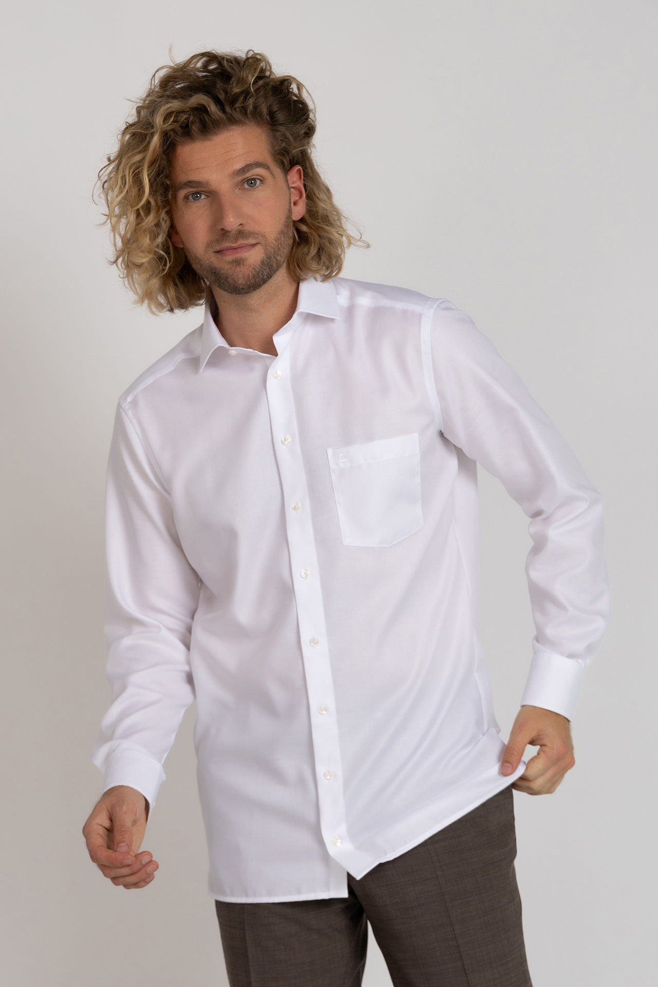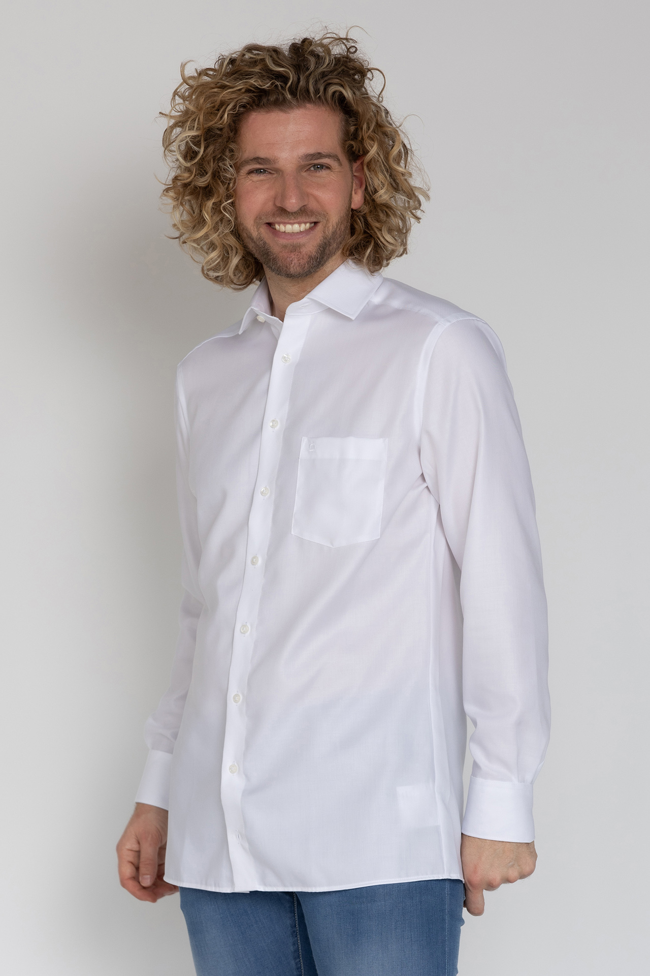 Modern fit katoenen overhemd met lange mouwen en een borstzak