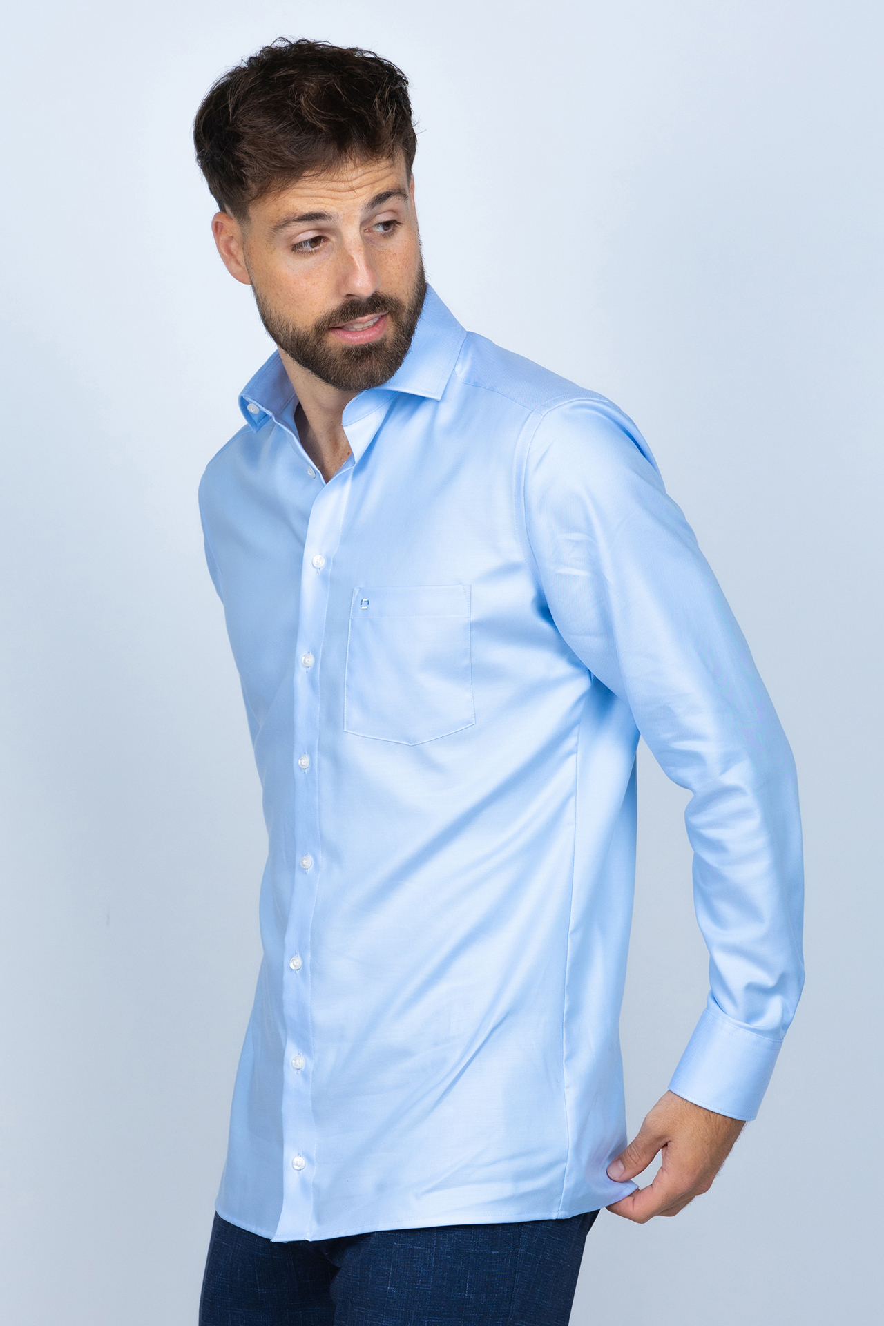 Katoenen overhemd met lange mouwen, een borstzak en een modern fit