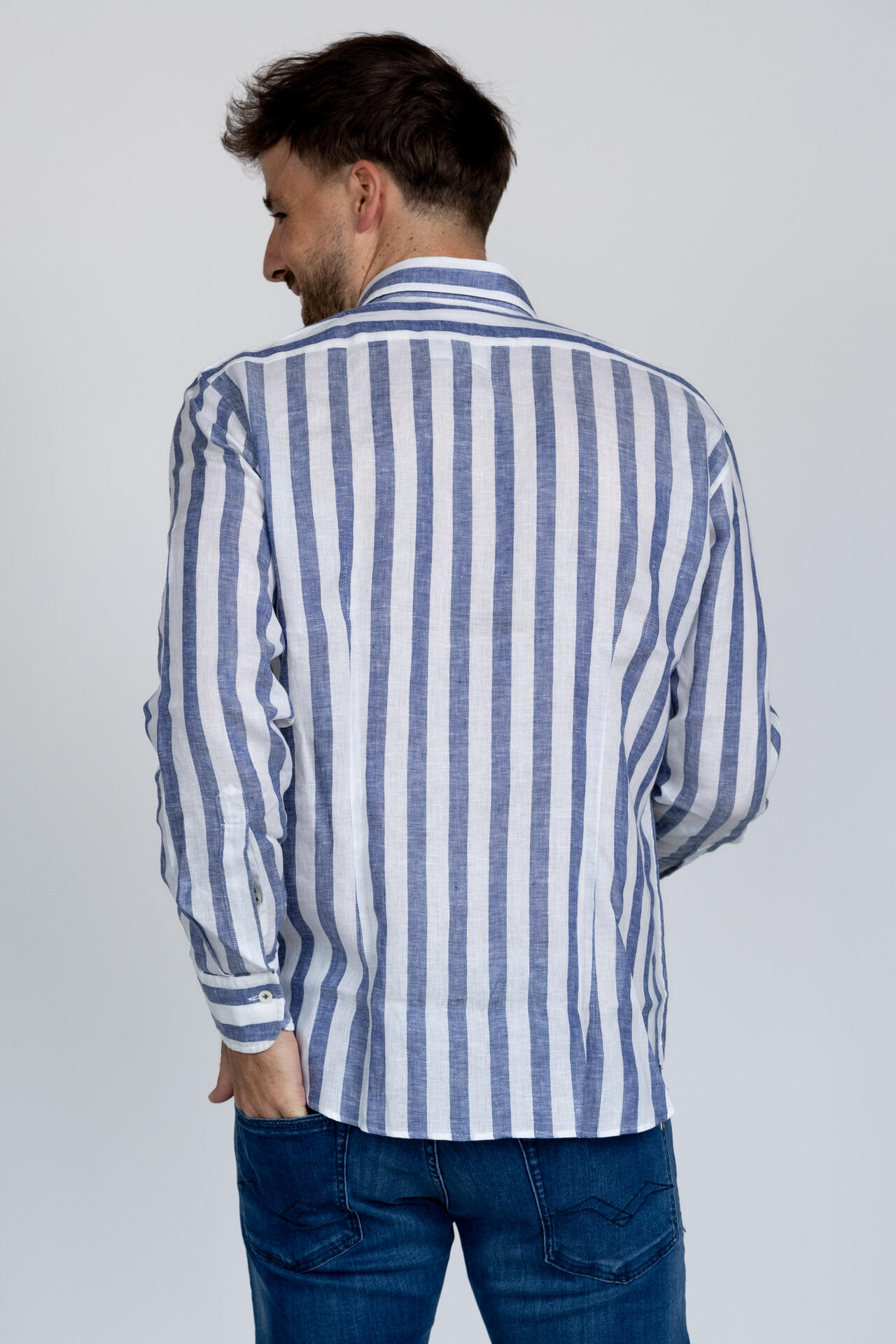 Linnen shirt met lange mouwen en verticale strepen