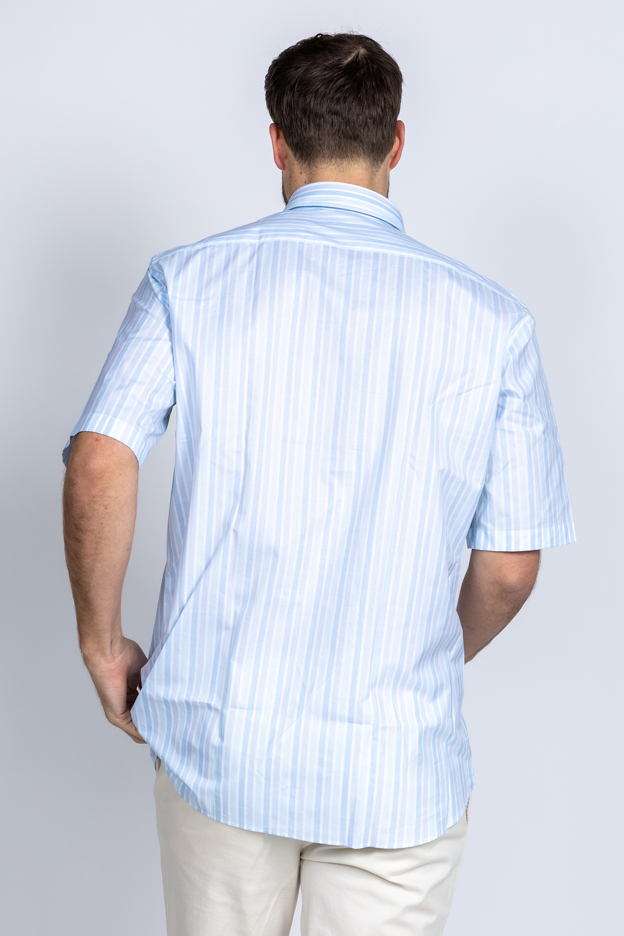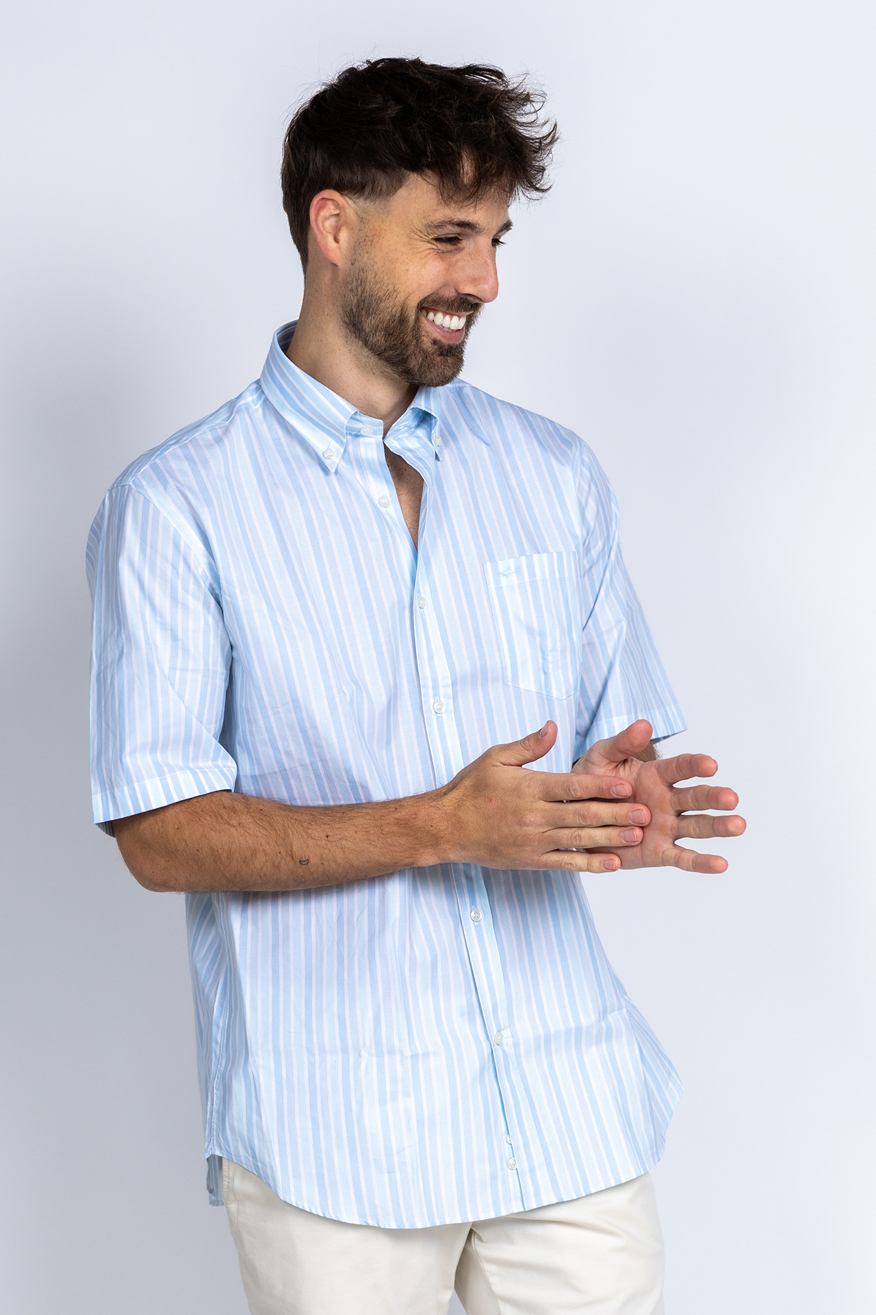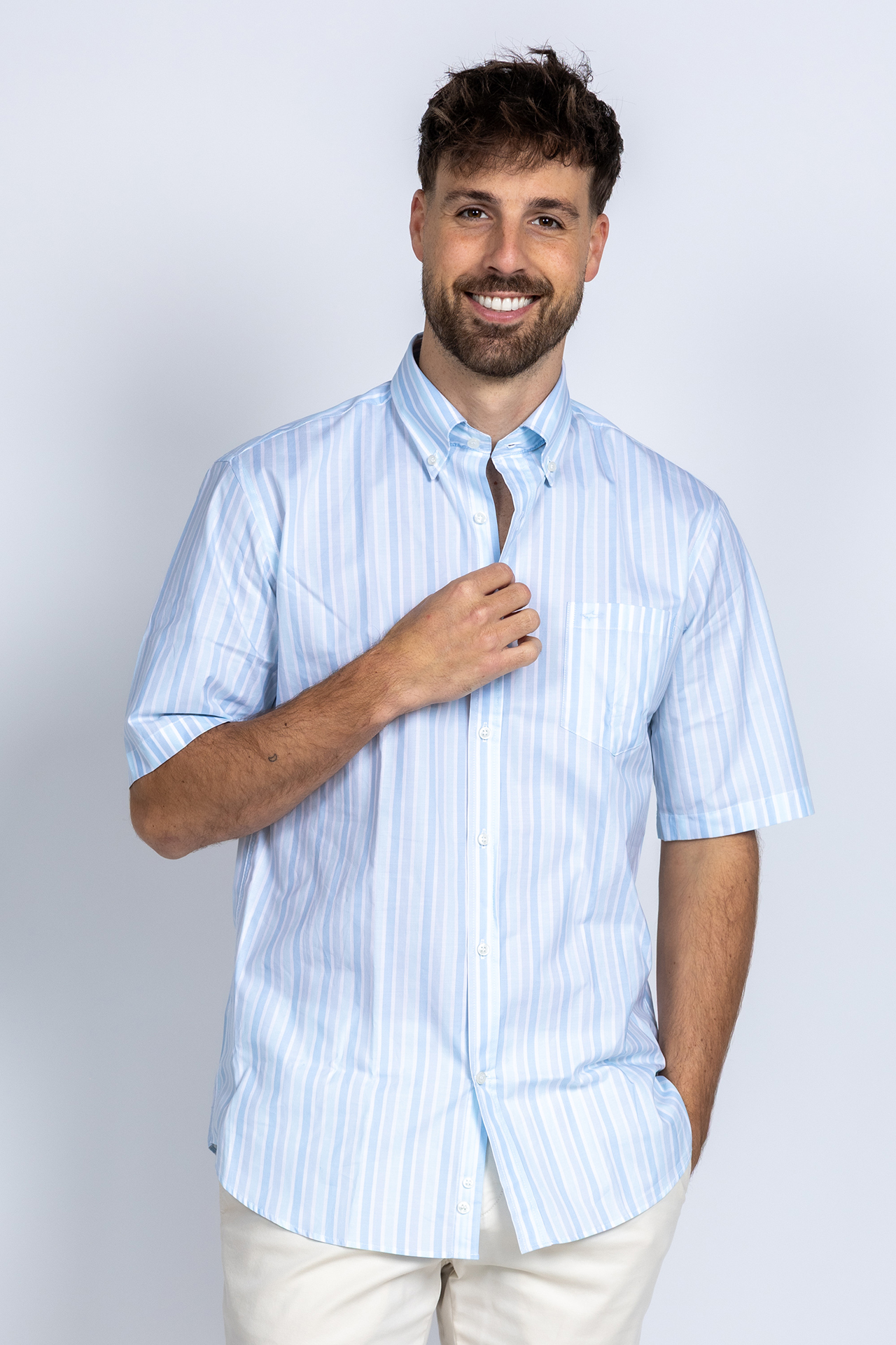 Katoen button-down overhemd met korte mouwen, een borstzak en een streepdessin in verschillende tinten blauw