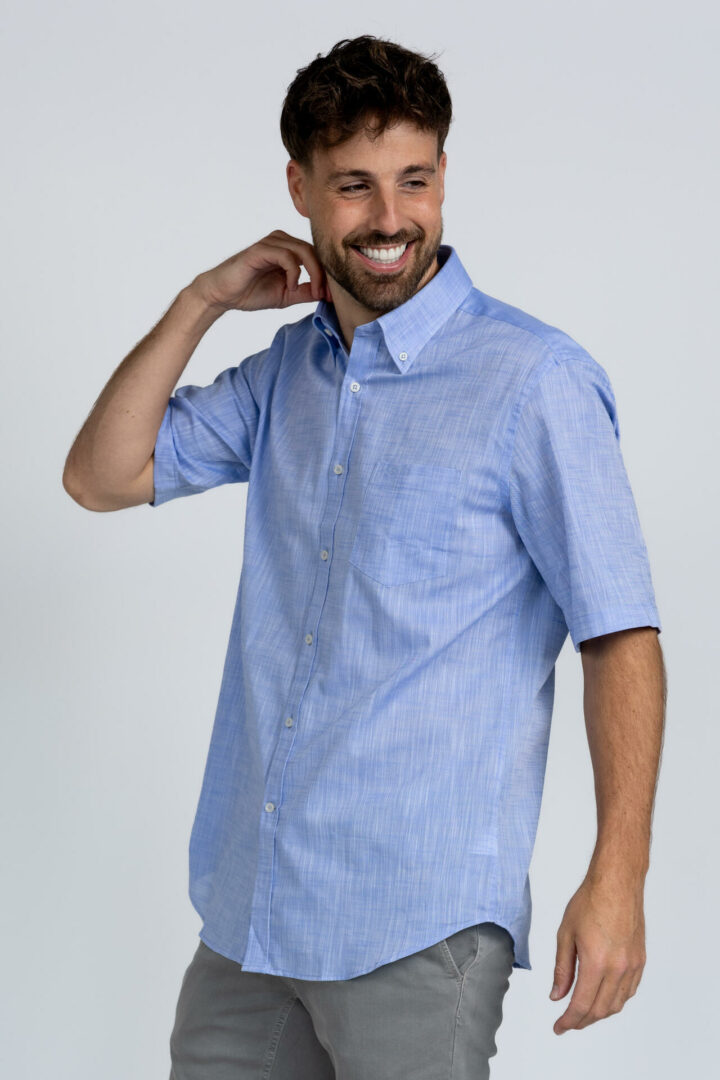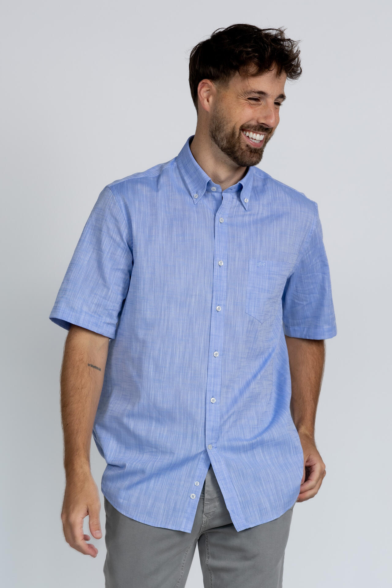 Katoenen button-down overhemd met korte mouwen en een borstzak