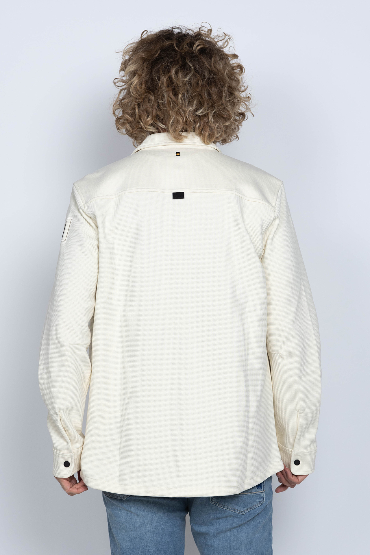 Katoenmix shirt met lange mouwen, wafelstructuur, drukknopen en een borstzak met drukknoop
