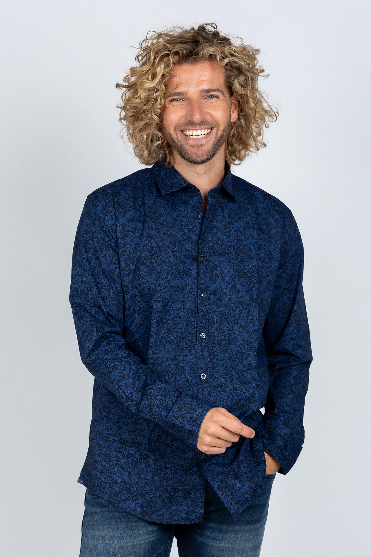 Shirt met lange mouwen, stretch en een druk dessin