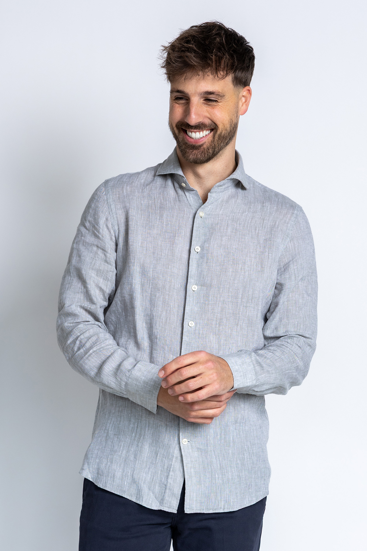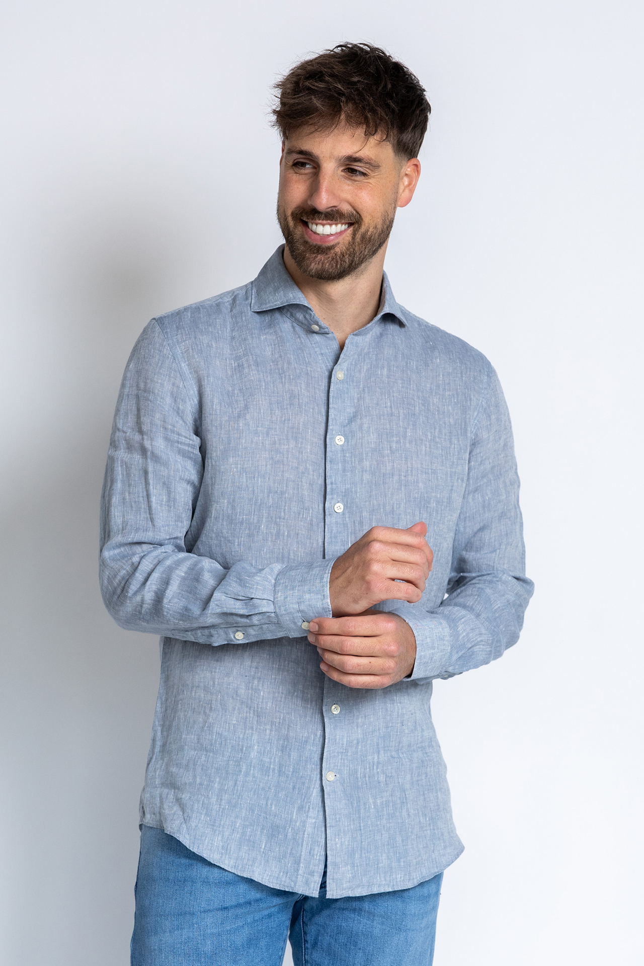 Linnen overhemd met lange mouwen en lichte knoopjes