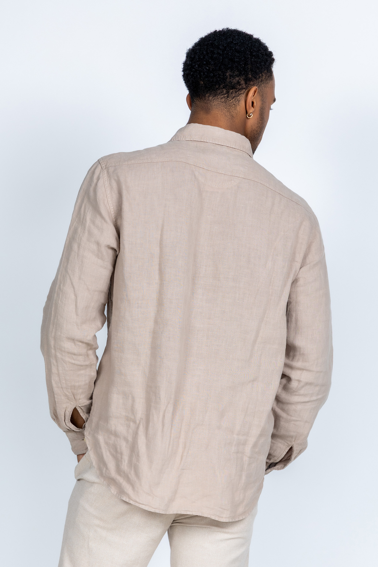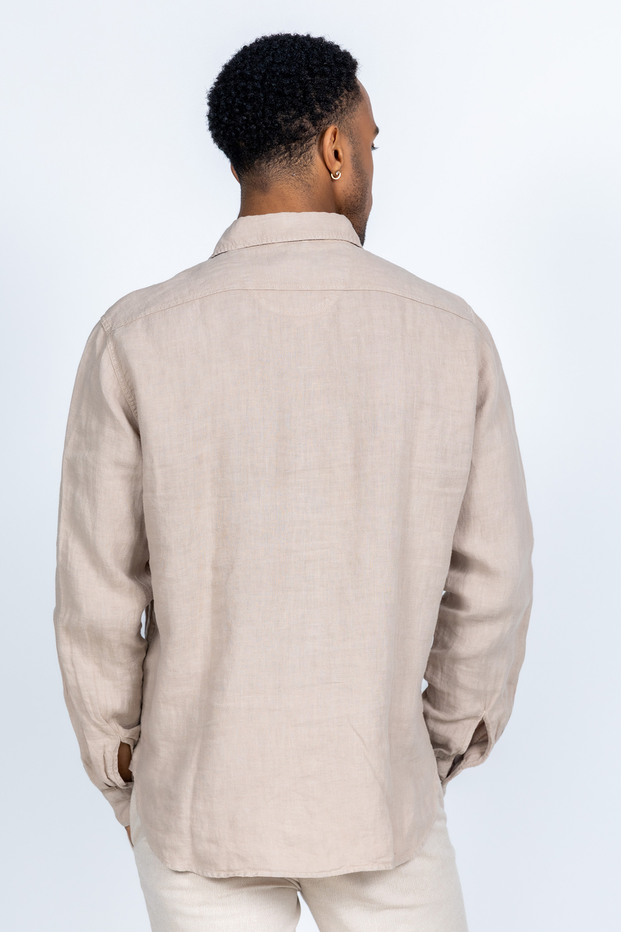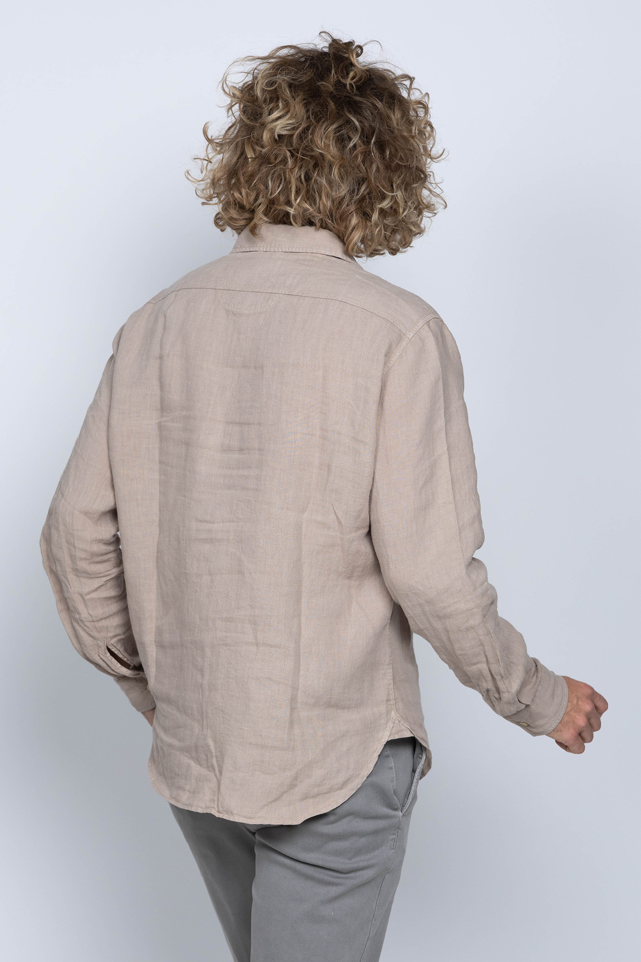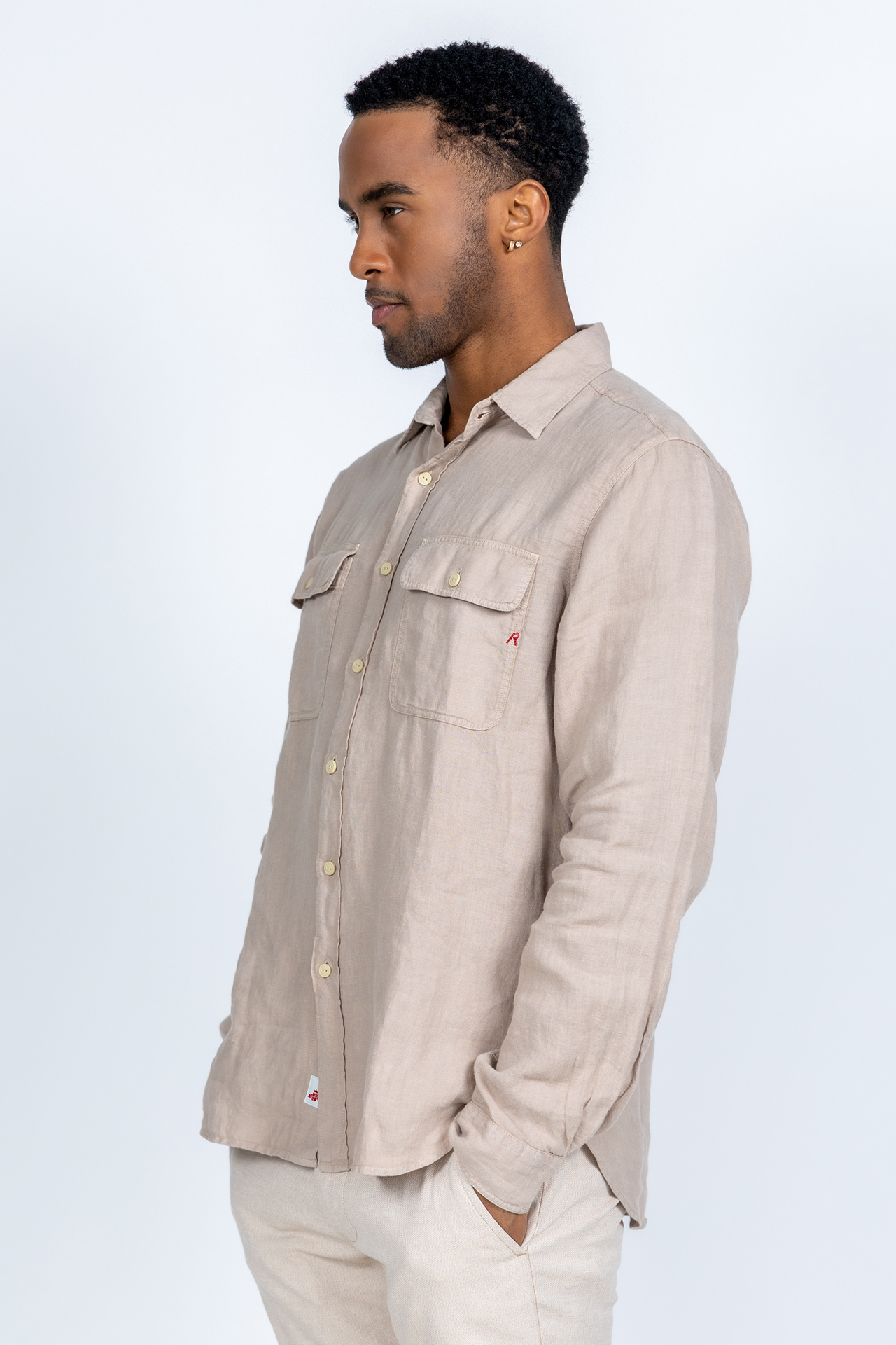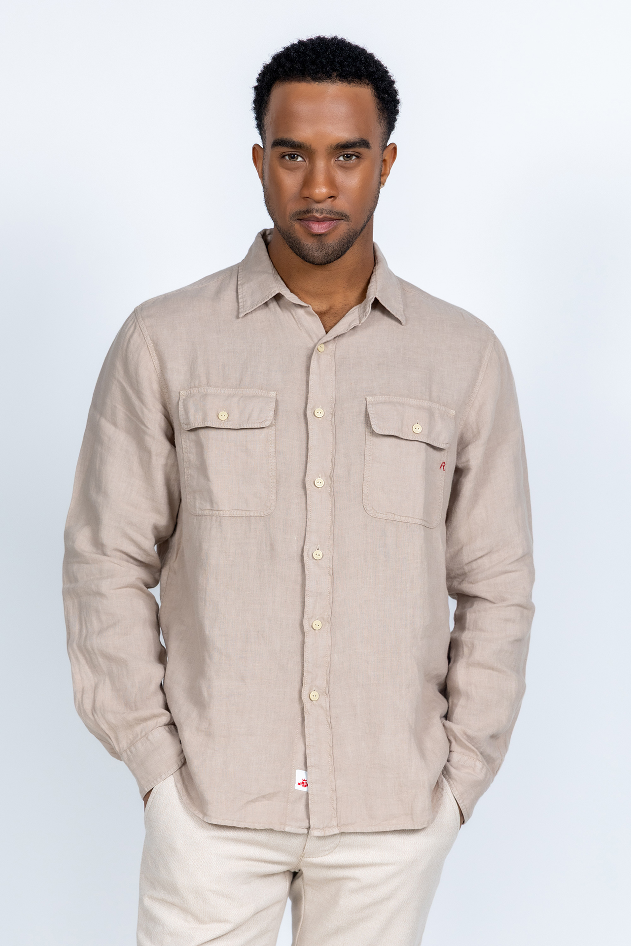 Linnen shirt met knopen, lange mouwen en klepzakken op de borst