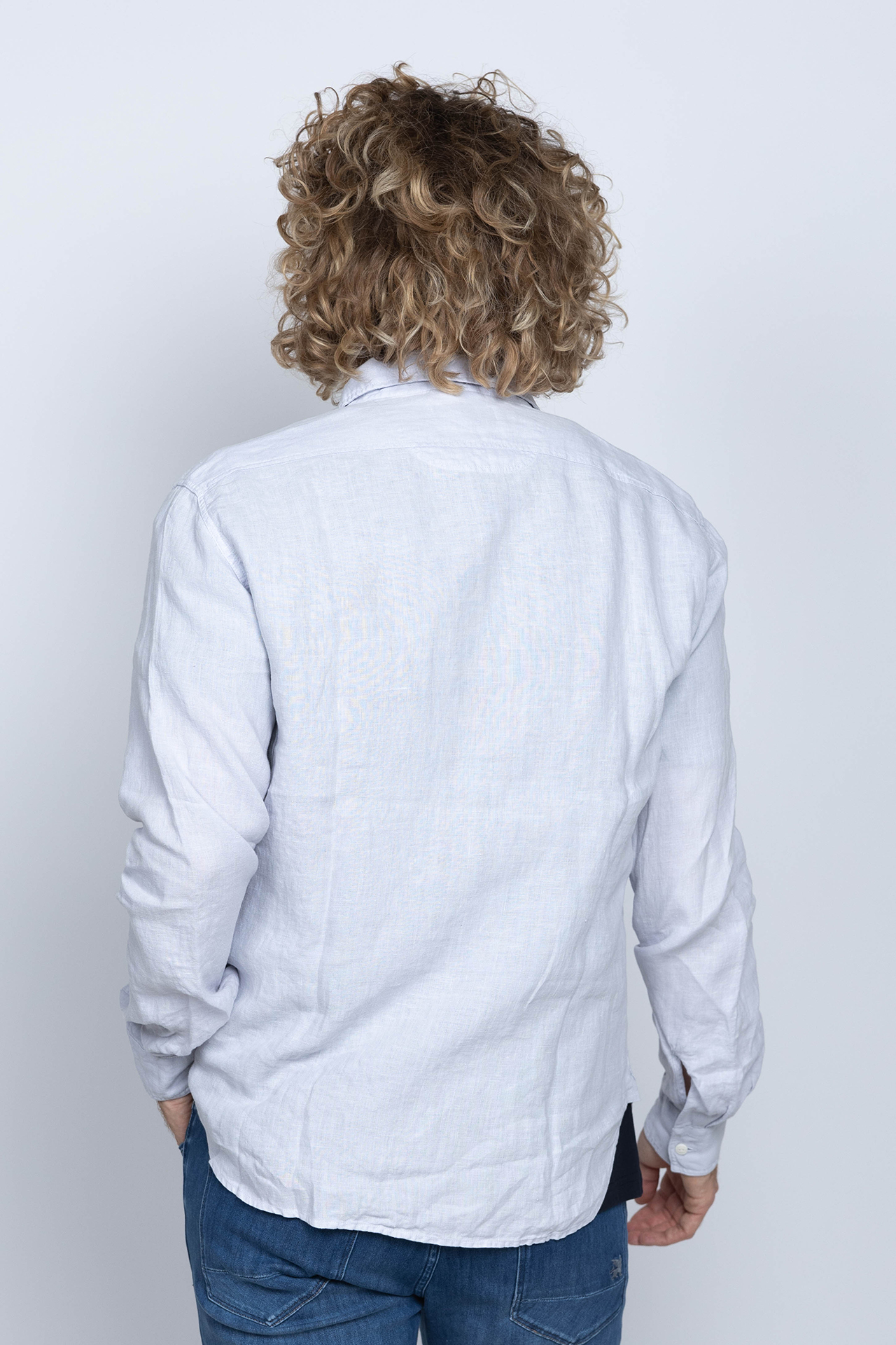 Linnen shirt met knopen, lange mouwen en klepzakken op de borst